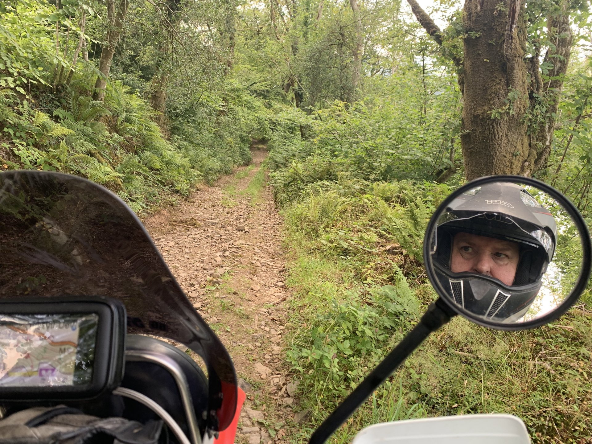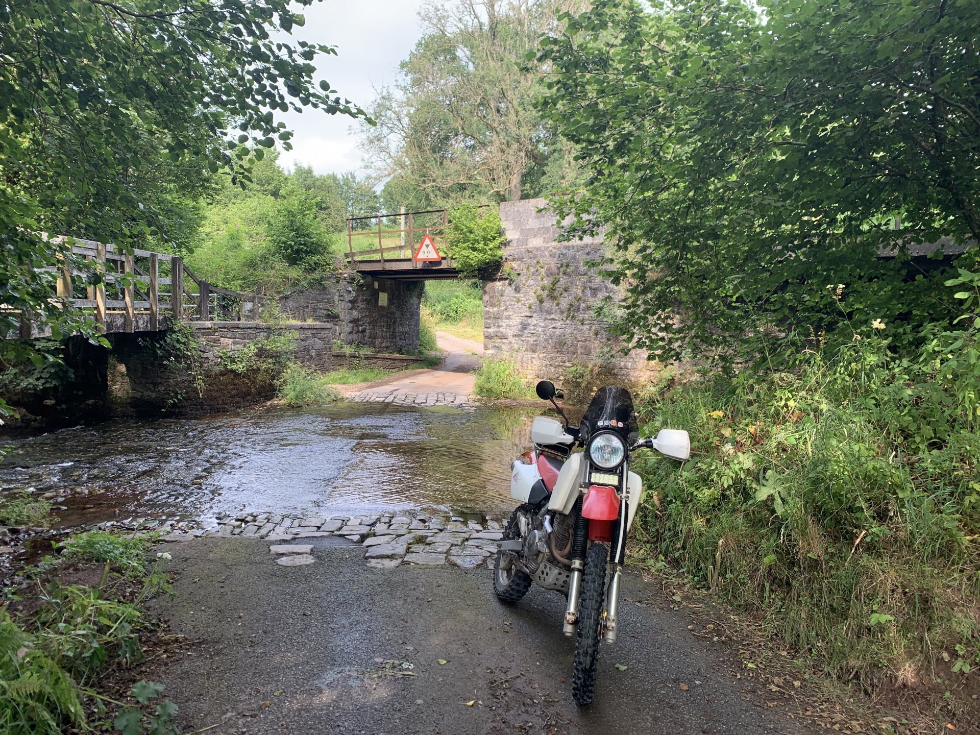 Yesterday i decided to have a back road ride and for a change have something to go to instead of following my nose. A picture of Paxtons Tower popped up on my news feed the other day, i liked the look of it and the area its in, so thought i'd have a ride there and back on the 650, it's just the other side of Ammanford. From Pontypridd i took the back roads to Blackmill, Neath and Pontardawe and then the mountain roads over to Ammanford bloody lovely up there. From Ammanford i went up to Llandybie and over to the tower. Had a mooch about the tower which had some great views with only a short walk to get to it. Crossed a nice little ford on route would like to see it after its been raining then i thought about the route home and would you believe it there were three lanes right by the tower it would be rude not to ride them LOL They were short and easy enough but overgrown in places which is to be expected this time of year Not the best photo of me LOL i rode another 3 lanes on route to the mountain road past Carreg Cennen Castle They were all nice and easy with no gates for a change Easy that was until i got to this lane I got as far as here and had to turn around, i found a guy doing this lane on a CRF250L when checking routes to add to the TET i'll see if i can dig it out Carreg Cennen Castle center left i took my camera for a change so i could use the zoom day was too murky for a good photo And another a bit closer, i was playing about with filters and this one made the detail stand out a bit better From here it over the black mountains and home on the main roads. It was an interesting ride but the bike started sounding a bit ticky on the way home hoping its just tappets so something else to look at