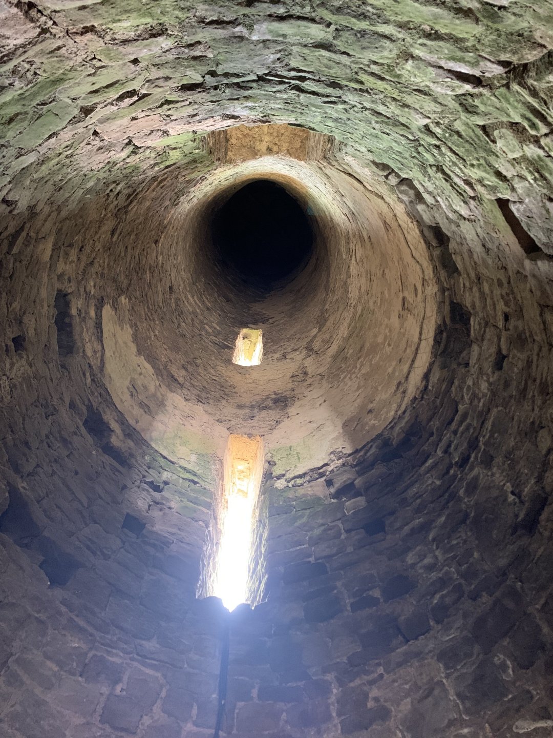 I like the way he has total faith in that there's a way out at the end and wont need to go back up it i cant think of any other reason he would keep going forward