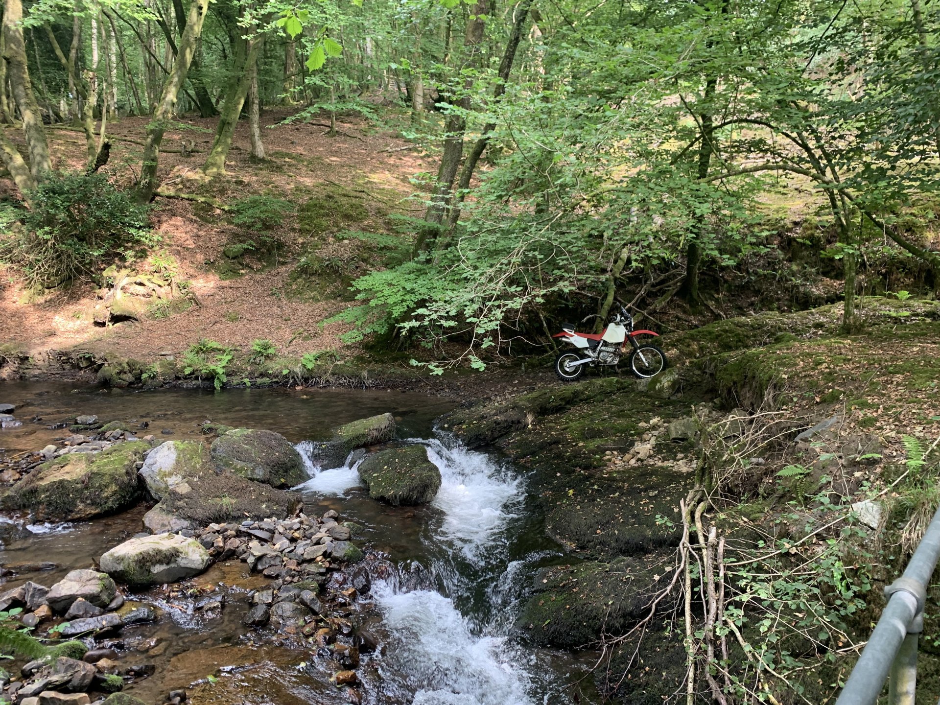 The river was a quite a bit shallower when i rode through i would have turned around without hesitation if it was anything like what it was when he done it, I bet his heart sank when he saw it after all the effort before he probably got off that last drop off and thought ahh plain sailing from here and then seen that LOL but going through it was easier than going back up what he came down that's for sure