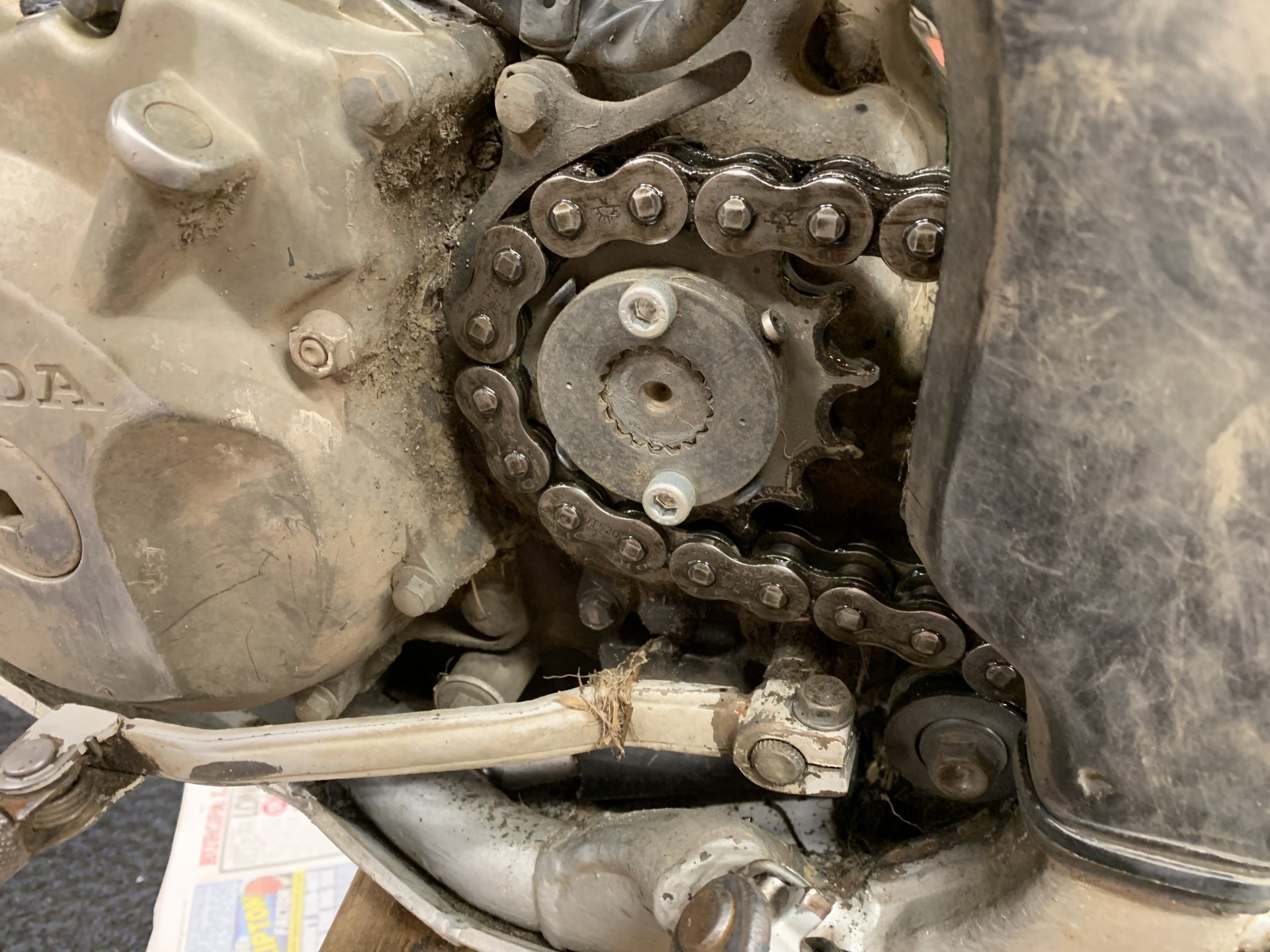 1. I've just nocked something up for the XR there's more wear on the shaft than i like so looked at making something to use all the shaft. I ended up annealing the old sprocket cutting the teeth off and then turning it down to the same diameter as the sprocket retainer. Then i drilled and tapped the sides so a grub screw would tighten down into the groove the sprocket retainer normally sits in. The JT sprockets got a shoulder on them that normally faces out i turned it around so it faces in so you have to push it onto the unused part of the shaft to get it to line up with the chain and with the modified sprocket re hardened and bolted to it it ends up covering all the shaft. I did use a chemical metal as i pushed the sprocket on to build up the worn part of the shaft so it's not just the new part of the shaft taking the strain. I've put about 500 miles on it now and everything seems good. the four screws around the sprocket are just there to cap off the grub screws and to keep the crap out