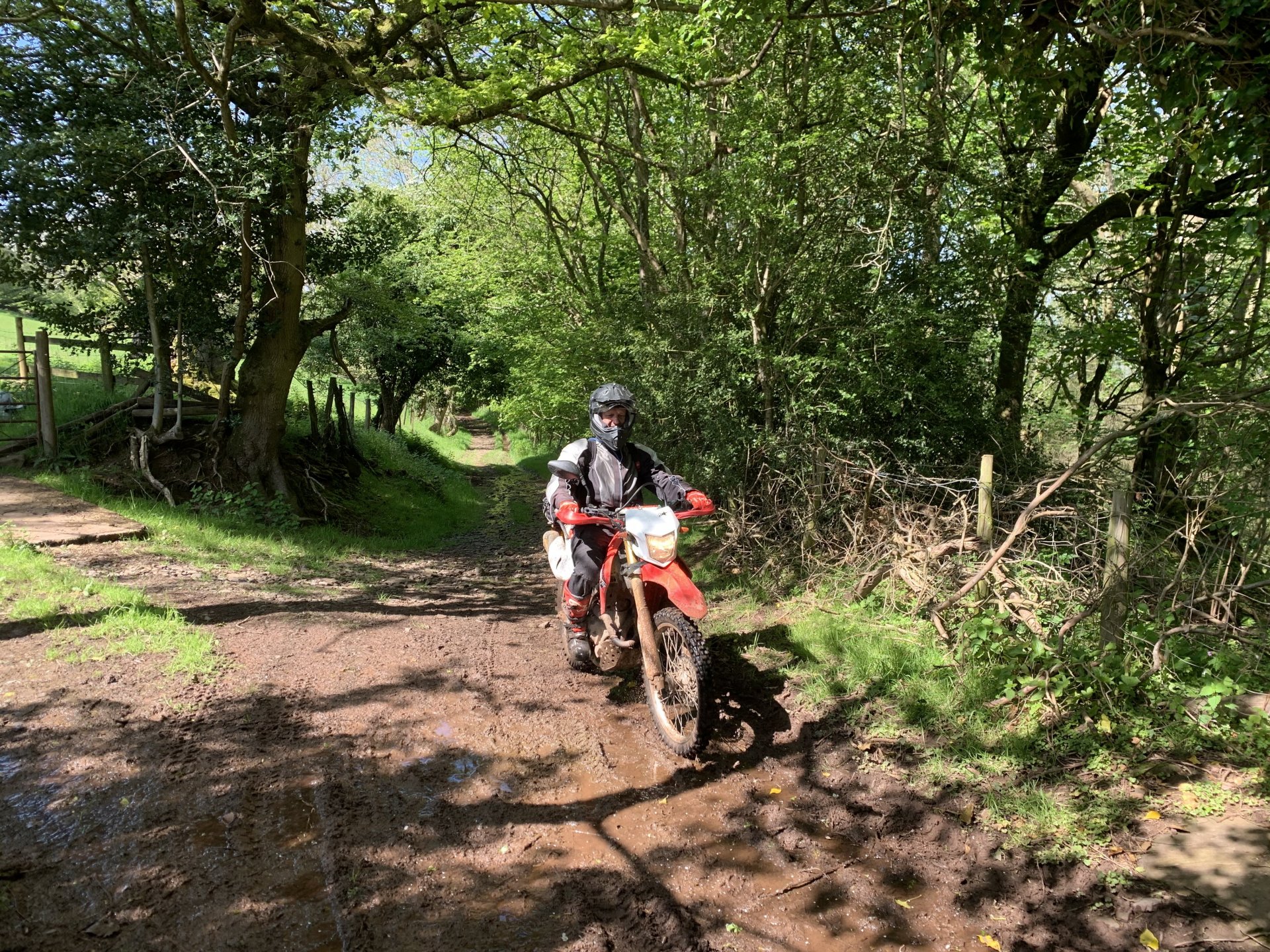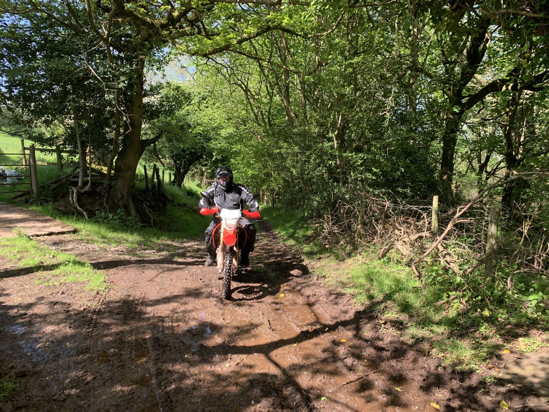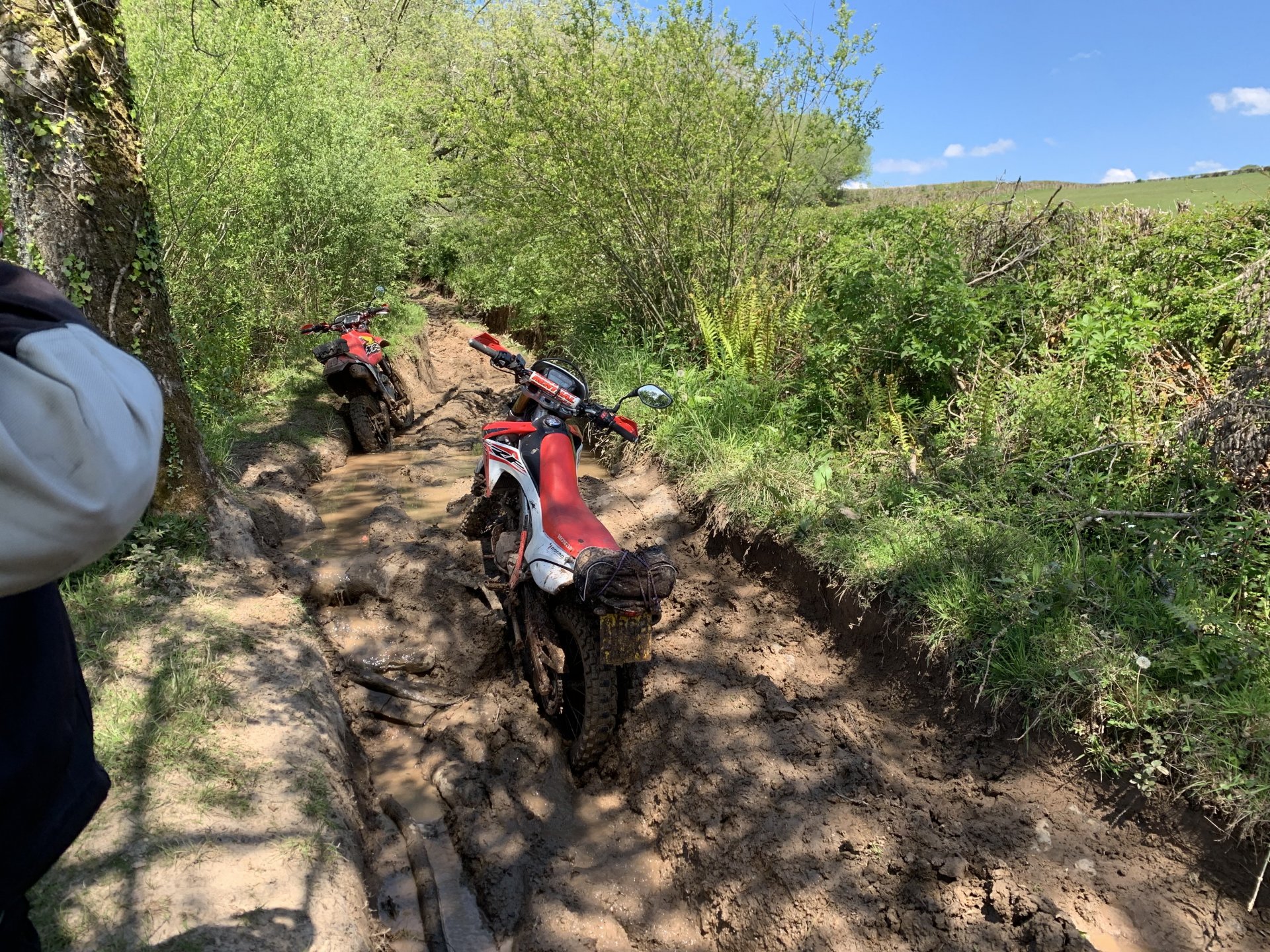 11. So i haven't got the energy to put any real content into this so here goes. While out on the dog yesterday i bumped into a couple of lads on CRF250L's and gets talking, the one is Steveoneleg my new best pal (sorry Bob ) and his buddy Jason twelve bellies. The pair of them are new to trail riding this year and members of the TRF (trail riders federation) same as me. After chatting for a while i mention i'm out for the day today and they ask if they could join me so a meeting place is arranged for the next day. I turns up about 9 has a chat explaining how i ride and i'm out for the day which is a like it or lump it sort of thing, and off we goes. Ride starts off with lots of scenic back roads and a few unpaved roads to warm things up heading to a place called Glasbury for breakfast which Steve takes full advantage of . On the route there i see just how green Jason twelve bellies is. He is finding everything hard work and says hes enjoying the experience but is asking lots of questions about the route home and complaining about a pounding head ache, he also said he hasn't felt 100% since his second covid jab two days ago . No photos up till now the first couple of lanes after the breakfast stop are a lot tougher than i though as the ground is still soaking even though we've had good weather for 2 or 3 days. Jason Steve This is a relatively easy lane but the wet and the ruts make it 100% worse this really took it out of poor Jason. Stopped for a breather A vid to see how slippery it was Next lane wasn't too bad but Jason decided to call it a day and head home leaving just me and Steve Which wasn't a bad idea as i think the next lane we would have been brushing the mud over Jason and leaving him there Steve doing a great job keeping things upright here It was hard going Next we were onto the easier stuff which now i think about it maybe i should have taken Jason straight to this stuff and skipped the earlier lanes, ahh well whatever More of the easy stuff, you tend to appreciate this more after slugging it out in the shit for a few hours LOL Stopped by this pond for a snack and a chat couldn't think of a nicer place the day was glorious Back on the track and a little further on in this photo i had to deal with an aggressive local bloke on a pushbike who stopped me to argue with me about riding there, saying i shouldn't be there. In my best i'm not going to punch the fuck out of you tone i explained he was wrong and educated him on the use of OS maps and what things meant on them and after a while i left with an apology from him for being such a cock on our initial encounter I tried not to let the twat upset me and after a few scenes like this he was a distant memory After an unexpected detour to get fuel (it might be just me but i expect everyone to turn up at the meeting point with a full tank) we get on the tracks that start us in the homeward direction @XTreme this is just a small steam crossing Last tricky lane of the day the camera just doesn't show how steep that is A long road ride home followed, Steve impressed me a lot, for someone who's only got into trail riding this year he rode great and whenever i said we can go home the quick way if you want,he choose to stick with the trail riding top bloke