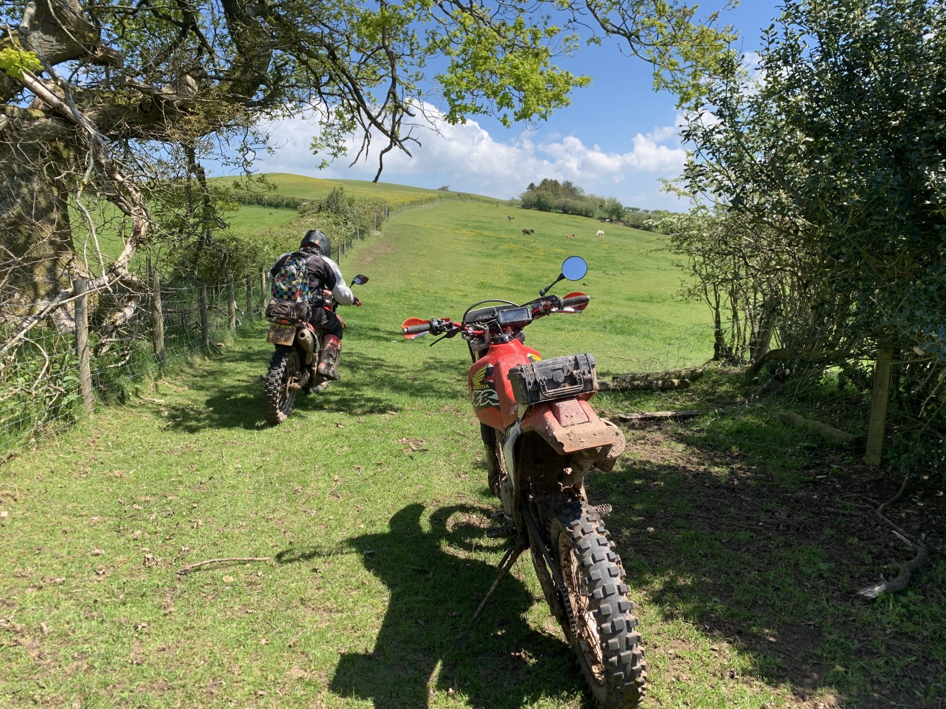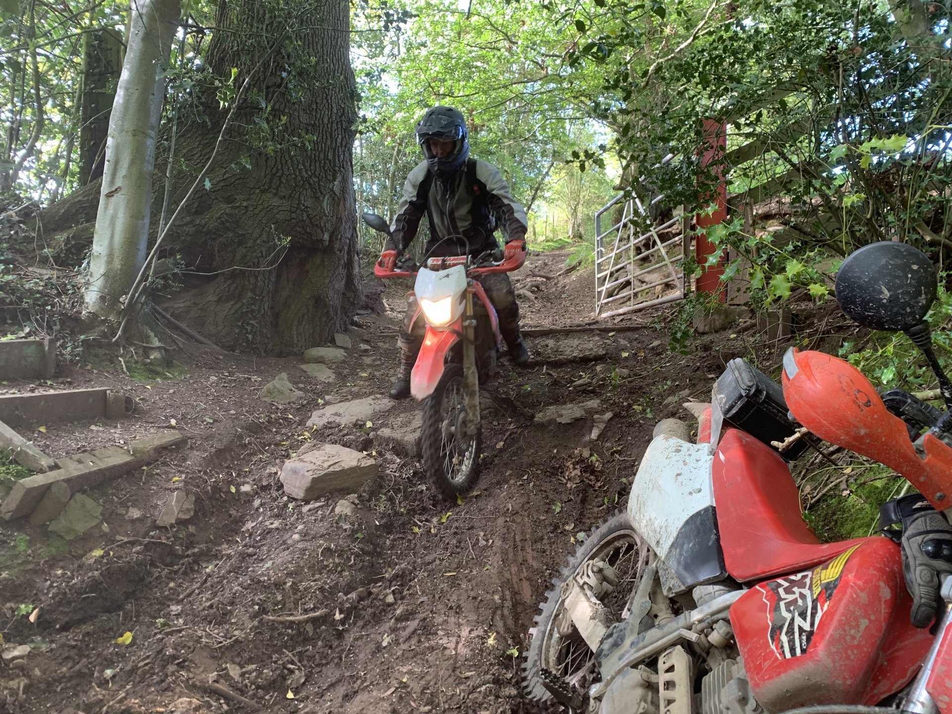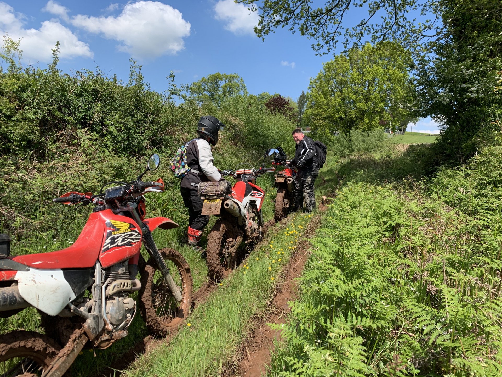 11. So i haven't got the energy to put any real content into this so here goes. While out on the dog yesterday i bumped into a couple of lads on CRF250L's and gets talking, the one is Steveoneleg my new best pal (sorry Bob ) and his buddy Jason twelve bellies. The pair of them are new to trail riding this year and members of the TRF (trail riders federation) same as me. After chatting for a while i mention i'm out for the day today and they ask if they could join me so a meeting place is arranged for the next day. I turns up about 9 has a chat explaining how i ride and i'm out for the day which is a like it or lump it sort of thing, and off we goes. Ride starts off with lots of scenic back roads and a few unpaved roads to warm things up heading to a place called Glasbury for breakfast which Steve takes full advantage of . On the route there i see just how green Jason twelve bellies is. He is finding everything hard work and says hes enjoying the experience but is asking lots of questions about the route home and complaining about a pounding head ache, he also said he hasn't felt 100% since his second covid jab two days ago . No photos up till now the first couple of lanes after the breakfast stop are a lot tougher than i though as the ground is still soaking even though we've had good weather for 2 or 3 days. Jason Steve This is a relatively easy lane but the wet and the ruts make it 100% worse this really took it out of poor Jason. Stopped for a breather A vid to see how slippery it was Next lane wasn't too bad but Jason decided to call it a day and head home leaving just me and Steve Which wasn't a bad idea as i think the next lane we would have been brushing the mud over Jason and leaving him there Steve doing a great job keeping things upright here It was hard going Next we were onto the easier stuff which now i think about it maybe i should have taken Jason straight to this stuff and skipped the earlier lanes, ahh well whatever More of the easy stuff, you tend to appreciate this more after slugging it out in the shit for a few hours LOL Stopped by this pond for a snack and a chat couldn't think of a nicer place the day was glorious Back on the track and a little further on in this photo i had to deal with an aggressive local bloke on a pushbike who stopped me to argue with me about riding there, saying i shouldn't be there. In my best i'm not going to punch the fuck out of you tone i explained he was wrong and educated him on the use of OS maps and what things meant on them and after a while i left with an apology from him for being such a cock on our initial encounter I tried not to let the twat upset me and after a few scenes like this he was a distant memory After an unexpected detour to get fuel (it might be just me but i expect everyone to turn up at the meeting point with a full tank) we get on the tracks that start us in the homeward direction @XTreme this is just a small steam crossing Last tricky lane of the day the camera just doesn't show how steep that is A long road ride home followed, Steve impressed me a lot, for someone who's only got into trail riding this year he rode great and whenever i said we can go home the quick way if you want,he choose to stick with the trail riding top bloke