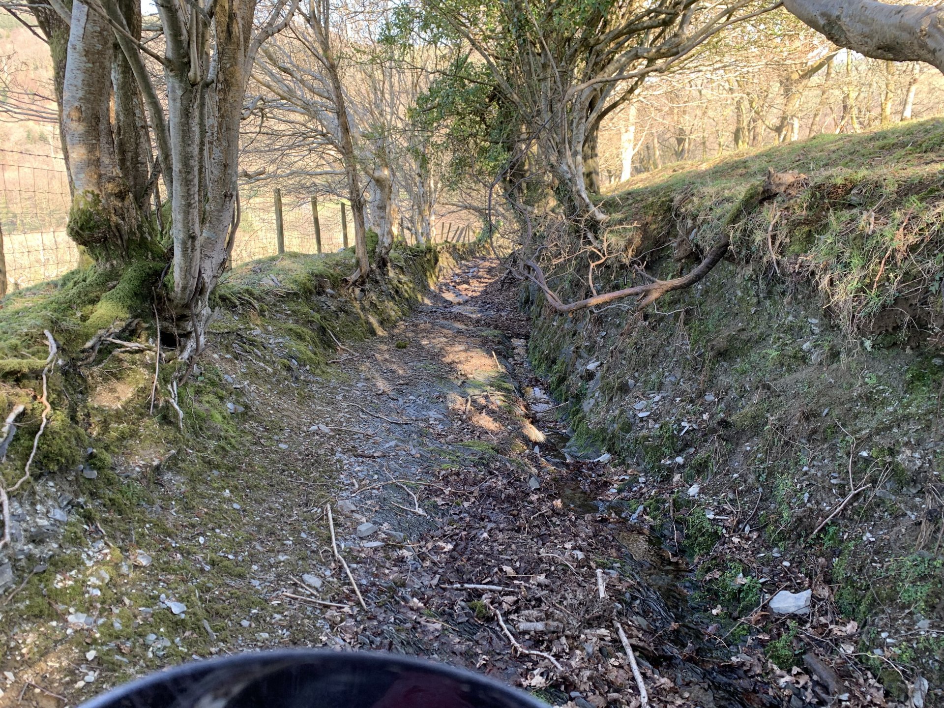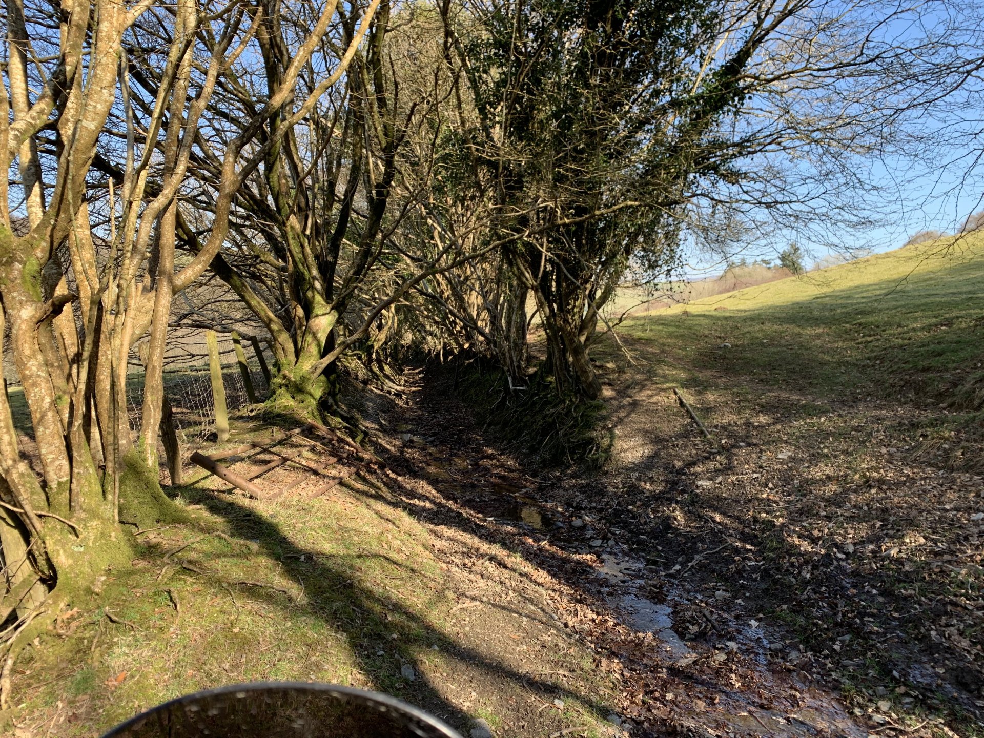 I came down that went up it years ago so new this was the right way to go i was passing and decided to check it out. I did get a bit worried i'd have to go back up it when i came to this though But managed to get around it by going down the farmers field. I did think it was done on purpose at first but looks like they are having a tidy up when i got to the end -