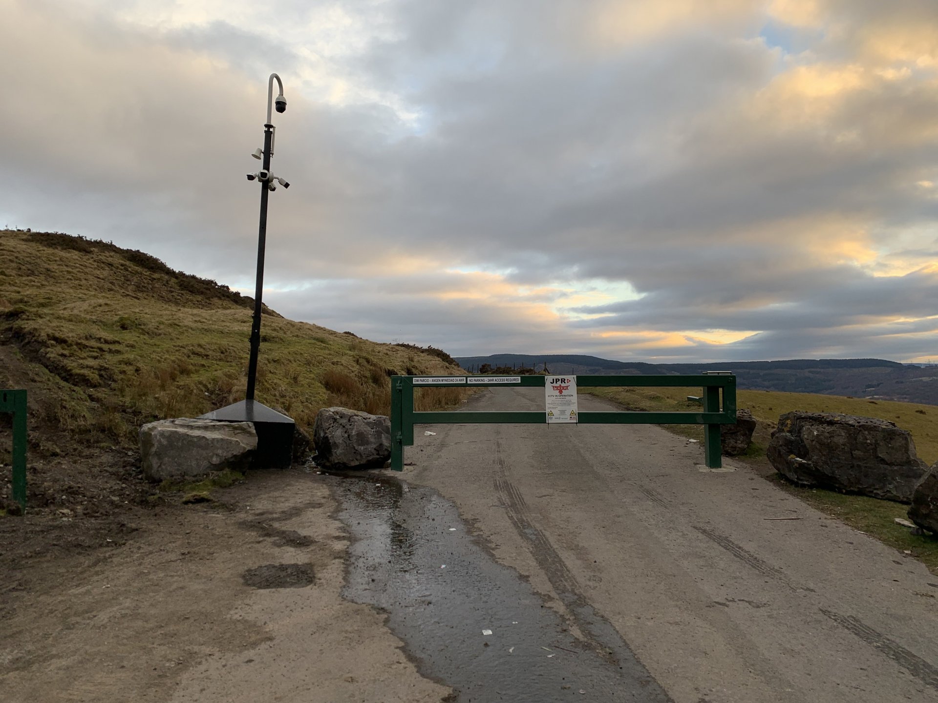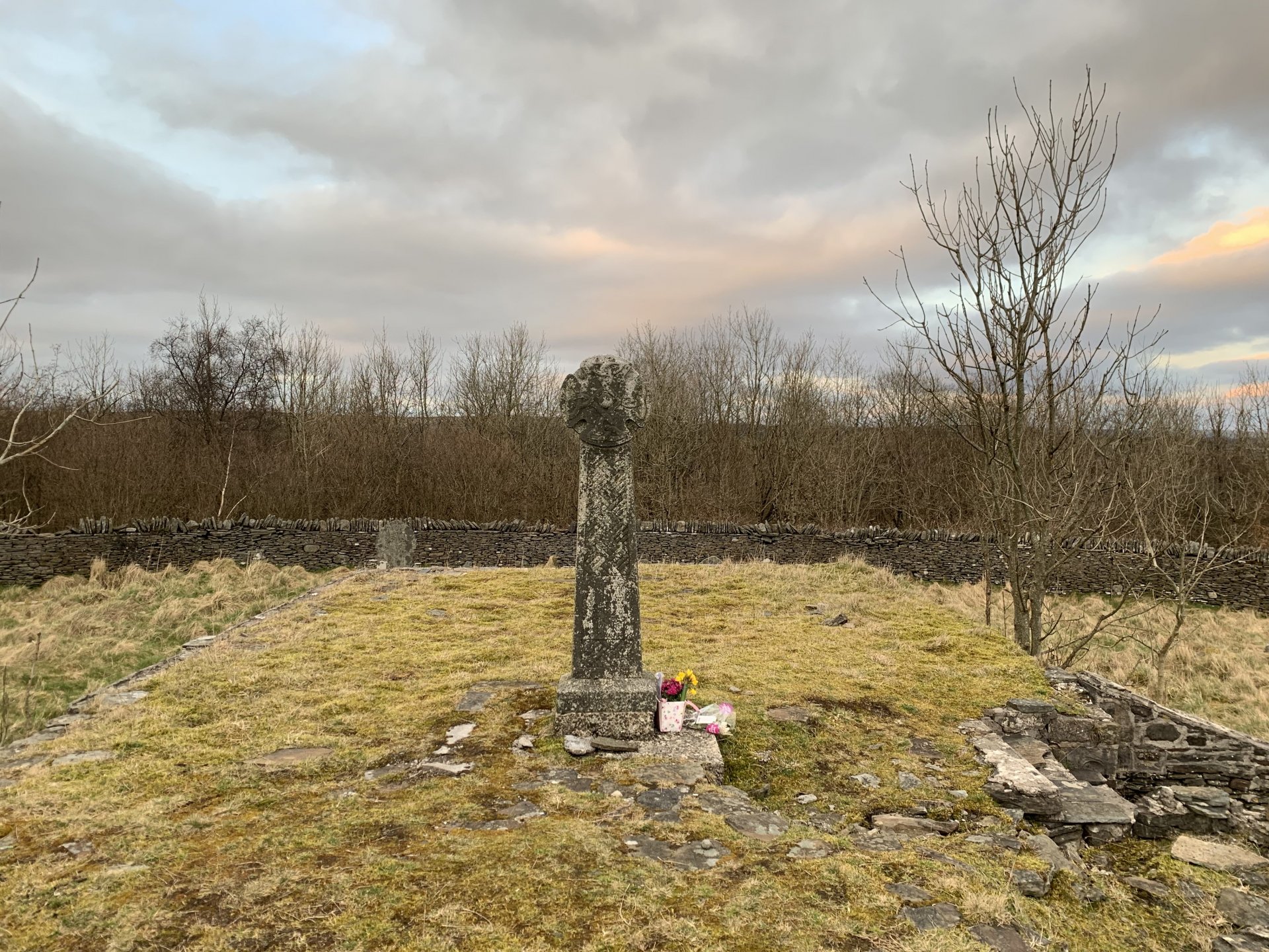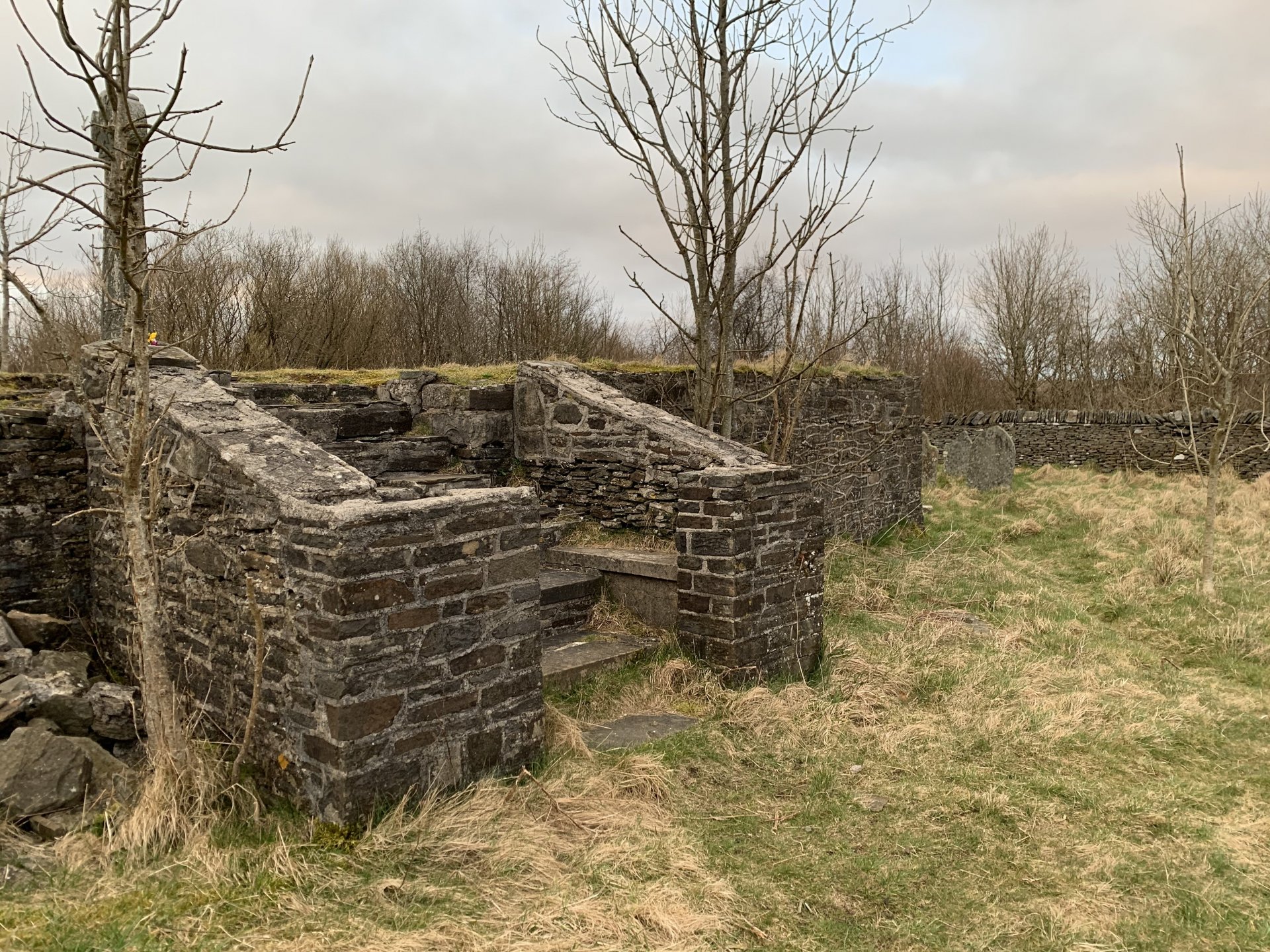 From the little information i can find it was a medieval chapel which will make it a thousand years old Its a public road which suffers some awful fly tipping its really bad up there but looks like their cleaning it up now JPR Phoenix, your guess is as good as mine probably some company employed to monitor the area by the local council