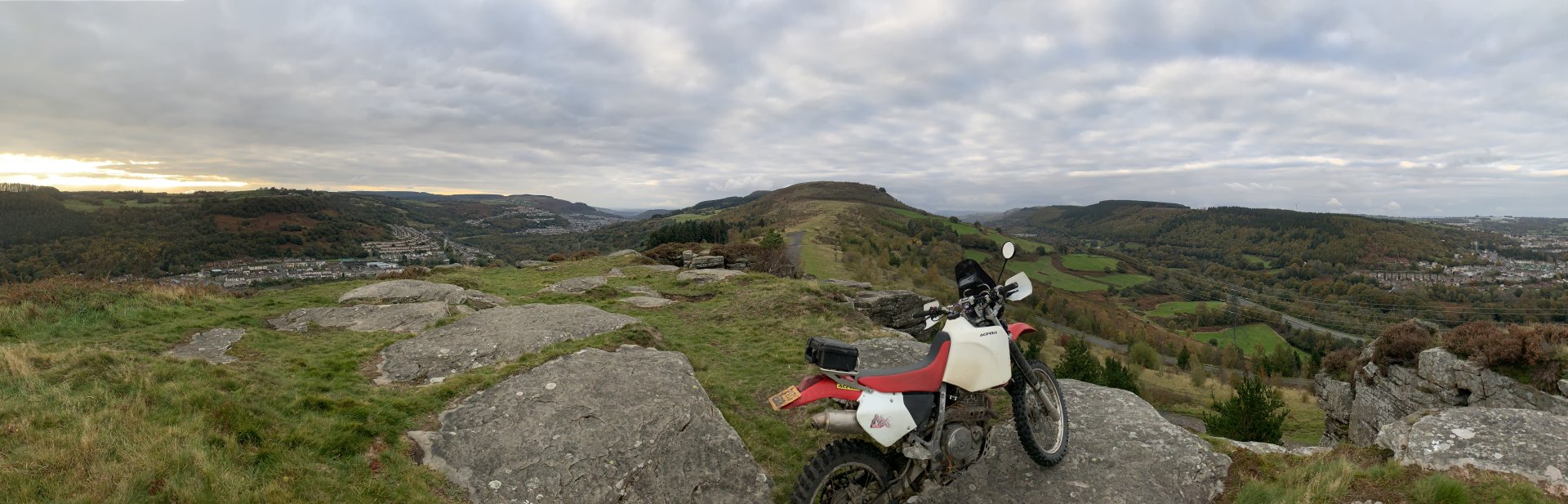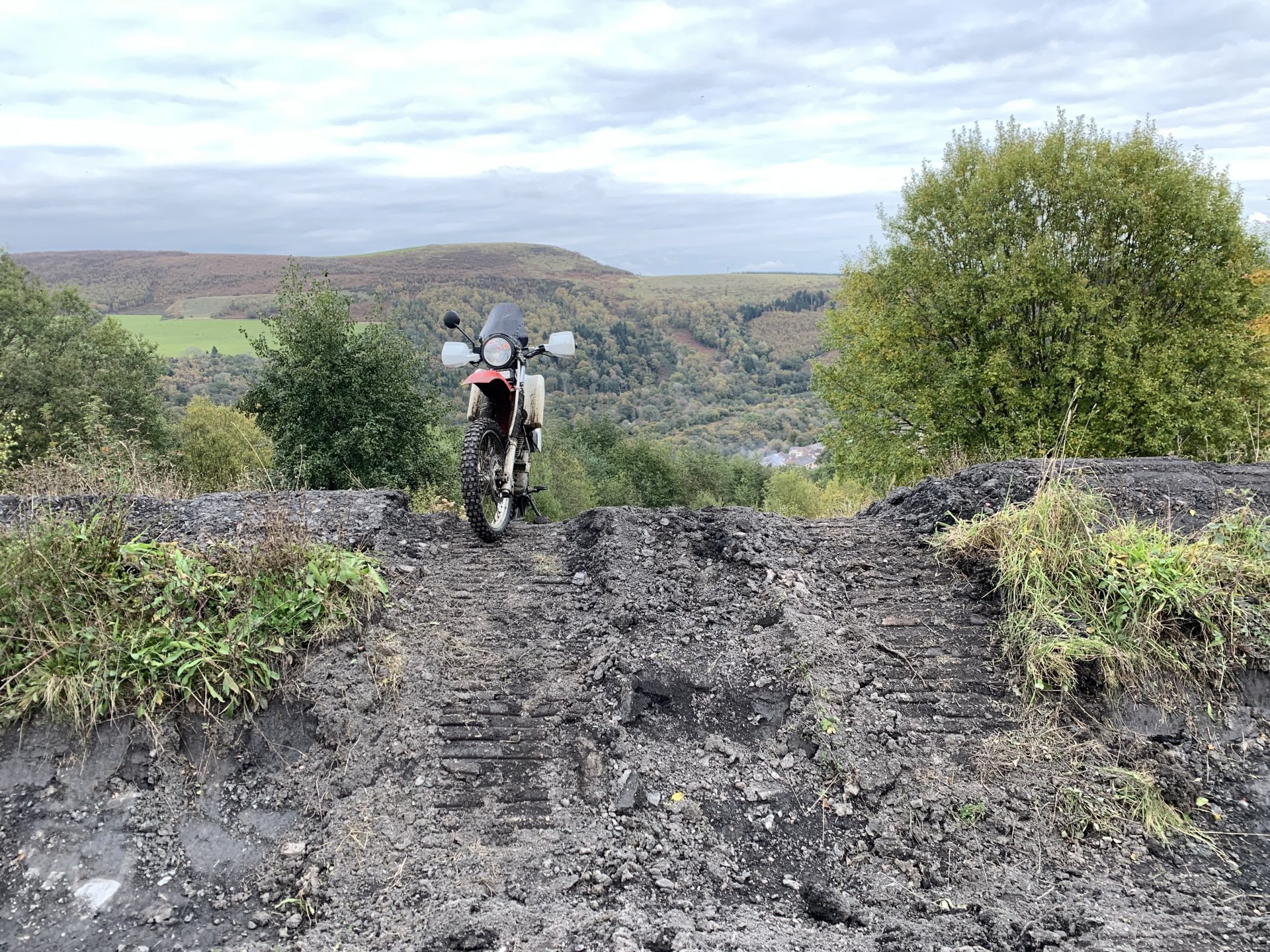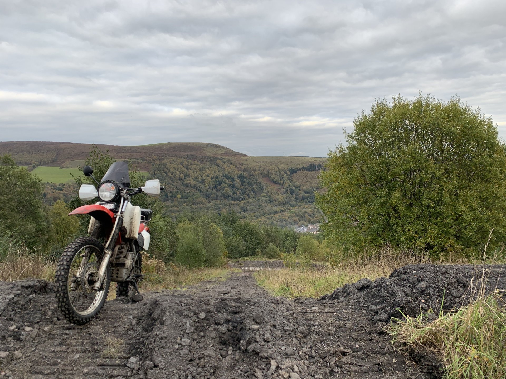 Today was the first time i have been aloud out the house for 2 weeks so i take a little ride to try and regain some sanity but stuck in RCT doesn't give me much choice in where to ride, the roads are busy as hell even for the bike and the lanes I've done a thousand times before but I'm going anyway. I takes the 650 to test the front end rebuild from last weekend and the Mitas C02 rear tyre. After traversing my way though the traffic to Porth about 4 miles north of my home its straight up to Miriam's bench again and a stop for a breather as this track is a bit harder on the 650 and i bloody needed it after 2 weeks of 3 meals a day and no exercise I decide to go over to the Cynon valley from here past the moto x practice track a nice gravel road through there but the guy that runs it keeps locking the gates, as far as I'm aware its still a vehicular right of way so i shall be reporting this again. I managed to bounce the bike through the horse gate to the right with no real problem but that's not the point it should not be locked And the same with the gate at the other end of the lane, he don't mind people using it when their paying to ride the track the twat A bit of road and a nice lane heading back towards home you could even do this on a 650GS and with wonky knees to ? No real Autumn colours yet Stopped to say hello to this pair but they weren't interested so i bid them farewell and carried on I decide to check out the old ford i haven't been across it in a long time. The route down to it hasn't been used for a long time either The concrete ramp is slippery as hell with a big drop into the water and lots of loose rock. Too rough for me to attempt on the 650 luckily there is a footbridge i could use instead I decides to do a loop back round to the start of the horsey lane as there's another lane off to the left i haven't done in years, the start has been blocked so another check for me to find out its status I have no problem squeezing through, this lane is a nice ride down through woodland I remember after this bit there's no going back as it gets a bit washed out ahead its all down hill so should be ok And i wasn't wrong, a bit rough for the 650 and me really. I had the bike propped upright for a photo but the bloody stick snapped good job the bank was there Why do photos always make things look easy ahh a nice gentle lane and i need it to cool down after the last one but it wasn't like this for long I haven't ridden along here in over 10 years as it's not quite legal and i suddenly realised I'm impressed with the C02 tyre it got quite mucky and the tyre had no trouble pushing me through it all back to the road via the old coal tip used to have great fun on these as a kid a hell of a lot more growth on it now though Next track is up though the woodland on the side of the mountain behind the bike here At the top of this old coal tip is the aptly named jam pot, not quite sure what it was for but it was to do with the old coal industry here years ago A bit more road and onto the next mountain, Again quite a difficult track for the 650 but it manages I'm just along for the ride I ride up onto what is known as the gap, I'm on dodgy ground now I'm right on the RCT border here, to the left is RCT and the right Merthyr And from here it was home i did have to cross the boarder for about a mile but i made sure no covid jumped off or onto me honest ? a good ride to pull me out the rut I've been in for the last two weeks. The 650 might be a rough old dog but i just love thumping around on it always cheers me up