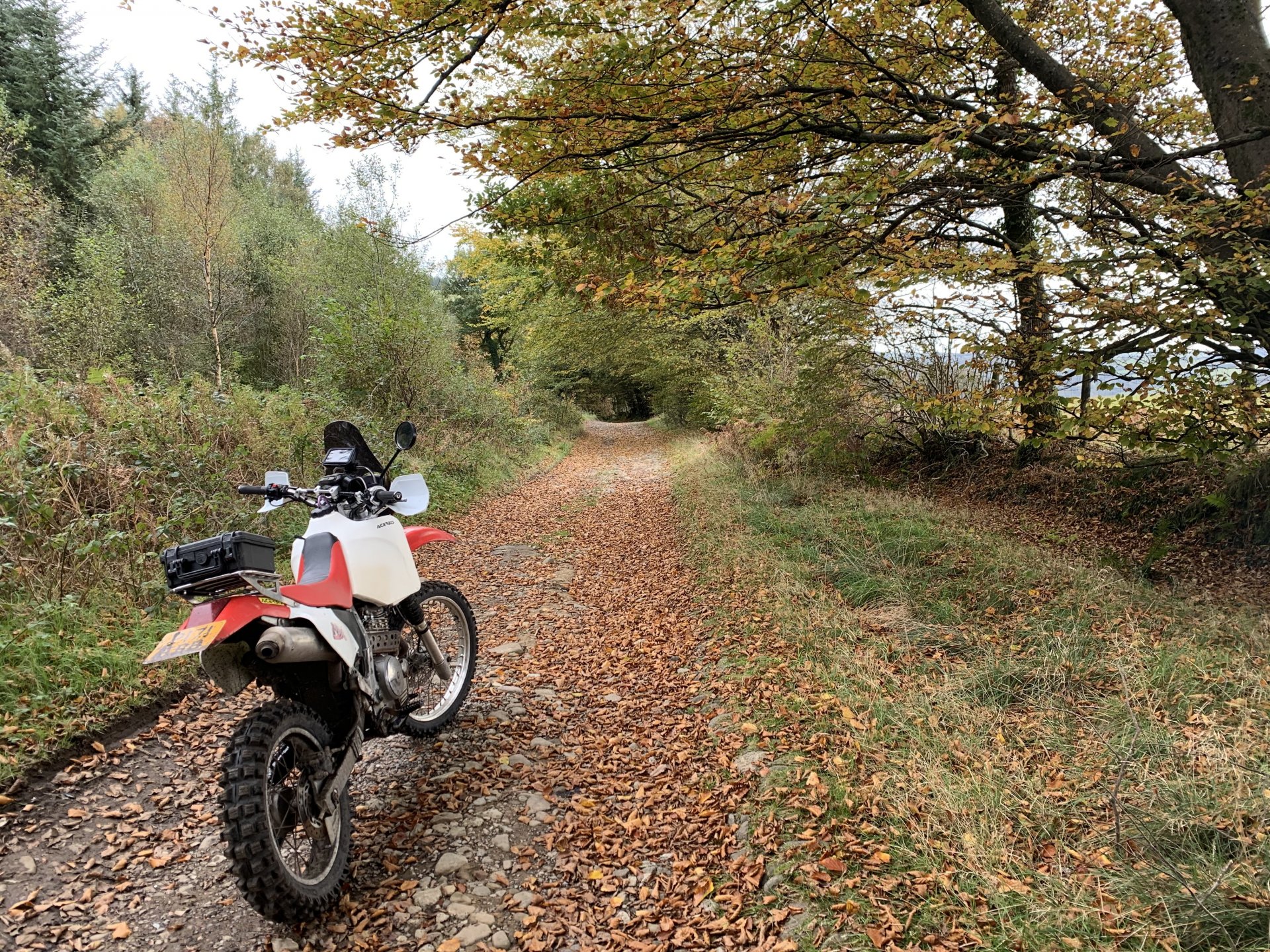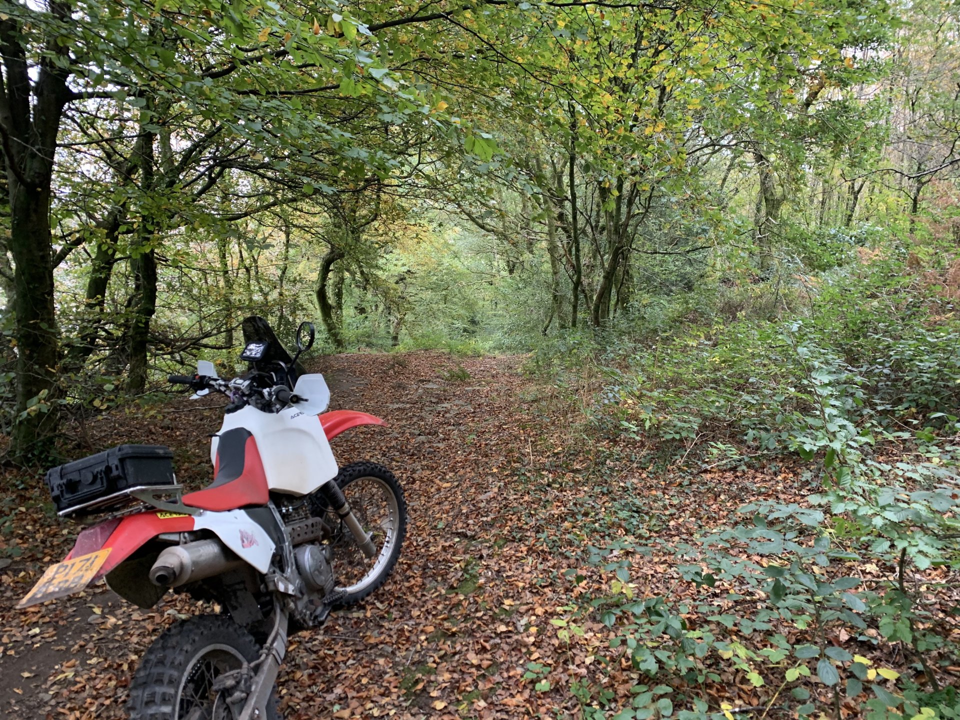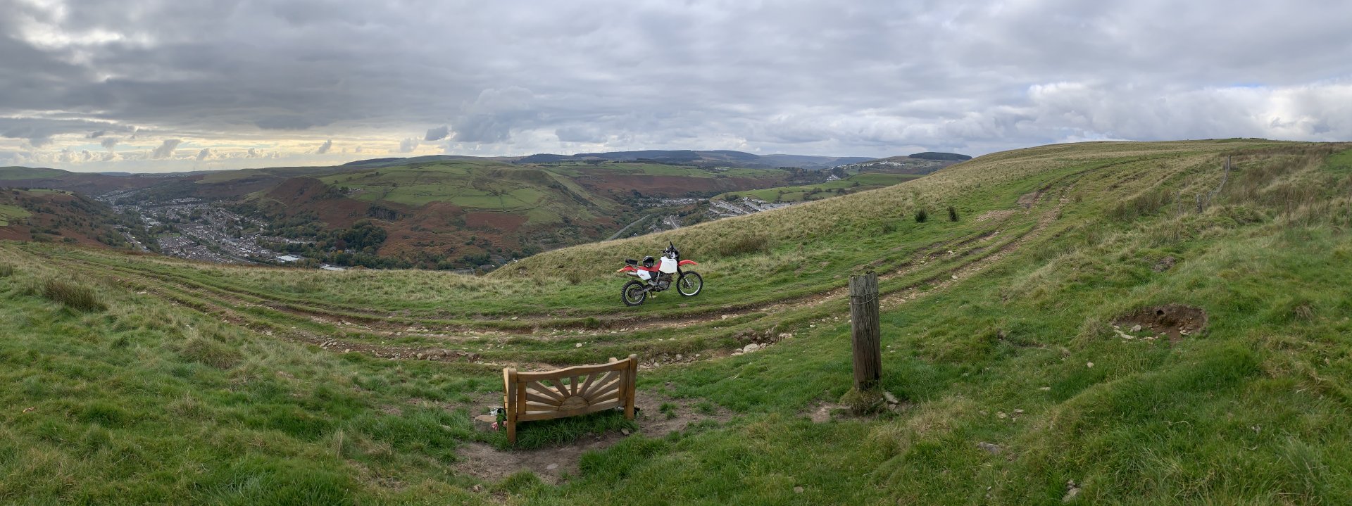 Today was the first time i have been aloud out the house for 2 weeks so i take a little ride to try and regain some sanity but stuck in RCT doesn't give me much choice in where to ride, the roads are busy as hell even for the bike and the lanes I've done a thousand times before but I'm going anyway. I takes the 650 to test the front end rebuild from last weekend and the Mitas C02 rear tyre. After traversing my way though the traffic to Porth about 4 miles north of my home its straight up to Miriam's bench again and a stop for a breather as this track is a bit harder on the 650 and i bloody needed it after 2 weeks of 3 meals a day and no exercise I decide to go over to the Cynon valley from here past the moto x practice track a nice gravel road through there but the guy that runs it keeps locking the gates, as far as I'm aware its still a vehicular right of way so i shall be reporting this again. I managed to bounce the bike through the horse gate to the right with no real problem but that's not the point it should not be locked And the same with the gate at the other end of the lane, he don't mind people using it when their paying to ride the track the twat A bit of road and a nice lane heading back towards home you could even do this on a 650GS and with wonky knees to ? No real Autumn colours yet Stopped to say hello to this pair but they weren't interested so i bid them farewell and carried on I decide to check out the old ford i haven't been across it in a long time. The route down to it hasn't been used for a long time either The concrete ramp is slippery as hell with a big drop into the water and lots of loose rock. Too rough for me to attempt on the 650 luckily there is a footbridge i could use instead I decides to do a loop back round to the start of the horsey lane as there's another lane off to the left i haven't done in years, the start has been blocked so another check for me to find out its status I have no problem squeezing through, this lane is a nice ride down through woodland I remember after this bit there's no going back as it gets a bit washed out ahead its all down hill so should be ok And i wasn't wrong, a bit rough for the 650 and me really. I had the bike propped upright for a photo but the bloody stick snapped good job the bank was there Why do photos always make things look easy ahh a nice gentle lane and i need it to cool down after the last one but it wasn't like this for long I haven't ridden along here in over 10 years as it's not quite legal and i suddenly realised I'm impressed with the C02 tyre it got quite mucky and the tyre had no trouble pushing me through it all back to the road via the old coal tip used to have great fun on these as a kid a hell of a lot more growth on it now though Next track is up though the woodland on the side of the mountain behind the bike here At the top of this old coal tip is the aptly named jam pot, not quite sure what it was for but it was to do with the old coal industry here years ago A bit more road and onto the next mountain, Again quite a difficult track for the 650 but it manages I'm just along for the ride I ride up onto what is known as the gap, I'm on dodgy ground now I'm right on the RCT border here, to the left is RCT and the right Merthyr And from here it was home i did have to cross the boarder for about a mile but i made sure no covid jumped off or onto me honest ? a good ride to pull me out the rut I've been in for the last two weeks. The 650 might be a rough old dog but i just love thumping around on it always cheers me up