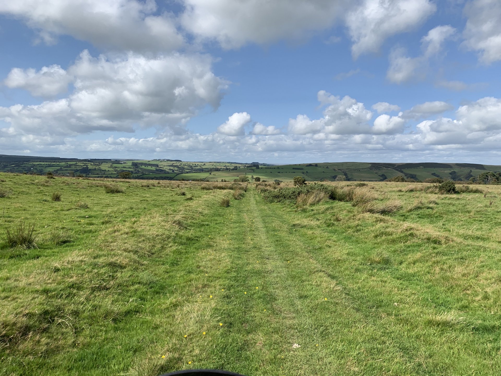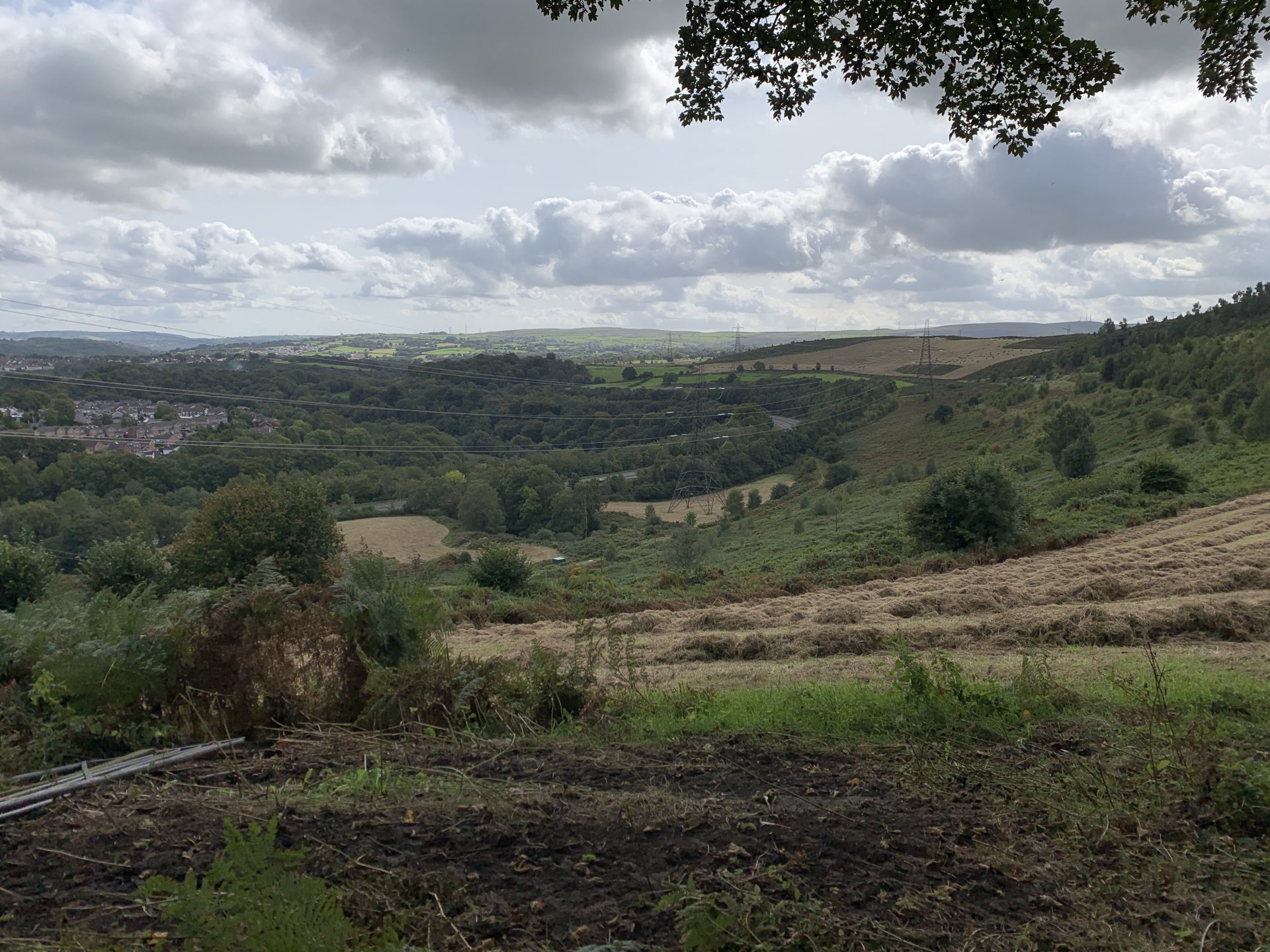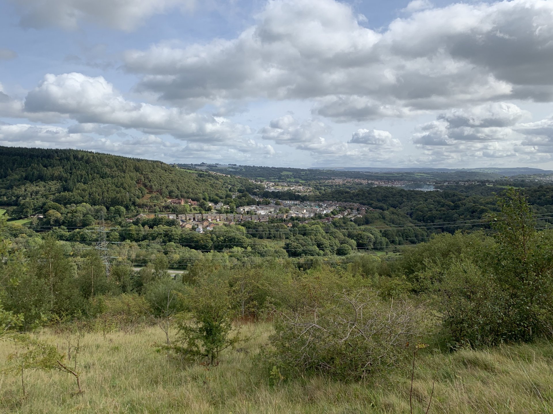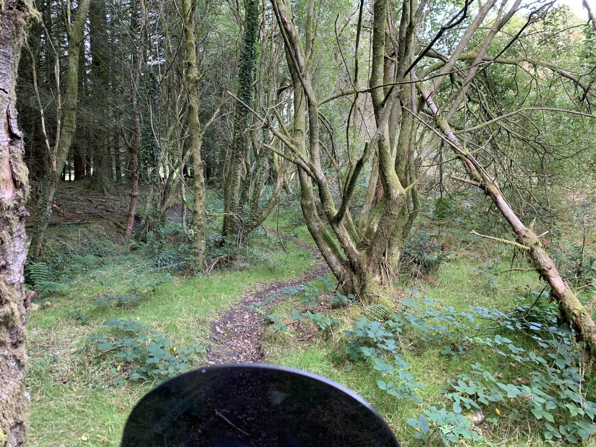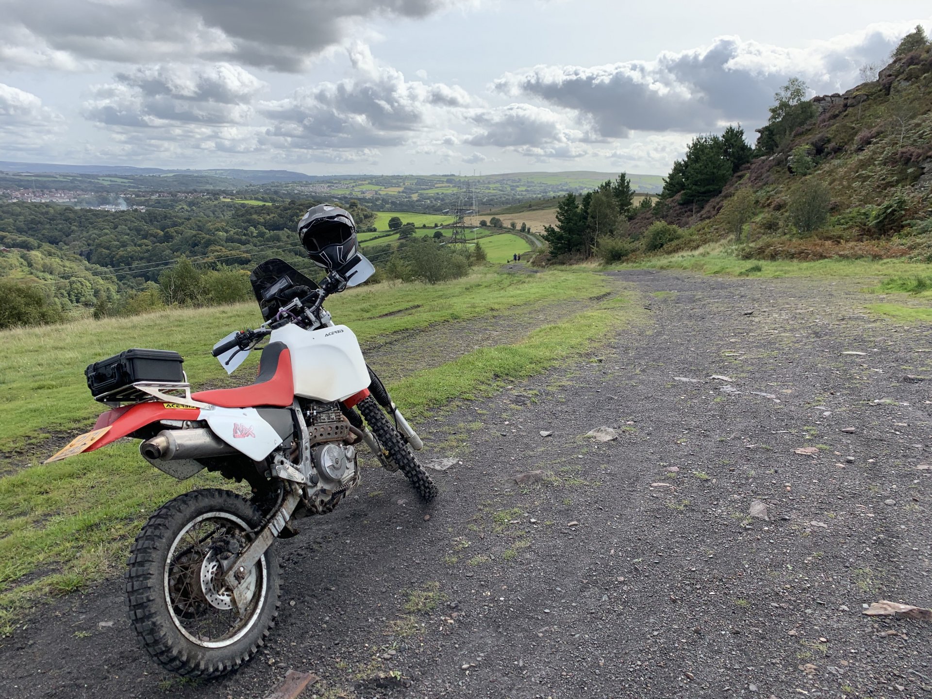 Feeling a bit cheesed off i couldn't use the bike after rebuilding the rear shock this morning due to a new corvid lockdown, but after reading the rules for the area I discovered it was only stopping me from leaving or entering Rhondda Cynon Taff which consists of five valleys so plenty of places to ride without breaking the lockdown rules. I started off going up a lane i haven't been to for years the main route is now blocked by fallen trees so had to go around on this path This is back on the route but i see there are more trees down ahead The bike doesn't feel right its slipping all over the place and i fall off after getting over the fallen tree behind the bike. I decided to have a look ahead before i go to the trouble of negotiating all the fallen trees glad i did the trail is washed out and looked worse further up so made the decision to turn around especially as i was dressed for the winter and it was bloody boiling out The next lane is a few miles further up the valley and the bike performs flawlessly on the road there. At the gate to the lane i decide to reduce the tyre pressures as i know this lane is washed out and tricky in places, looks like i need a new pressure gauge on my compressor i put 15psi in but my mobile pump is showing over 20psi drops the pressure front and rear to about 12psi Reducing the pressures made all the difference the bike feels like it should now no more of that sliding about. I stop at this memorial bench someone has fitted since my last ride up here to admire the view and i also wanted to watch a landrover that was coming up behind me negotiate some of the washed out bits on the way up The view from the bench is great but a bit windy which i didn't mind as it helped me cool down That's Penrhys in the middle distance the shitty in the sky and i didn't spell city wrong there, it used to be a real rough area to live Here comes the Landy I stopped to talk to the landy driver a bit further up, he was doing the same as me with his boy and he shared a video of me getting off and on the bike lol I stalled the bike and when i put my foot down to save it the bloody kick start lever went up my trouser leg and my foot never got to the ground anyhow that's not important lol the next bit was through a bit of forestry not as wet as the last time i was here the next lane i didn't stop for any photos so after that it is up by Penrhys. I like this one because it goes through a golf course and you can see the contempt on some of the golfers faces as you ride through Further on And Heading home only a short ride but really picked me up