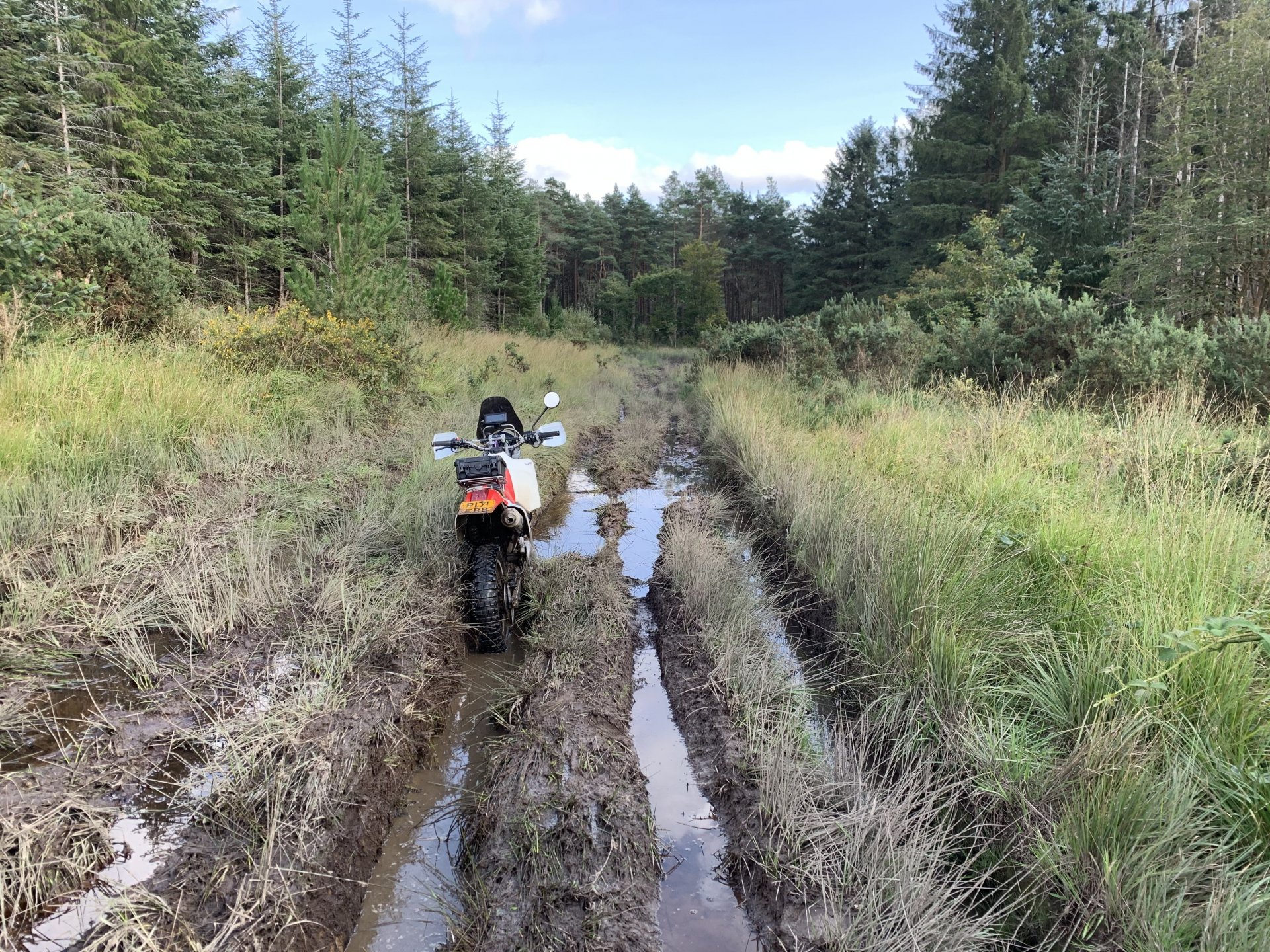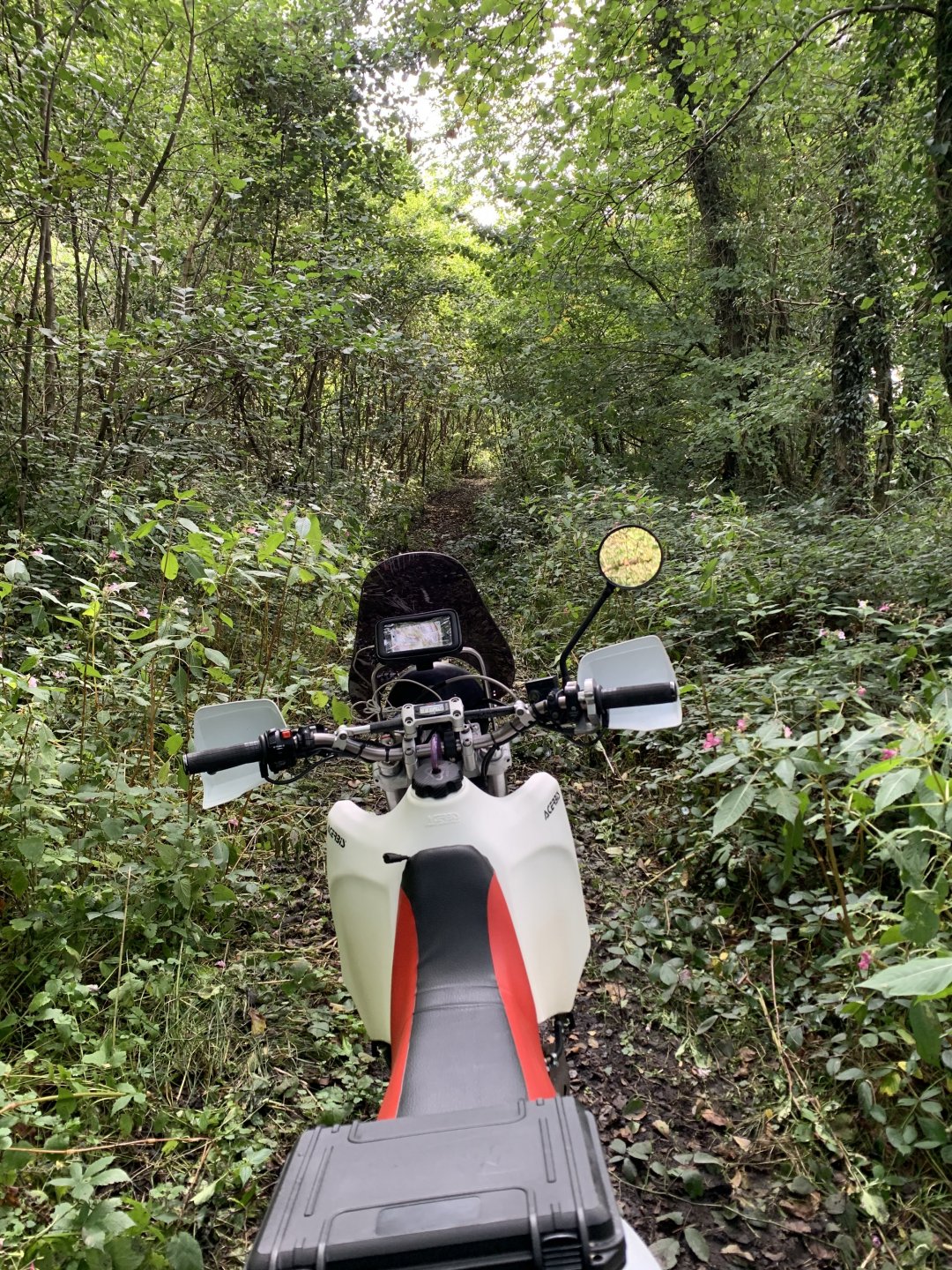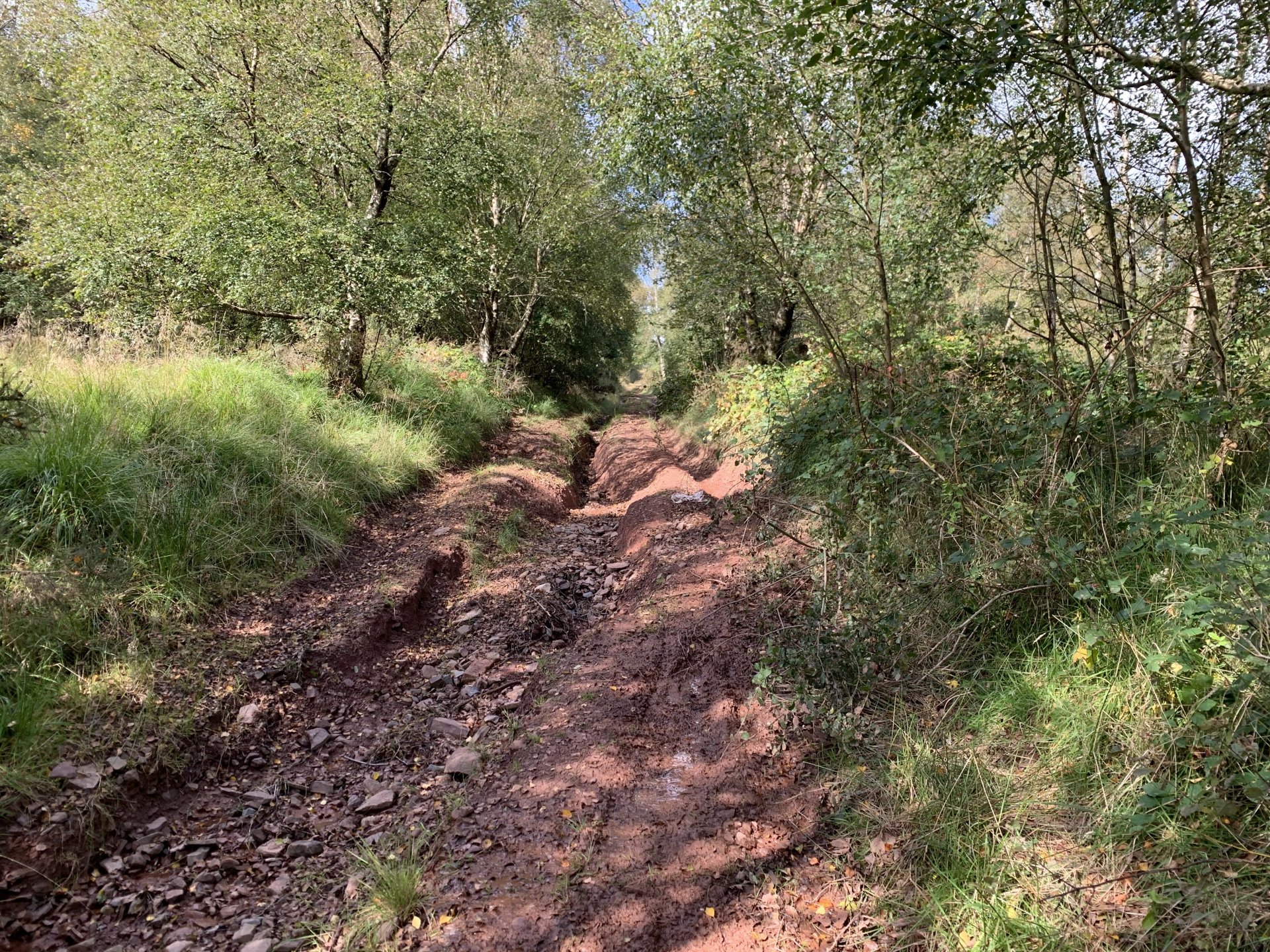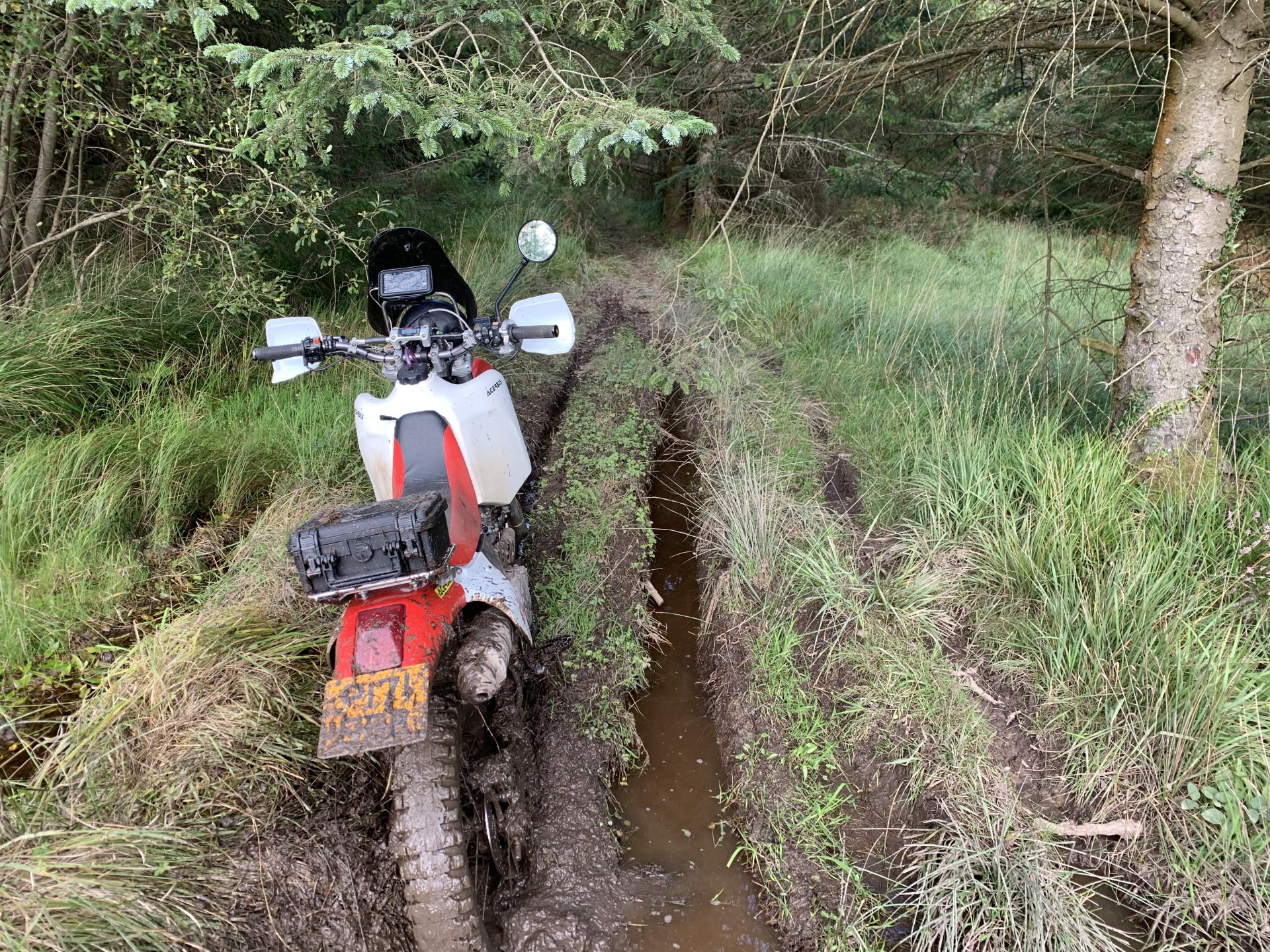 Back to the ride this is a photo of the tunnel entrance where i had to turn around its the group of trees to the left of the pylon Down to a place called Pontygwaith from there to the humpiest hump back bridge i know of Looking into the Taf again Just off the tram road is this, i'm not sure what its purpose was i think a WW2 pill box Looks like some poor bastard spent a night or two in here Good view from the window Back on the tram road its now the Taf trail only those pedal powered heathens allowed on here so only rode in for a couple of photos and then left. I used to ride it all the time before everyone went green On the parish road to methyr now i cant think I've ever seen anyone walking up here but past 3 families on the way everyone's invading my peace since corvid used to be just me the horses and the sheep The black shapes above the brown horse in the distance are solar panels lots of them appearing here now Aberdare in the valley below here This is looking towards Sennybridge one of my many favourite roads This is one of the reasons i came out today I've had a few people ask me about a few lanes on the TET https://transeurotrail.org/ Lots think it's a route suitable for the larger bikes i've been telling people not all of it in the UK is so decided to take a few photos of two i know would be a challenge The start on this one looks ok But soon becomes a flat twins nightmare Bike for scale Quite nice once you get past all that though But soon goes down hill literally LOL Ends in someones garden And the next one isn't much better looks rough from the start This photo and the next show how in my opinion these easily accessible routes on line affect the lanes the second photo i took in 2012 same lane and location On the way home i decided to check out a lane i thought i haven't ridden before The road there was good starts off ok But doesn't last long surprisingly that was all OK to get through Photo to prove i didn't go around When i got here i realised i had ridden this before many years ago and vowed i'd never come back bloody poor memory, getting old sucks LOL Stuck here for a short while but pulling it back a few few feet slipping it into second with lots of gas sorted that. After that it was a bit more hard work before getting stuck again I wasn't far from the main track which goes around this shit but the red dots are supposed to be the vehicle right of way. You will notice by my route i had trouble finding the entrance to this i should have left it lost, i'll be sticking to the gravel next time. Almost there It was home from here along some uninspiring lanes after that And this is why we cut out or remove the front sprocket cover