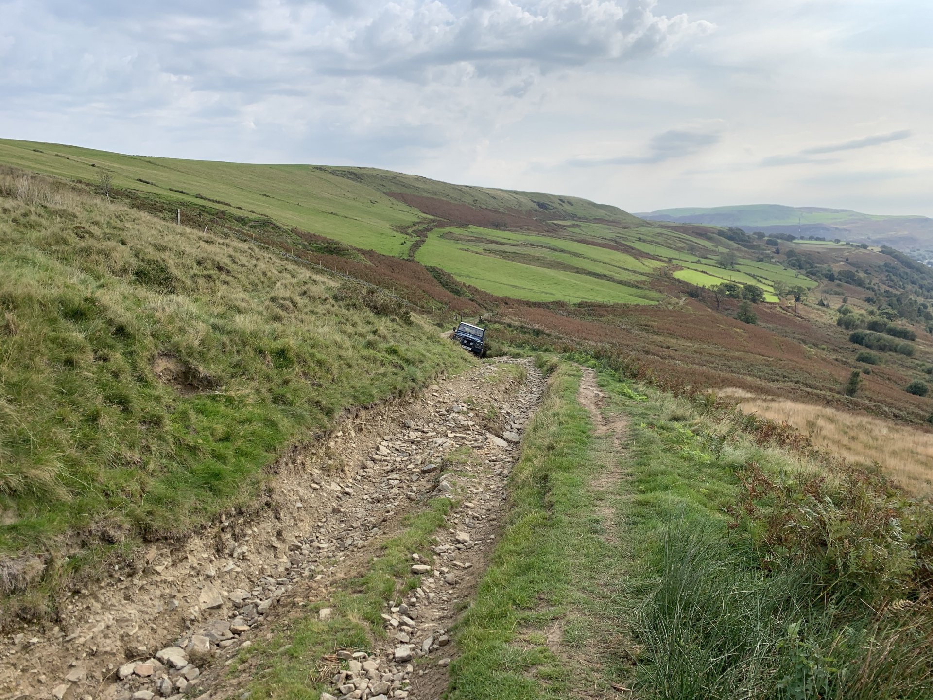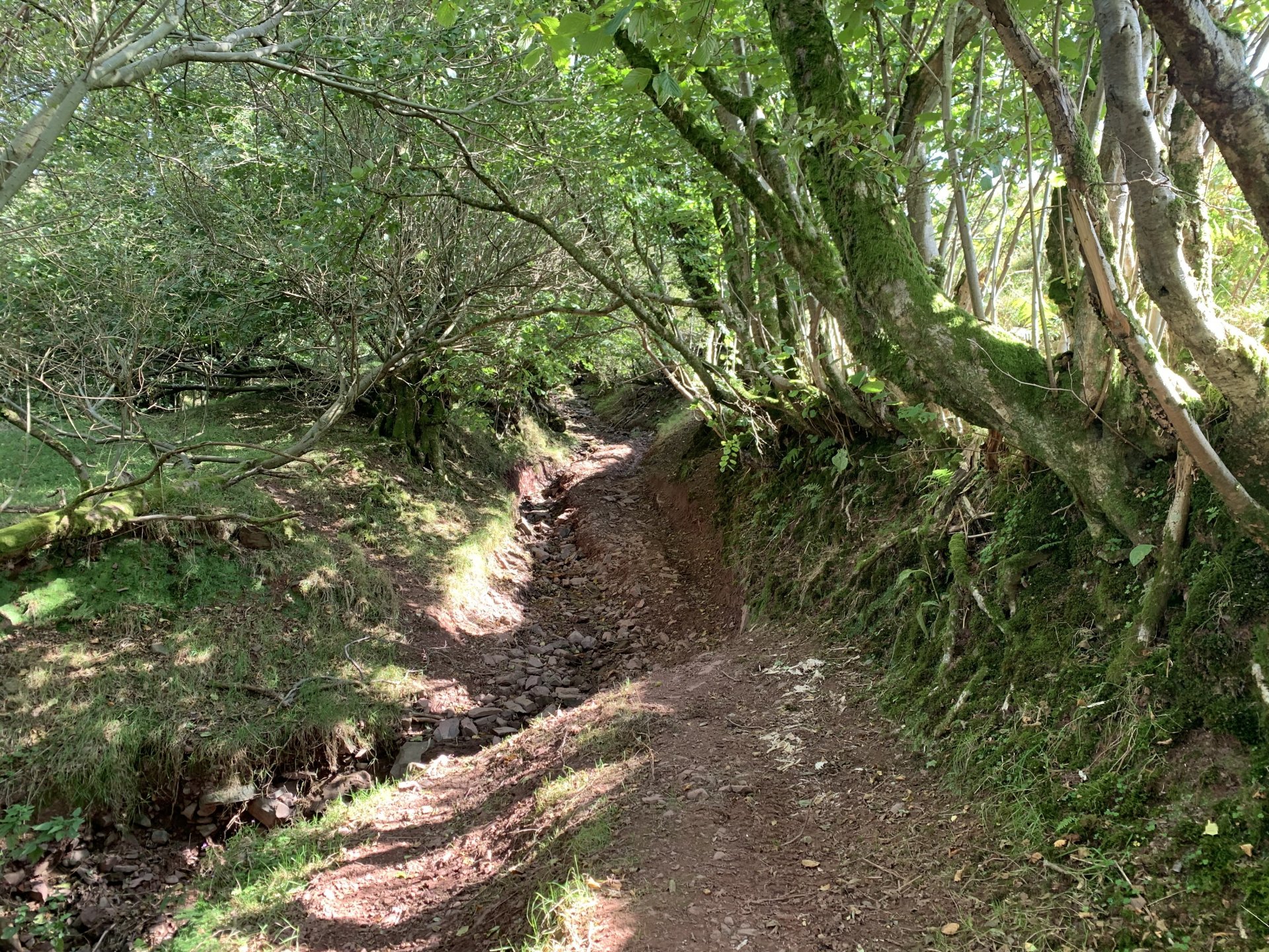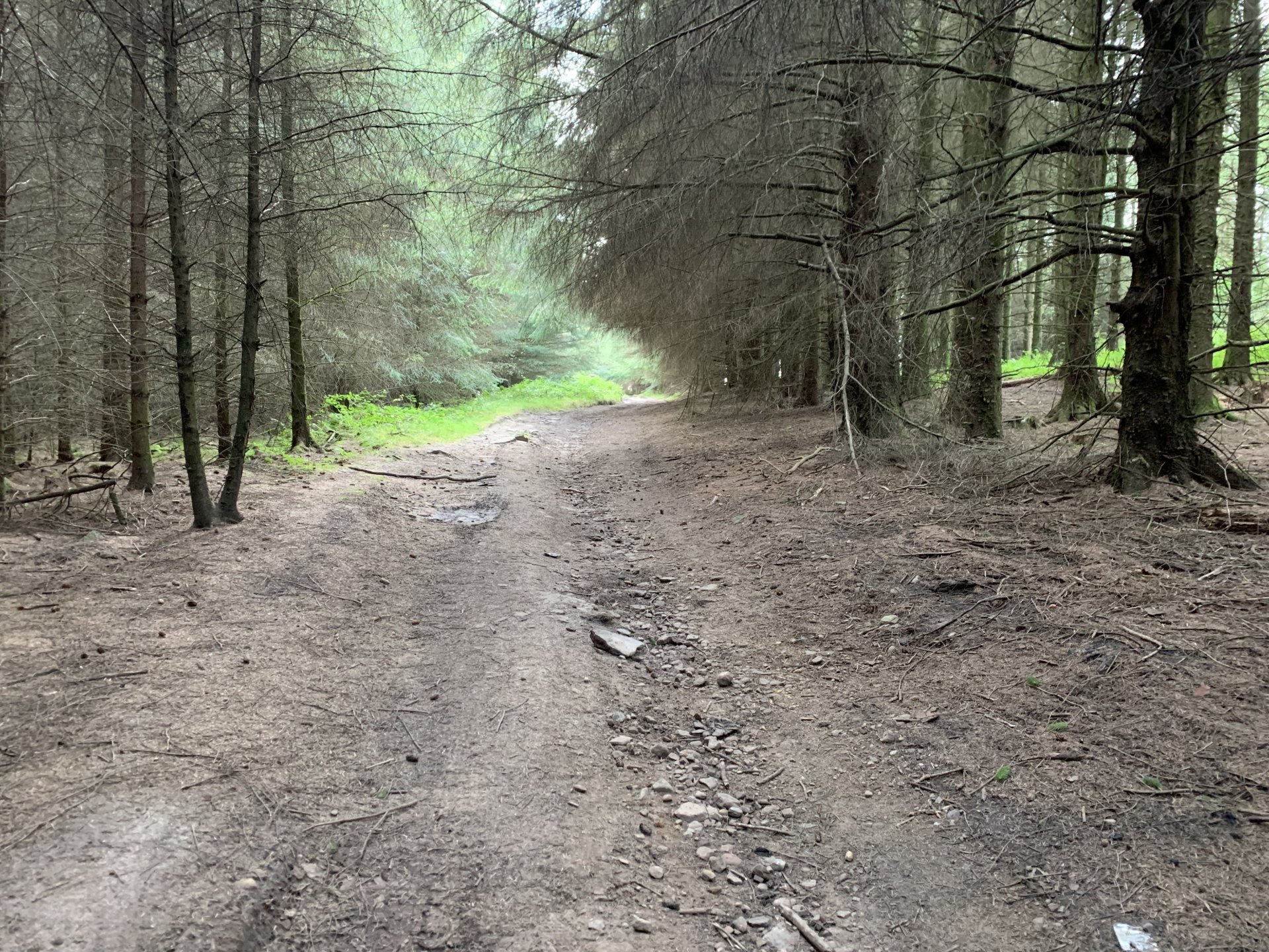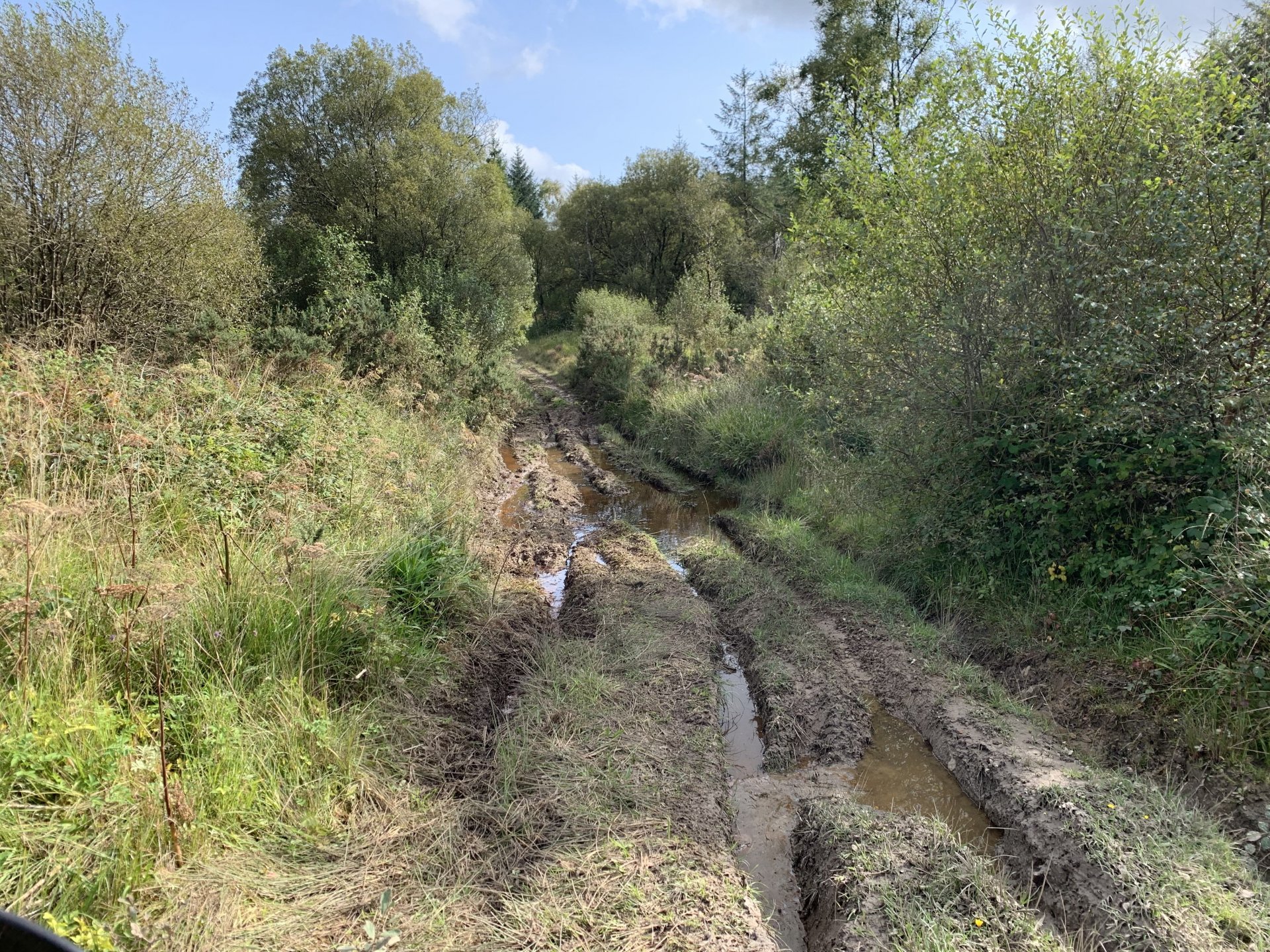 Back to the ride this is a photo of the tunnel entrance where i had to turn around its the group of trees to the left of the pylon Down to a place called Pontygwaith from there to the humpiest hump back bridge i know of Looking into the Taf again Just off the tram road is this, i'm not sure what its purpose was i think a WW2 pill box Looks like some poor bastard spent a night or two in here Good view from the window Back on the tram road its now the Taf trail only those pedal powered heathens allowed on here so only rode in for a couple of photos and then left. I used to ride it all the time before everyone went green On the parish road to methyr now i cant think I've ever seen anyone walking up here but past 3 families on the way everyone's invading my peace since corvid used to be just me the horses and the sheep The black shapes above the brown horse in the distance are solar panels lots of them appearing here now Aberdare in the valley below here This is looking towards Sennybridge one of my many favourite roads This is one of the reasons i came out today I've had a few people ask me about a few lanes on the TET https://transeurotrail.org/ Lots think it's a route suitable for the larger bikes i've been telling people not all of it in the UK is so decided to take a few photos of two i know would be a challenge The start on this one looks ok But soon becomes a flat twins nightmare Bike for scale Quite nice once you get past all that though But soon goes down hill literally LOL Ends in someones garden And the next one isn't much better looks rough from the start This photo and the next show how in my opinion these easily accessible routes on line affect the lanes the second photo i took in 2012 same lane and location On the way home i decided to check out a lane i thought i haven't ridden before The road there was good starts off ok But doesn't last long surprisingly that was all OK to get through Photo to prove i didn't go around When i got here i realised i had ridden this before many years ago and vowed i'd never come back bloody poor memory, getting old sucks LOL Stuck here for a short while but pulling it back a few few feet slipping it into second with lots of gas sorted that. After that it was a bit more hard work before getting stuck again I wasn't far from the main track which goes around this shit but the red dots are supposed to be the vehicle right of way. You will notice by my route i had trouble finding the entrance to this i should have left it lost, i'll be sticking to the gravel next time. Almost there It was home from here along some uninspiring lanes after that And this is why we cut out or remove the front sprocket cover