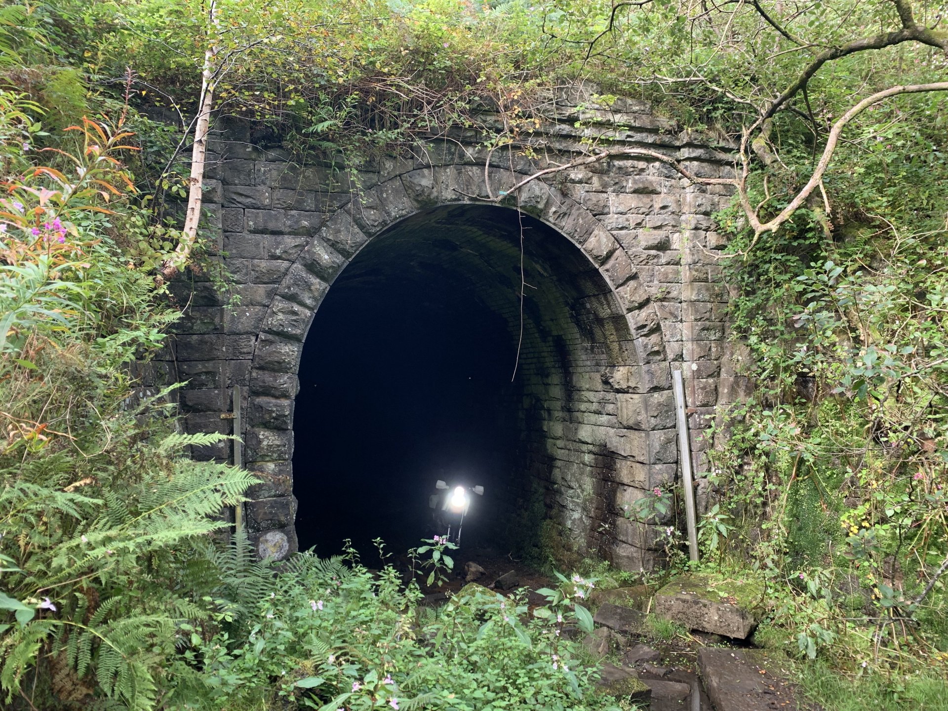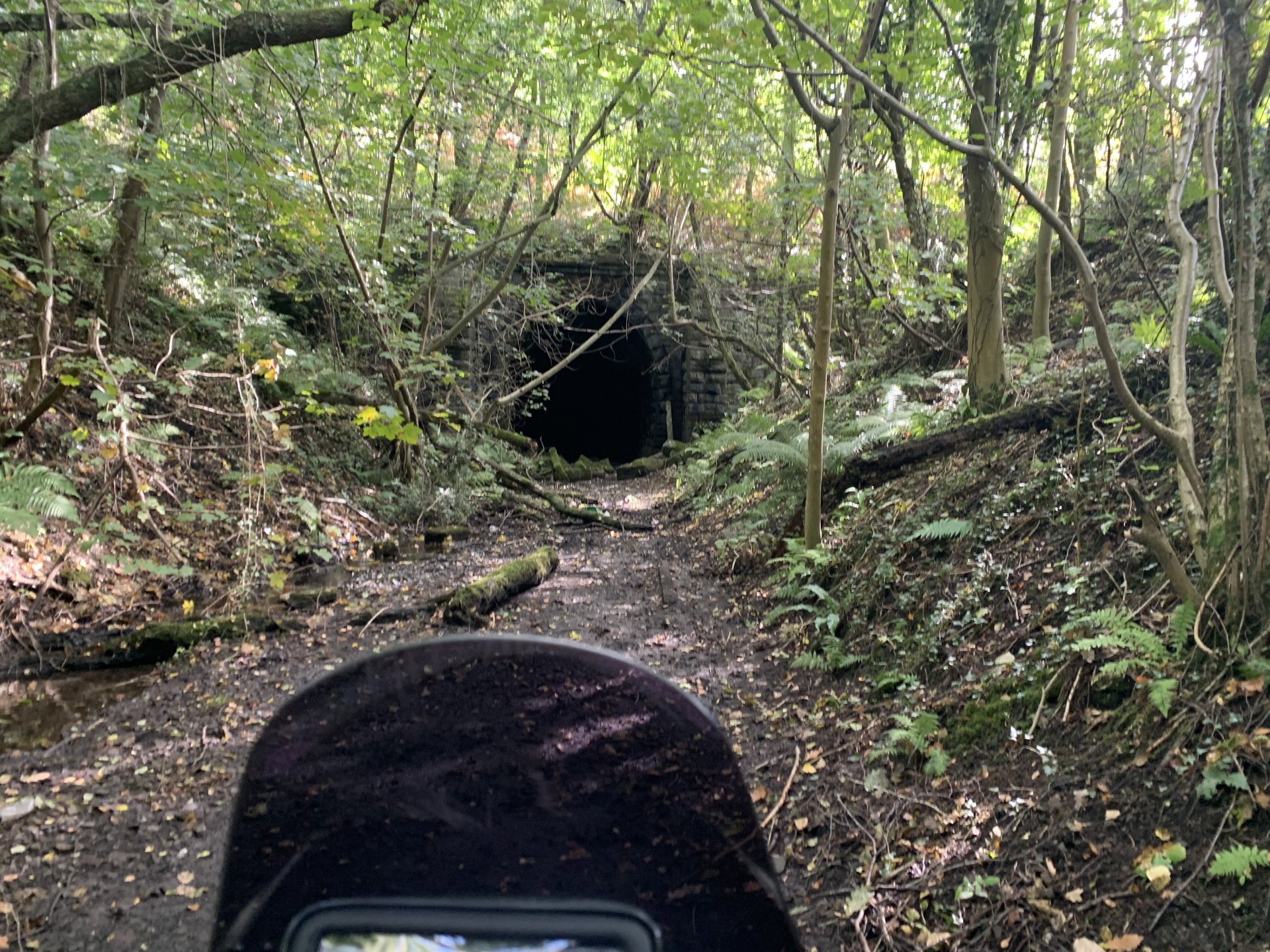 As the fuhrer of this forum instructed me to go out and ride i did, and as he likes anything to do with choo choo trains i thought i would revisit the old tunnel and viaduct where i grew up The viaduct is called Goitre Coed Viaduct the only one of three left and still in use today, originally it was a single track but was widened it to make it into a twin track i think it was designed by some bloke called brunel I think I've posted this before this is it being widened they just built another viaduct against the original one To get to the viaduct i had to ride the old tram road which passes under it, which was the place the worlds first powered rail journey took place. powered by Richard Trevithick's steam locomotive The trees are huge compared to what i remember walking along here as a lad Avon Taf in English river Taff I tried to do a now and then photo of this But all you can see now are trees So onto the tunnel the route in has had various types of blockades over the years but luckily for me the locals always find a way through, the old line ran over this little bridge This is what the line is like now hard to imagine trains travelling along here And another futile attempt to stop me getting into the tunnel, looks like some recent drainage works has been going on Tunnel is this way There it is Not the best I've seen it And we're in, only about a quarter of a mile long this one That LED light i got on the bike is not much good on the road i can see why now most of it goes up lol with the light off didn't do that for long it was a bit scary Out at the other end, they built the A470 and blocked off the exit from the cutting so you have to turn around This is the tunnel in use and this is now, the same end of the tunnel This end of the tunnel is quite wet and has drainage ditches in the centre so you have to stay to the left or right to avoid them, this end also suffers from the most deterioration You can still see all the soot on the walls here, this opening used to be a little room for the track workers to rest in, i remember it having wooden benches in there as a lad but in the miners strike back in the 80's my cousins boyfriend dug through here into the old pit workings and started digging out coal, it was filled in but this looks like someone has been in there again, i was too freaked out to take a closer look and made for the exit The exit A shaky hand held video my phone couldn't handle the bumps so its a bit blurry I then took the old parish road to get back up over the mountain, my father said he used to drive his bubble car over here 50 years ago, well there's no chance of that now. And on the top, the tunnel is beneath the bike here another now and then, the old photo showing the three viaducts, the one on the far right is the only remaining one And the same view now, you can just make out the viaduct below the smoke That's it for now i'm off to bed