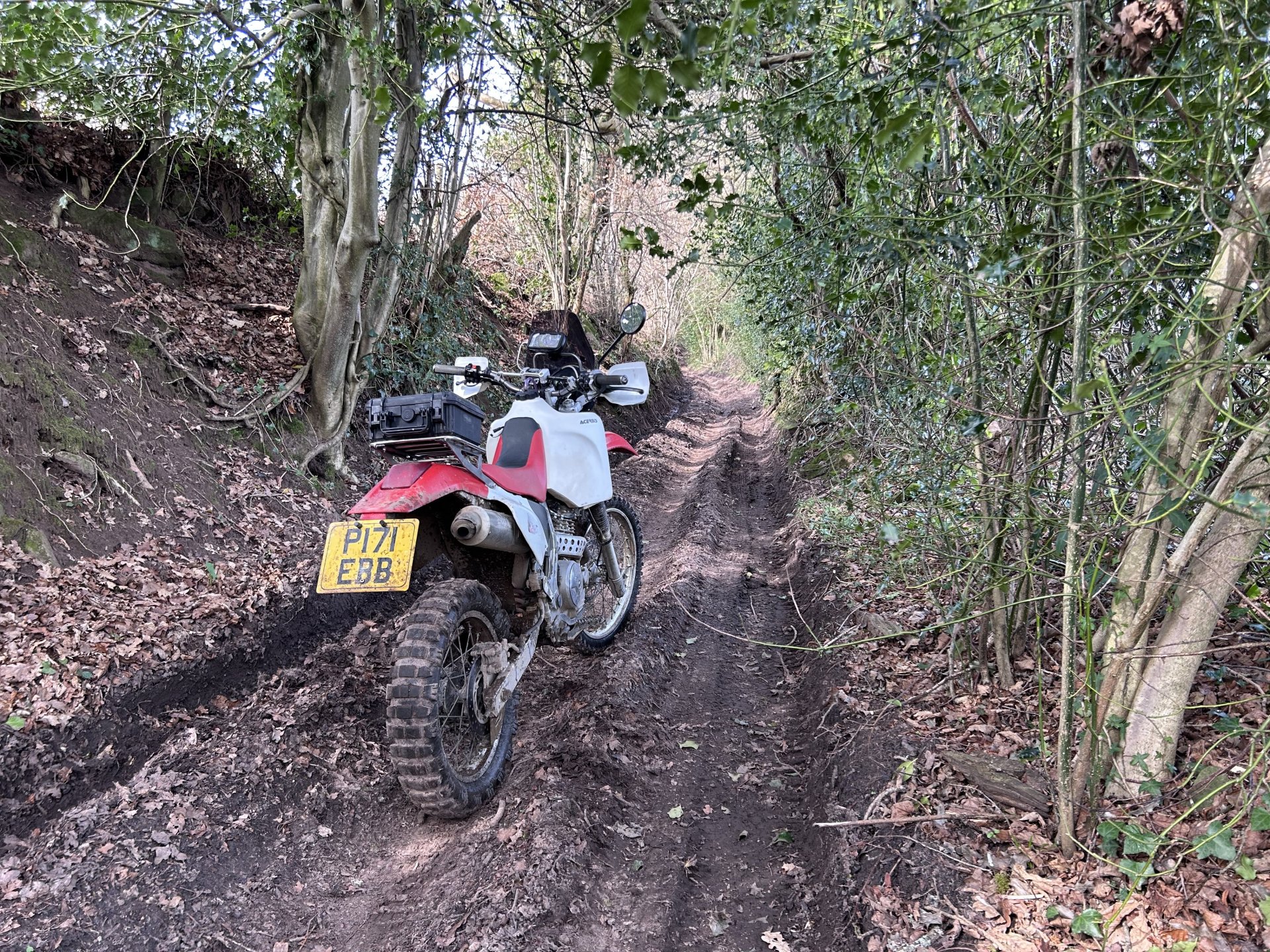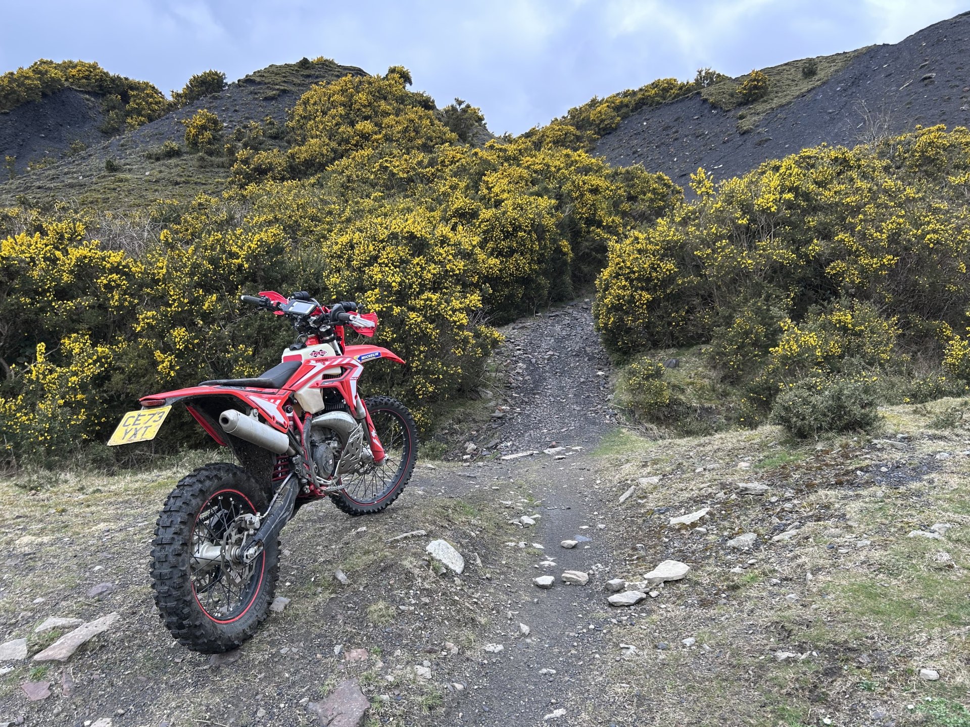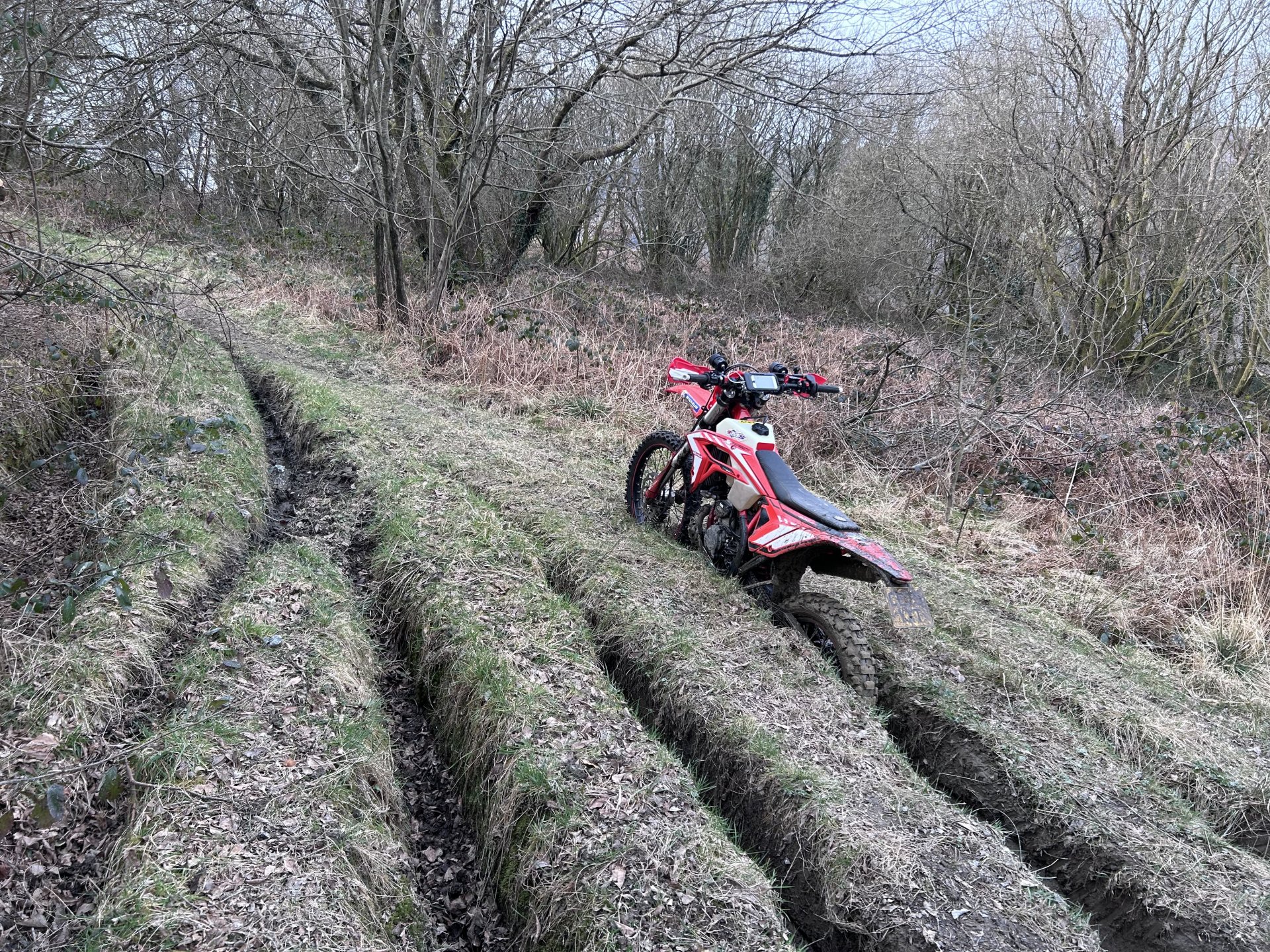 Took the Beta out this afternoon no problem with the battery after being stood since February so not sure why it was going into safe mode. Anyhow bike ran flawlessly and had a good billy no mates ride. Just a few photos of the day got to use the silky again Tried to ride the ridge between ruts but failed not too much effort to get it out though