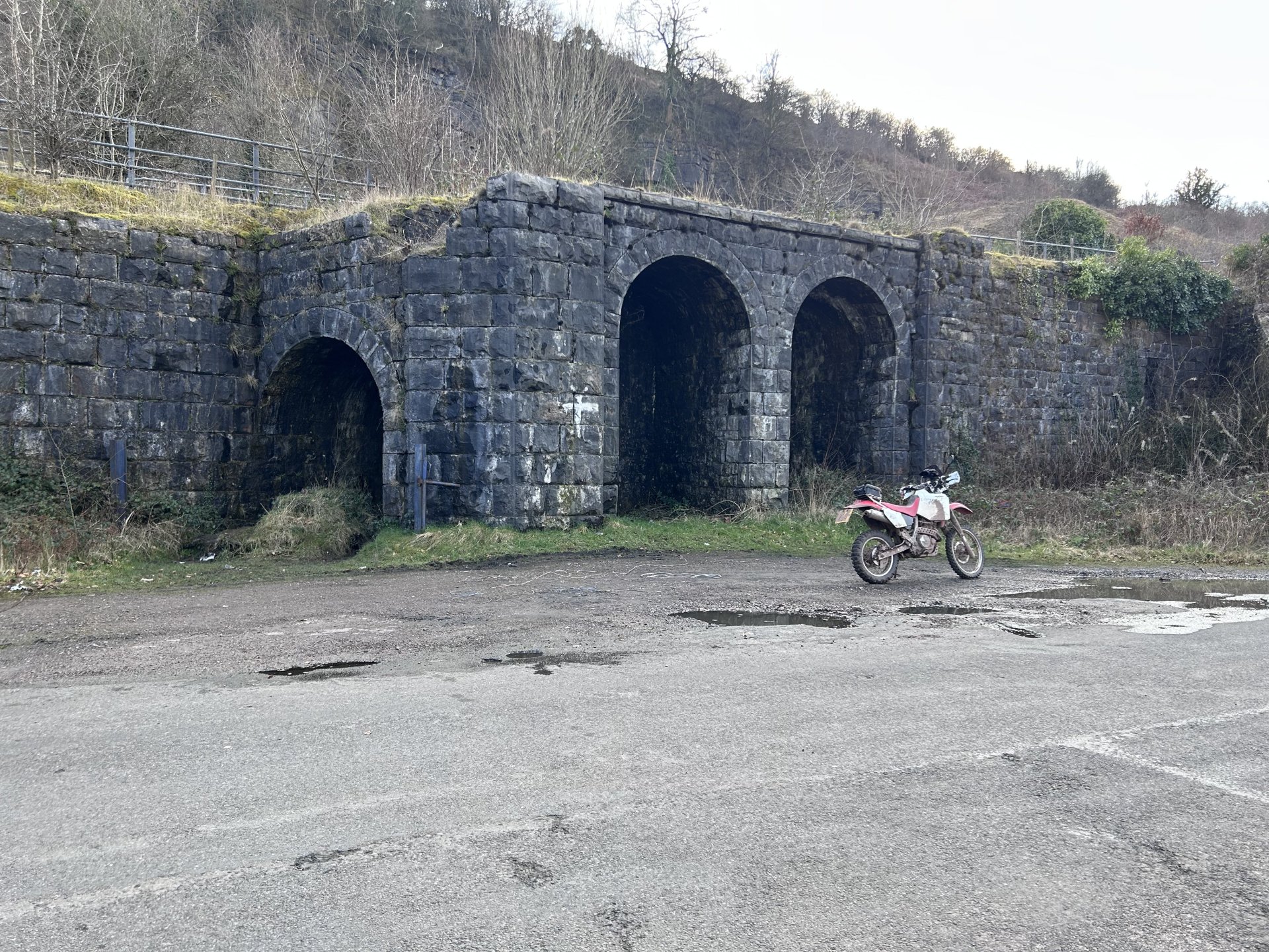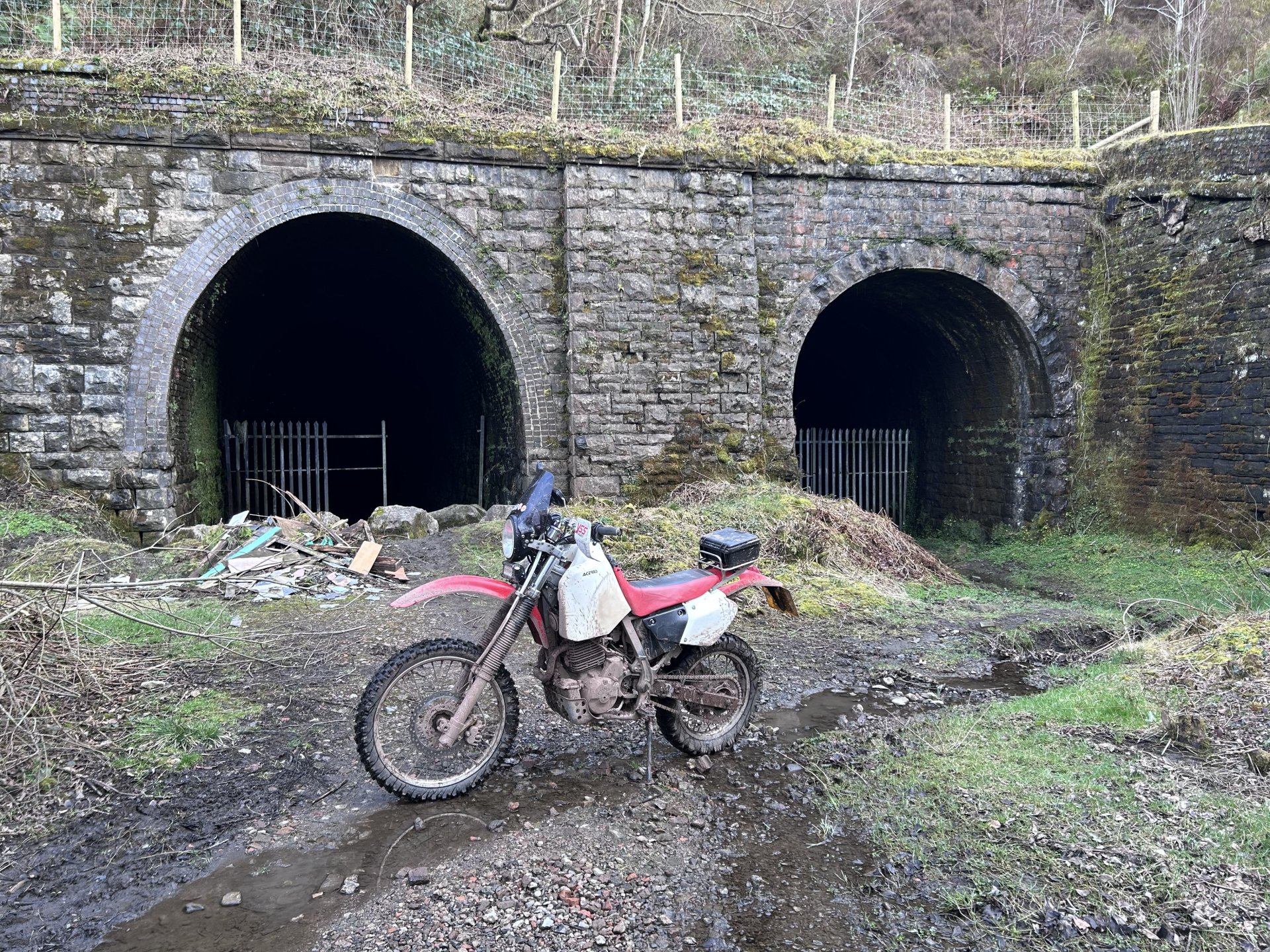 Yesterday I couldn't find a spanner i use in work, it is one of my favorites and not cheep. Last time i remember seeing it was on a job i had finished on Thursday on Barry Island. So i took the dog out to go see if it was still there this morning and a good job i did because not only was it there but the 10 flange bolts i was using it to fit were also along side it I bolted everything up and was on my way, ended up riding to Tintern and doing some dirt roads on the east side of the wye valley up to Monmouth and back to Abergavenny. I think i felt better riding the dog this time out and ended up doing about 150 miles, the bike was almost as filthy as Bonnie Blue when i got home Some photos of the Clidach railway which is now a cycle route 30 years ago i went through one of these on my old CB750 they have blocked the entrance now so couldn't get in with the bike. may go and walk it tomorrow.
