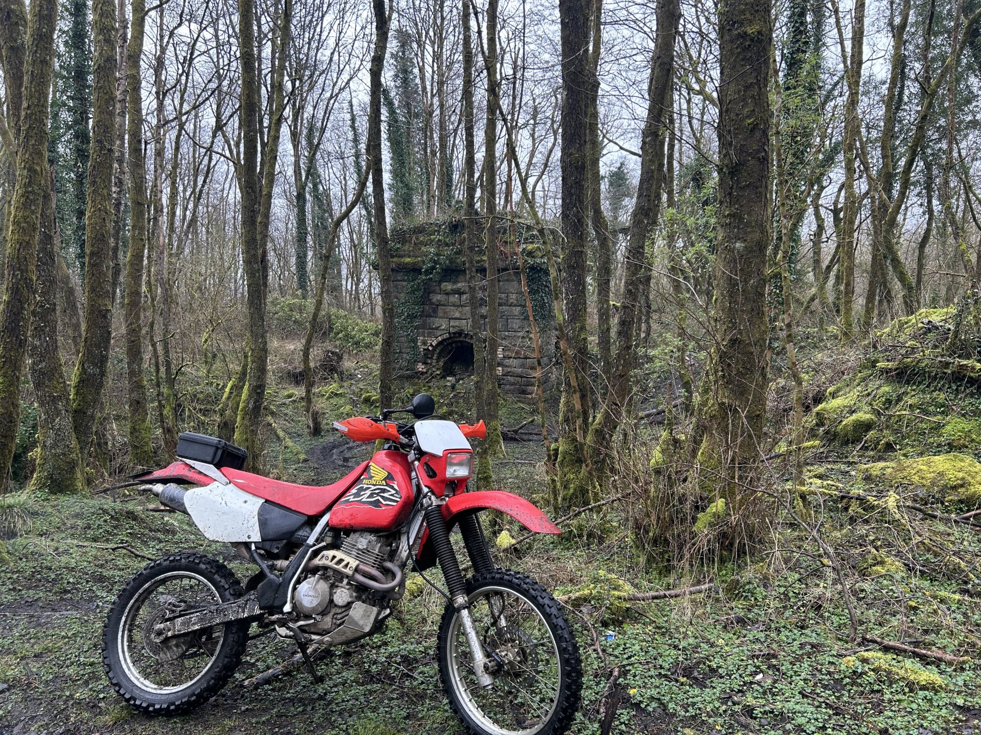 MOT is done on the XR so good for another year of it sitting in the garage lol. Bloody thing wouldn't start for me this morning almost ran out of hill getting it fired up and it wouldn't tick over for about 4 miles. I gave it a bit of a hiding going up through the Rhondda valley to the MOT station it seemed to be ok when i got there. The MOT station is proper old school with some interesting old characters hanging about there After the MOT i headed over the Rhigos mountain road to the Cynon Valley it was bloody cold and misty going over the top, I headed down the Cynon valley a few miles and then took the byway which i know as rocky road over to the Merthyr valley, that had me warmed up a bit I headed home along the Merthyr byway and thought i'd do a little exploring off the byway and discovered whats left of the old Cwm Pit,. it opened in 1845 and closed in 1910 it worked the steam coal seams which were close to the surface in this area and employed around 1000 people towards the end of it's life. After it closed it was retained as a water course until it was abandoned in 1924 Not sure what this was for This was the base of the old chimney which can be seen in all it's glory in the last photo There's some great tracks through the woods there i will be back on the Beta to explore more as they were a bit hard on the old XR's clutch, It started pissing down on the way home and was soaked through when i got in.