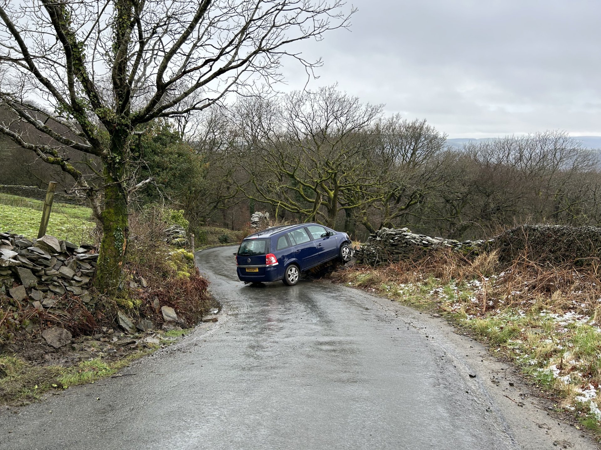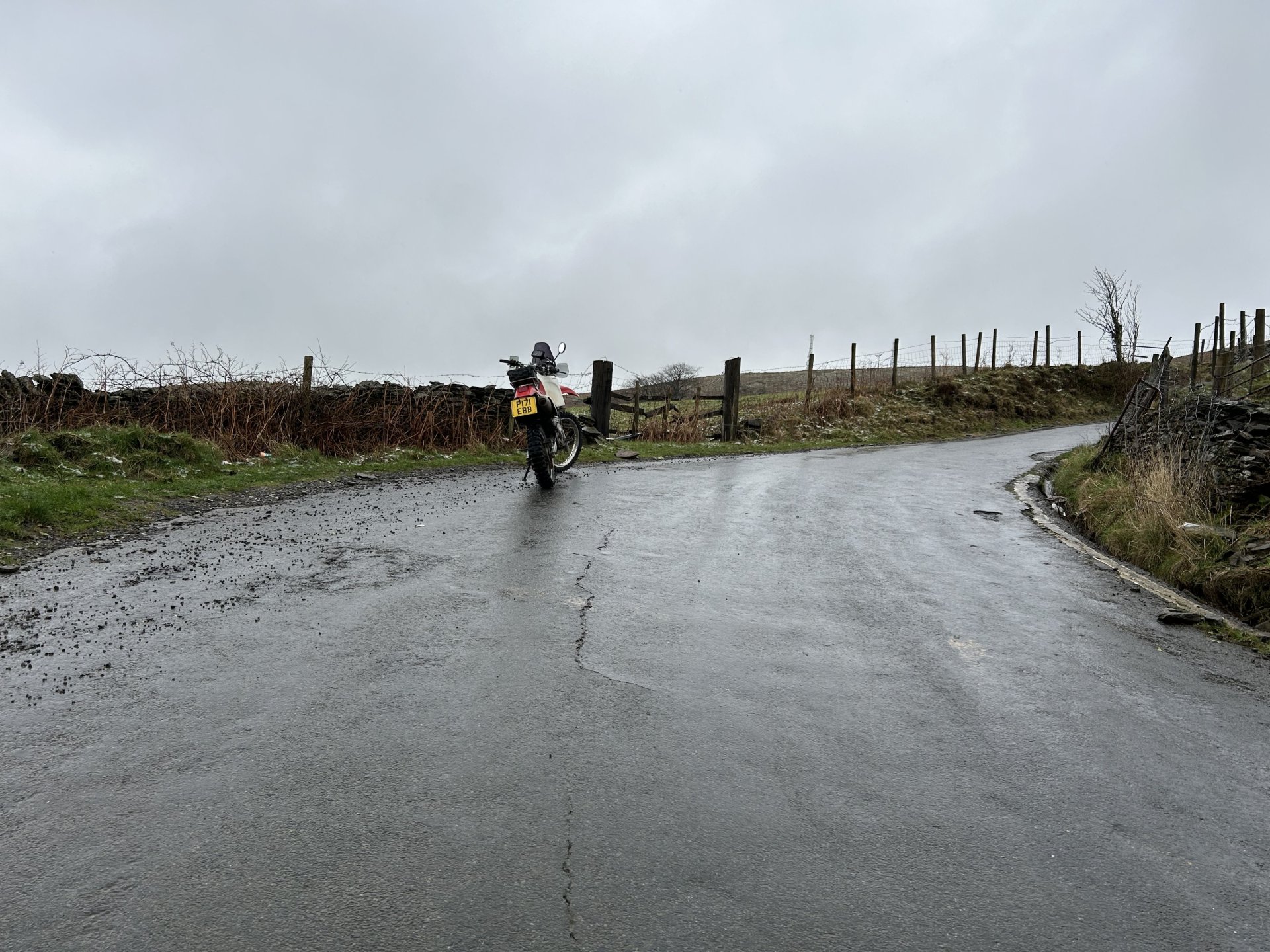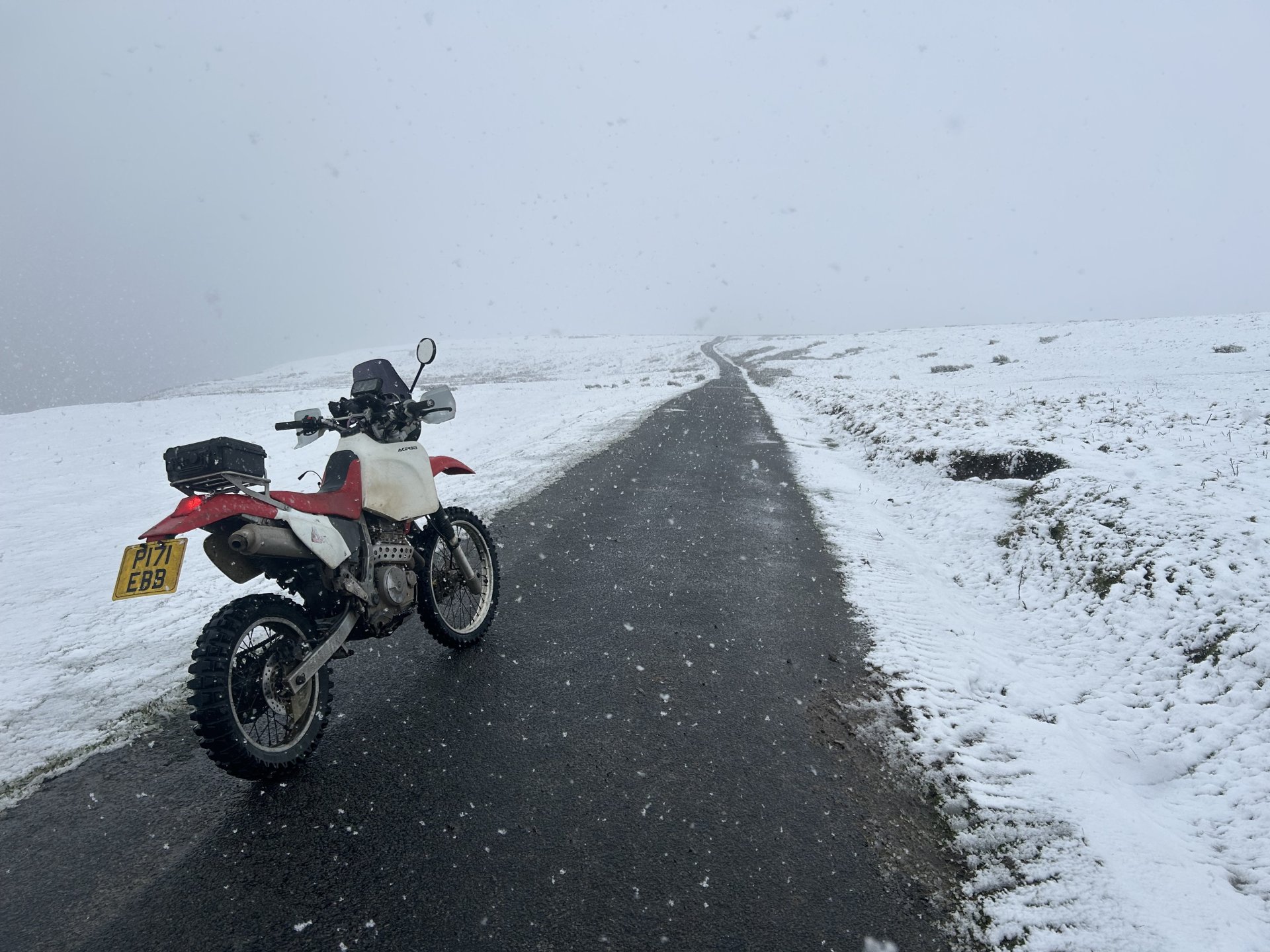 The dog was due an oil and filter change after the last ride. Decided i'd ride the ridgeways to the heads of the valleys and back to warm it up it's about a 40 mile loop and quite scenic, it was cold and just started picking to rain as i left but i had my heated jacket and winter gloves on.Headed up onto my mountain where i came across a road closed sign in the middle of the road, i just went past that with my i'll decide if the road is closed on not head on this is why it was closed Not sure if there was ice around last night this is a steep hill with S bend on it you can see where the car hit the tree on the left in the above photo and the one below is looking back up from the car Almost lost the bike in the first big puddle on the byway and had to take a big dab ended up with a soaking wet foot and only 5 minutes in. As i headed to the ridgeway that runs from Bargoed to Pontlottyn the weather got colder and wetter if that's at all possible in Wales LOL As i headed up onto the ridgeway rain turned to sleet then snow good job i wore the heated jacket as it was below freezing up here and my left foot was fecking freezing after the soaking. It was difficult to see where i was going even with the pin lock when i got to Pontlottyn i decided to head back across Merthyr ridgeway the original plan was to come back along a ridgeway further east but it looked brighter Merthyr way but it wasn't much better The horses here must be hard as nails I got home slightly damp with a frozen foot but that was the only part of me that was cold, the roads are dry here there's a hell of a difference in weather in only about 9 miles as the crow flies. Oil and filter is done as well.