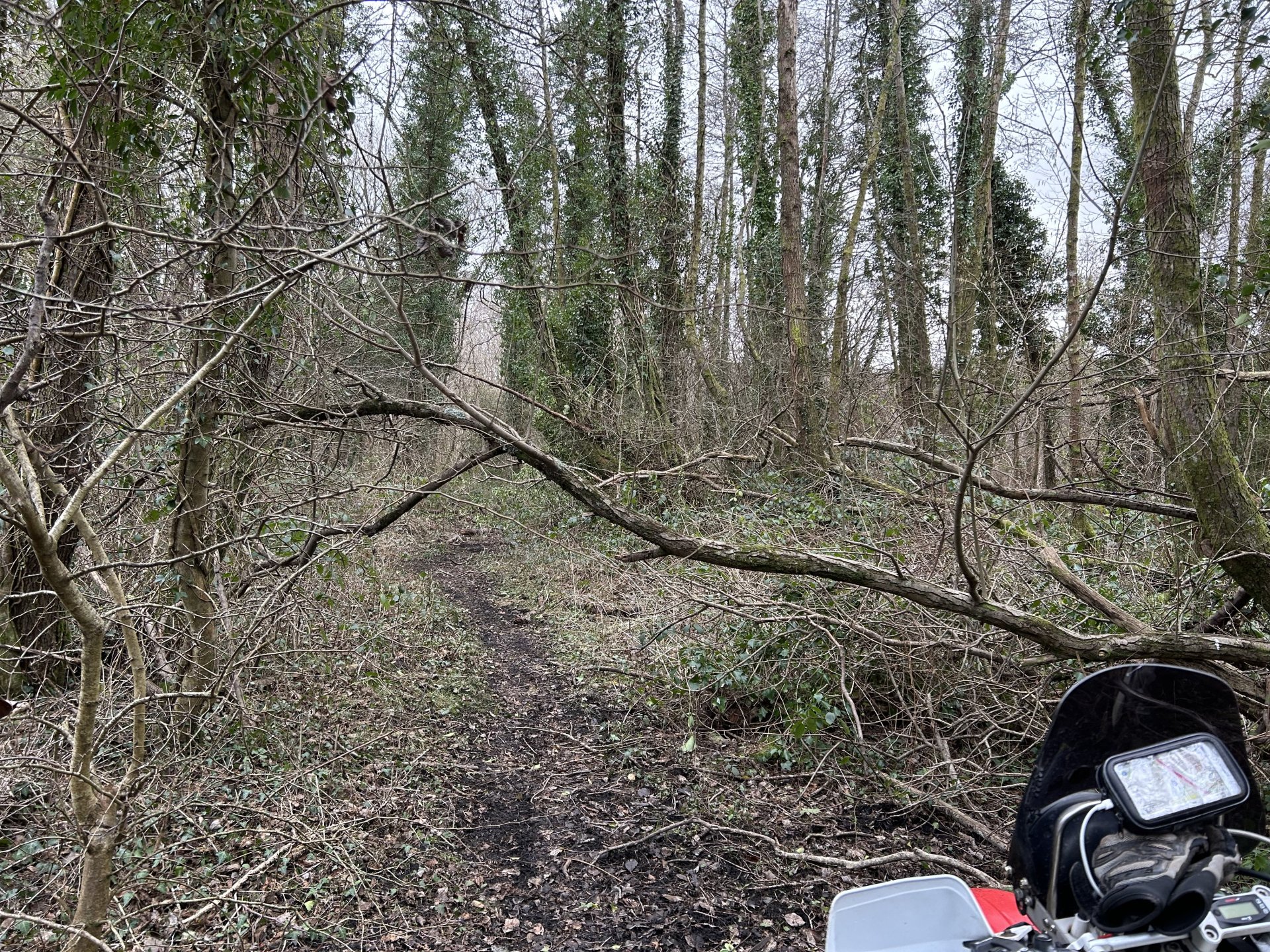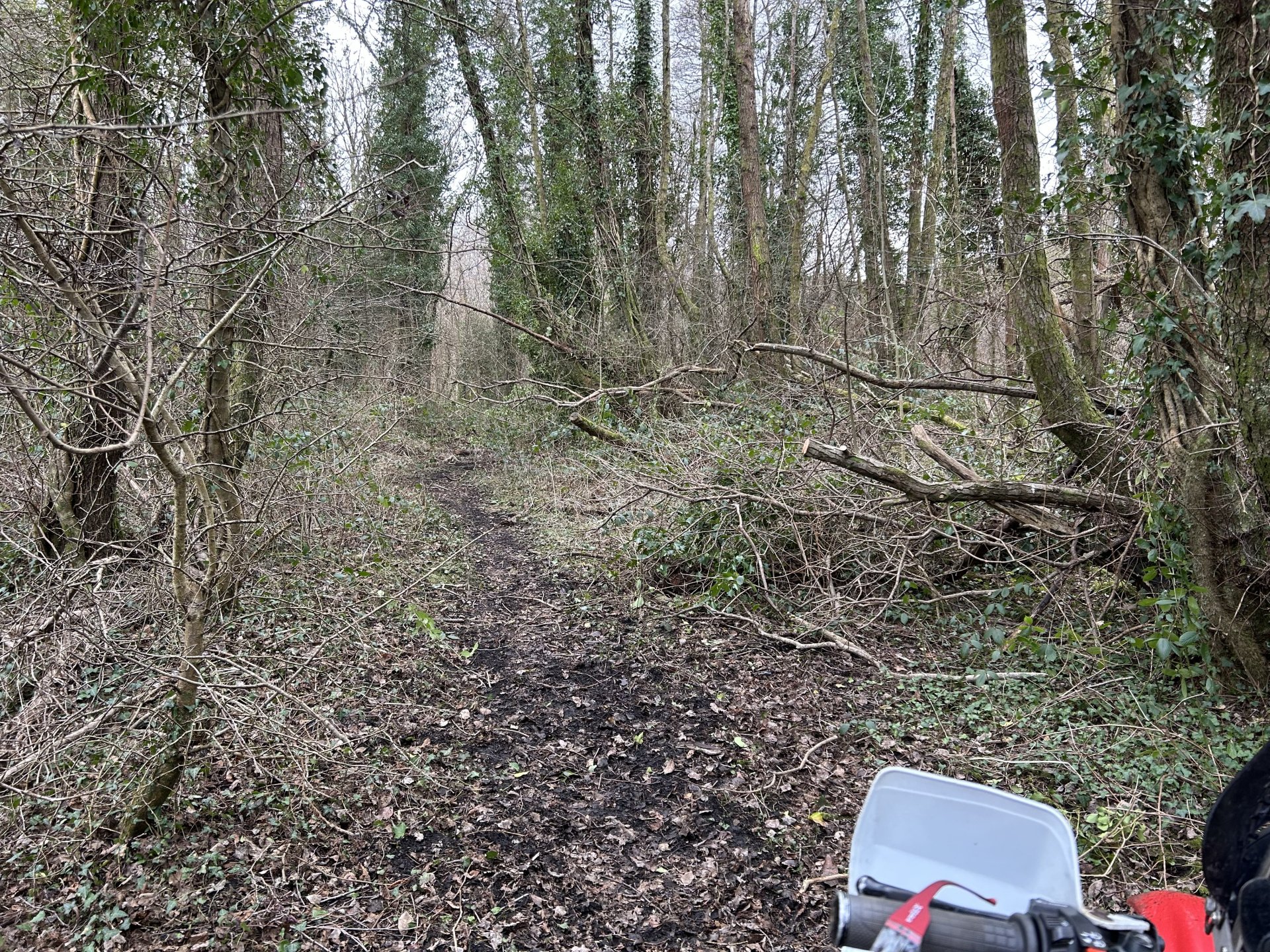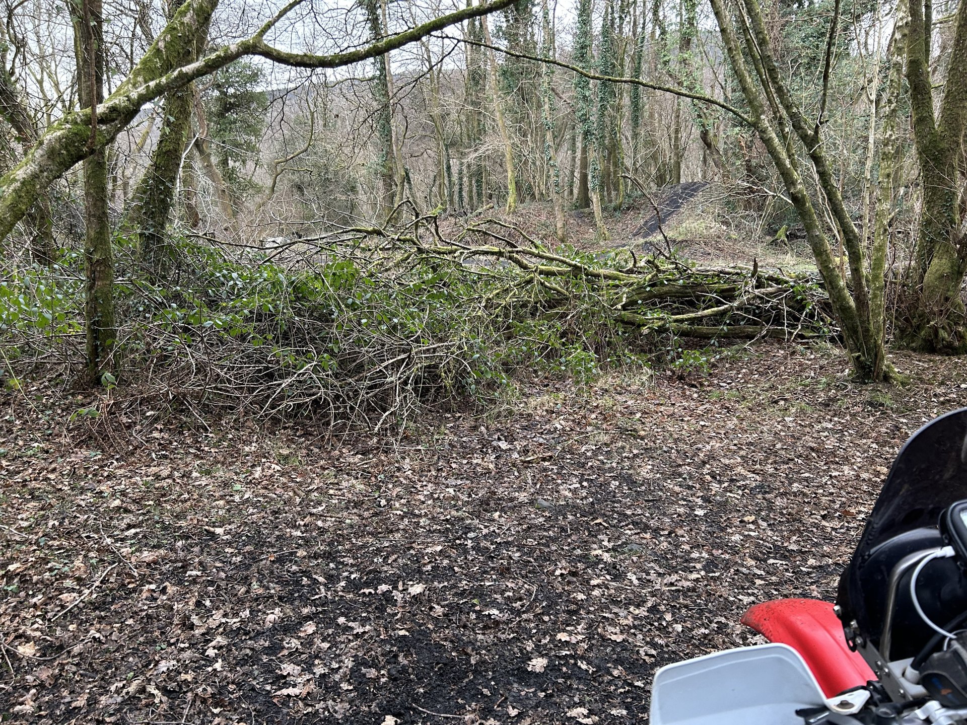 After seeing the pube grooming and groin photos in this place recently i thought i'd try to drag the place out from the gutter and post a few bike photo's. I met up with some TRF members at Greggs in Porth this morning and tagged along with them on a few local lanes and then split off from them for a gentle plod about on my own. It was damn cold with a strong wind blowing Waved goodbye here after a slice of Christmas cake and I headed up to Merthyr Took my mountain road and then decided since i was in the area to take the dog along the new to me byway and do a bit of lane maintenance. First bit of clearing work Next one was passible but meant slowing to a stop to get under it so that had to go as well Removed this bit caught me out when i rode the Beta through here as i thought it was just some brambles but when i rode into them there was a load of logs in there, looks like a few have been through since my last visit and cleared the brambles a bit, would have been hard work on the dog so had a little tidy up here as well Last bit to clear was on the path coming down on the right, there was just some small branches to clear so easy enough, the turn down here was a bit tight for the dog and i had to try and bounce the front wheel back to get around which wore me out for the climb out of the stream and i was really overheating when i got out despite the cold weather There was no way my hand saw was going to clear this so i done a U turn and found a way around the rest of the byway was clear apart from the usual gates and some ice But no problem for the mighty dog On the way home i found out what Six30 was doing down this way a few months ago doing an insurance job on one of his old bangers i think lol