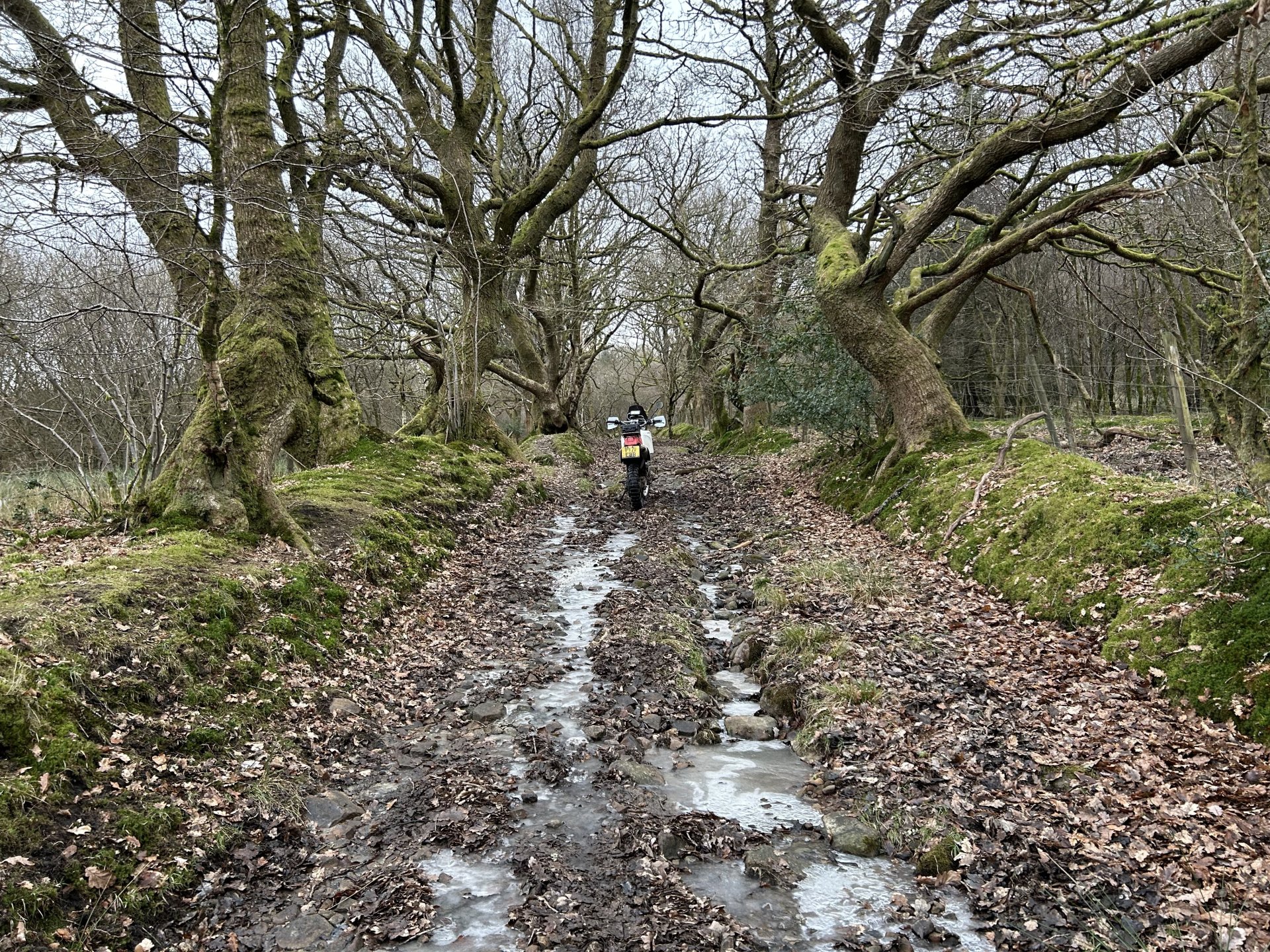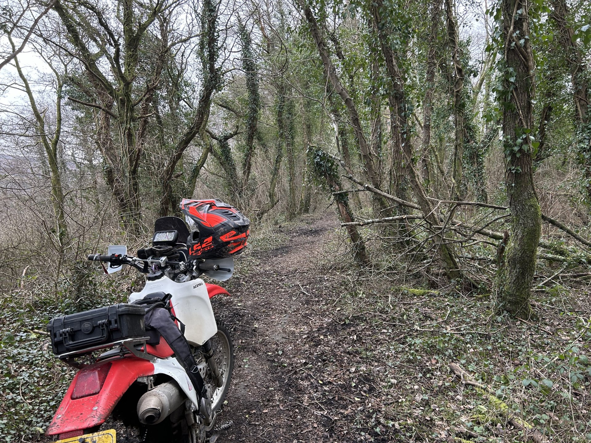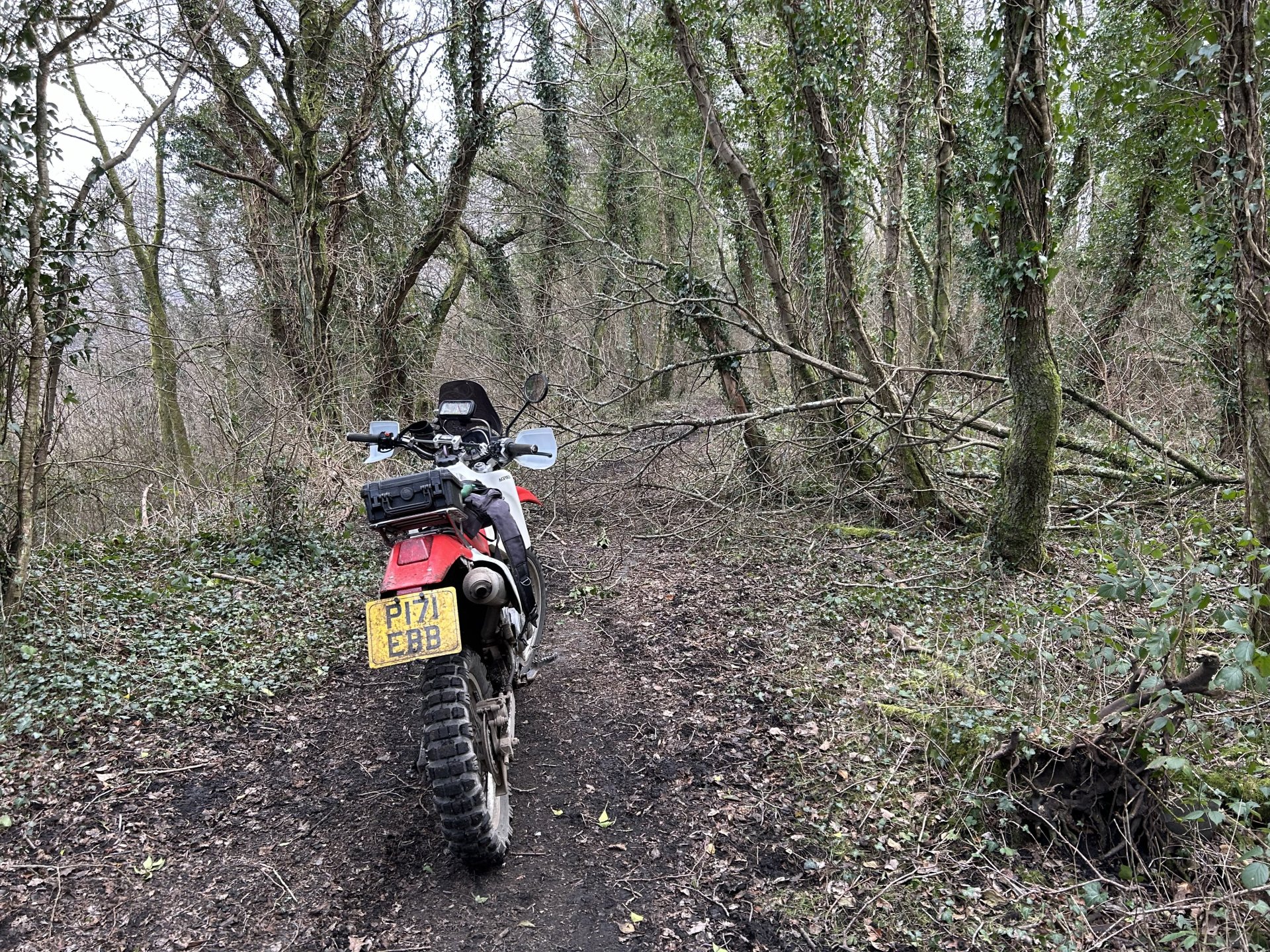 After seeing the pube grooming and groin photos in this place recently i thought i'd try to drag the place out from the gutter and post a few bike photo's. I met up with some TRF members at Greggs in Porth this morning and tagged along with them on a few local lanes and then split off from them for a gentle plod about on my own. It was damn cold with a strong wind blowing Waved goodbye here after a slice of Christmas cake and I headed up to Merthyr Took my mountain road and then decided since i was in the area to take the dog along the new to me byway and do a bit of lane maintenance. First bit of clearing work Next one was passible but meant slowing to a stop to get under it so that had to go as well Removed this bit caught me out when i rode the Beta through here as i thought it was just some brambles but when i rode into them there was a load of logs in there, looks like a few have been through since my last visit and cleared the brambles a bit, would have been hard work on the dog so had a little tidy up here as well Last bit to clear was on the path coming down on the right, there was just some small branches to clear so easy enough, the turn down here was a bit tight for the dog and i had to try and bounce the front wheel back to get around which wore me out for the climb out of the stream and i was really overheating when i got out despite the cold weather There was no way my hand saw was going to clear this so i done a U turn and found a way around the rest of the byway was clear apart from the usual gates and some ice But no problem for the mighty dog On the way home i found out what Six30 was doing down this way a few months ago doing an insurance job on one of his old bangers i think lol