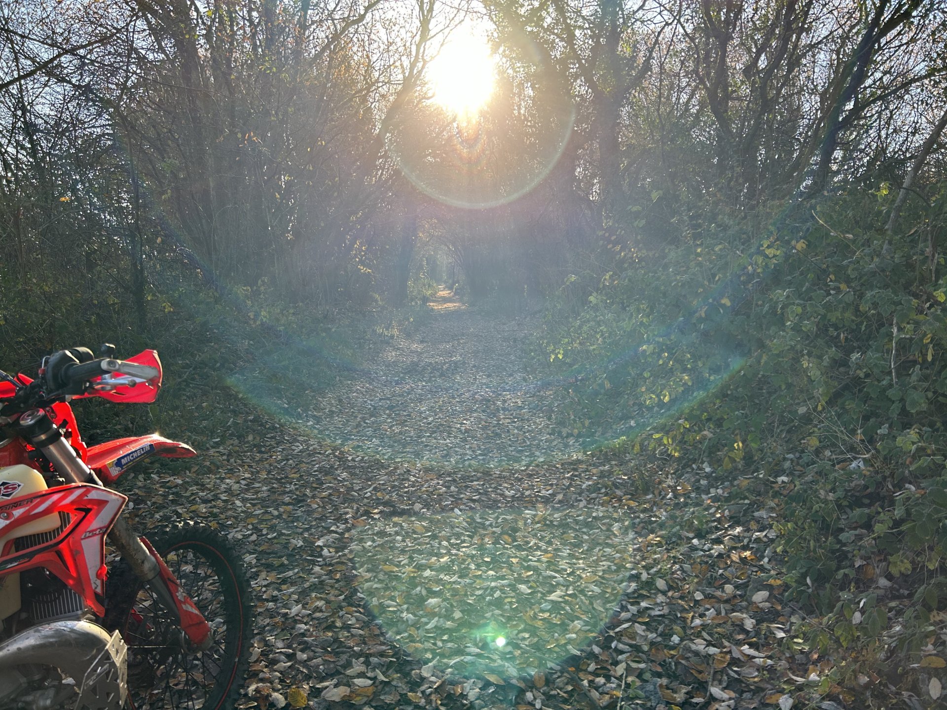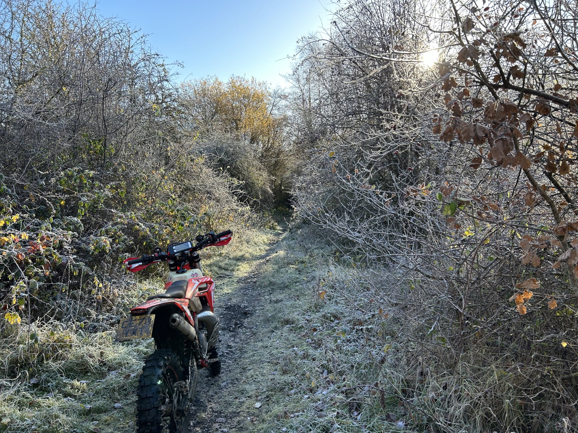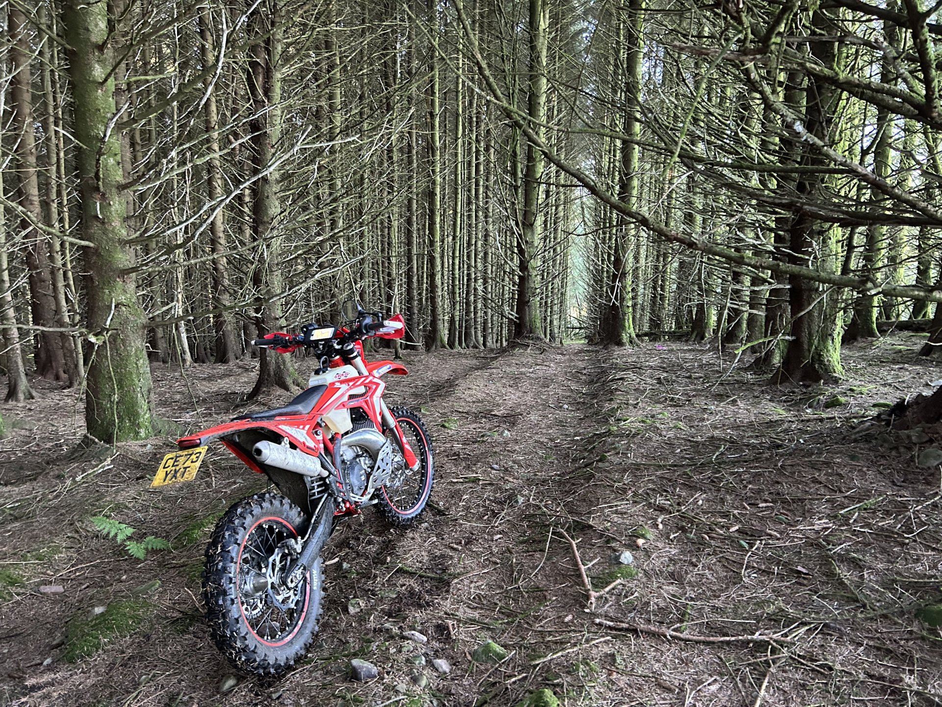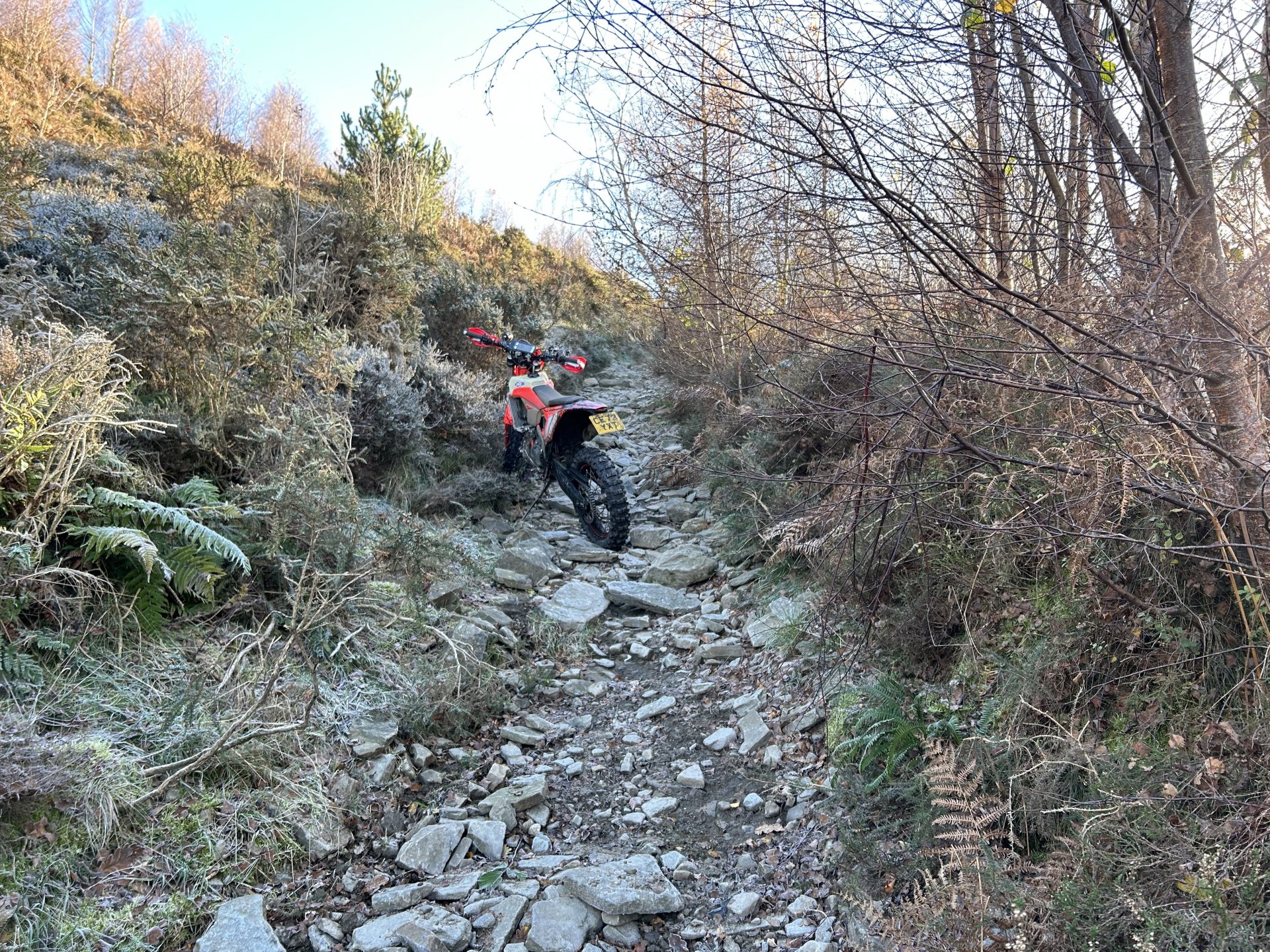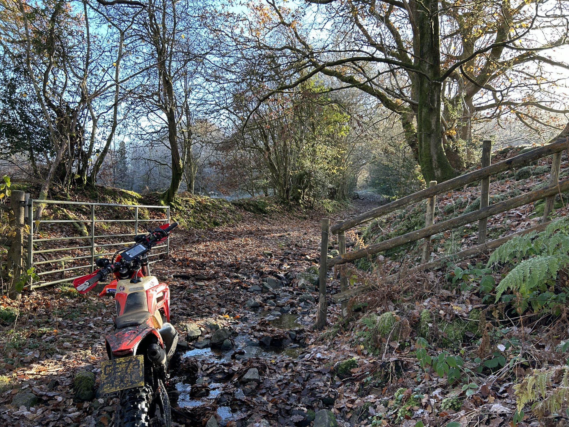 19. In this case the BOAT is a Byway Open to All Traffic, It seems that Merthyr council have been sly dogs and not put one of the byways on the map and nobody knows it exists, that was until they had a sly meeting where they have proposed closing it which meant they had to put it on their page for the public to see and luckily somebody spotted it, so the plan today was to ride up to it and ride it while it's still legal which is a bit ironic because everywhere i rode to get to it isn't legal LOL. Anywho set out around 08:00 this morning, it was quite frosty and was -1.5c but with clear blue sky's and very sunny. I had around 3 miles of road riding before i got off road and after the first mile i was already thinking about turning back to put warmer gear on the heated grips were working overtime trying to keep my hands warm inside my summer enduro gloves but i stuck it out because temperature is a different story when you hit the dirt This is the mountain where i spotted that tetradactyl before LOL This was one of the legal lanes, it felt a bit exposed to the right now that everything is dying back for the winter, the bridge carries the A470, Merthyr to the right and Cardiff to the left I ride up past my parents house and onto trials of my past heading down towards the old Cefn Glas railway tunnel as i have done many times before Further on i have to cut through the forestry to avoid a deep mud hole i didn't fancy riding though it on my own and risk getting stuck, the cold has gone now and i'm feeling quite warm After the forestry it opens out to this moorland, a stretch of land I've hated riding from the age of 16 as it's riddled with ruts hidden by the long grass its quite slow going picking your way through the ruts although I've seen good riders go through here like it's tarmac Back into the forestry and its still frosty in the shade all the water from here on is frozen typical Merthyr weather I end up taking a detour due to get around fallen trees and end up having to negotiate this, something i wasn't comfortable doing on my own and as usual it doesn't look that steep in the photos but believe me it was and i'm now steaming hot and sweaty This is the last time you see my mirror There's a steeper short drop off onto the forest road and i decide to walk the bike down to be safe but i loose my footing when the front wheel drops off the short step and i end up falling down the bank taking my mirror with me when i go back up for the bike it's also taken the Radiator Shroud off where it dragged on the bank knew i should have just ridden down doh! From here there was lots more mud and fallen trees to negotiate and eventually i got onto the Byway i was looking for. The start was nice and easy so i could catch my breath and cool down heading into the sun now An nice drop down into a gully and back up. the trail goes sharp left up to the top left corner of the photo and was similar dropping down to where i am Back on some easy stuff About halfway along i get lost, there's trails going off in all directions and i end up by the Abernant railway tunnel it goes from Merthyr to Abredare and theres rumours their going to reopen it for walking and cycling This is a photo of the inside from stolen from on line, i would have loved to have got in there again its just under a mile and a half long. I went through there on a Honda 400 superdream when i was 17 years old but it's all locked up now with a thick layer of grease on the gates to deter anyone climbing over One of the fallen trees to get over there were quite a few like this on route no real problem for the mighty Beta And this would take me into Bike Park Wales mountain bike center, the fallen leaves from ere on hid lots of slippery rock which got me all hot and sweaty again A bit more road work to get my onto Heol Cymro which is a half mile steep climb covered in loose rock made worse today by the low sun flickering through the trees blinding me From here it was a gentle ride over my mountain to the petrol station for a wash before home You can clearly not see my missing rad shroud here Another good day's riding lit the fire when i got in so it's all toastie in here and i'm now sinking a few pints of Skippy piss chilling out