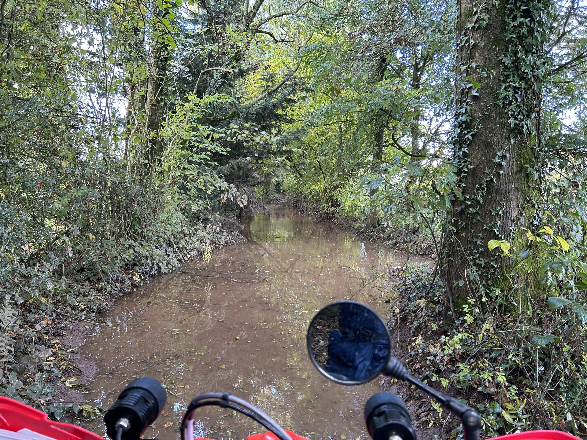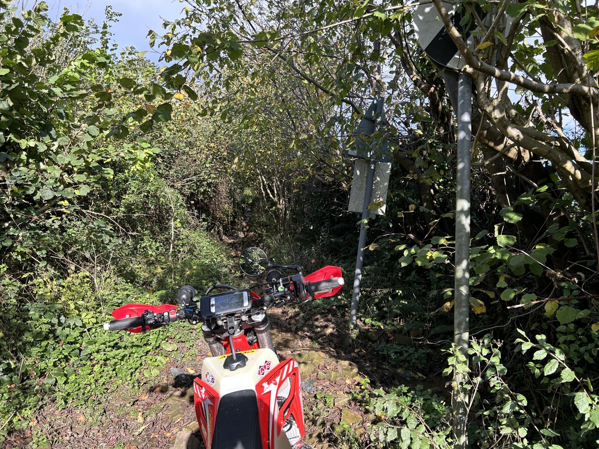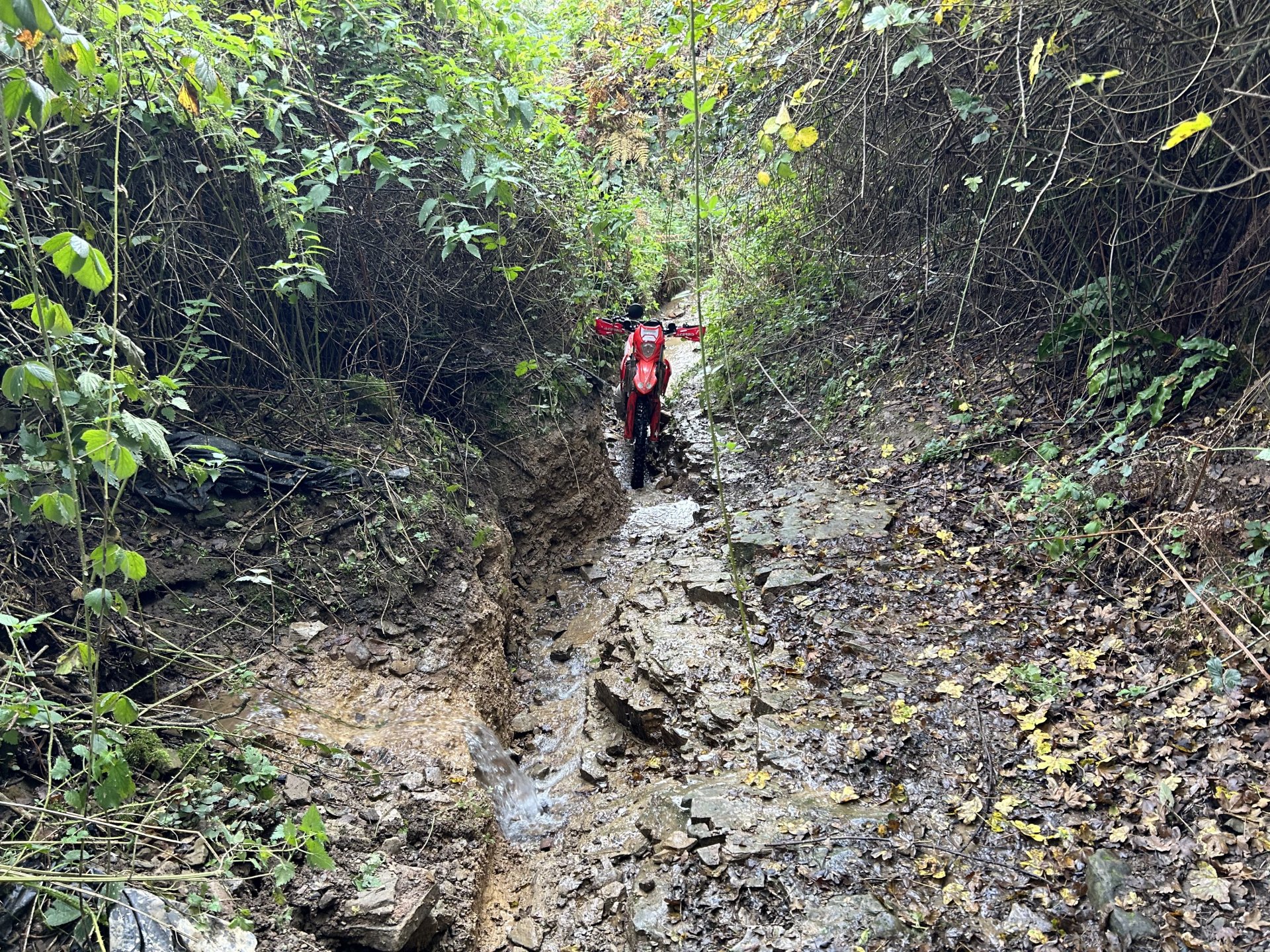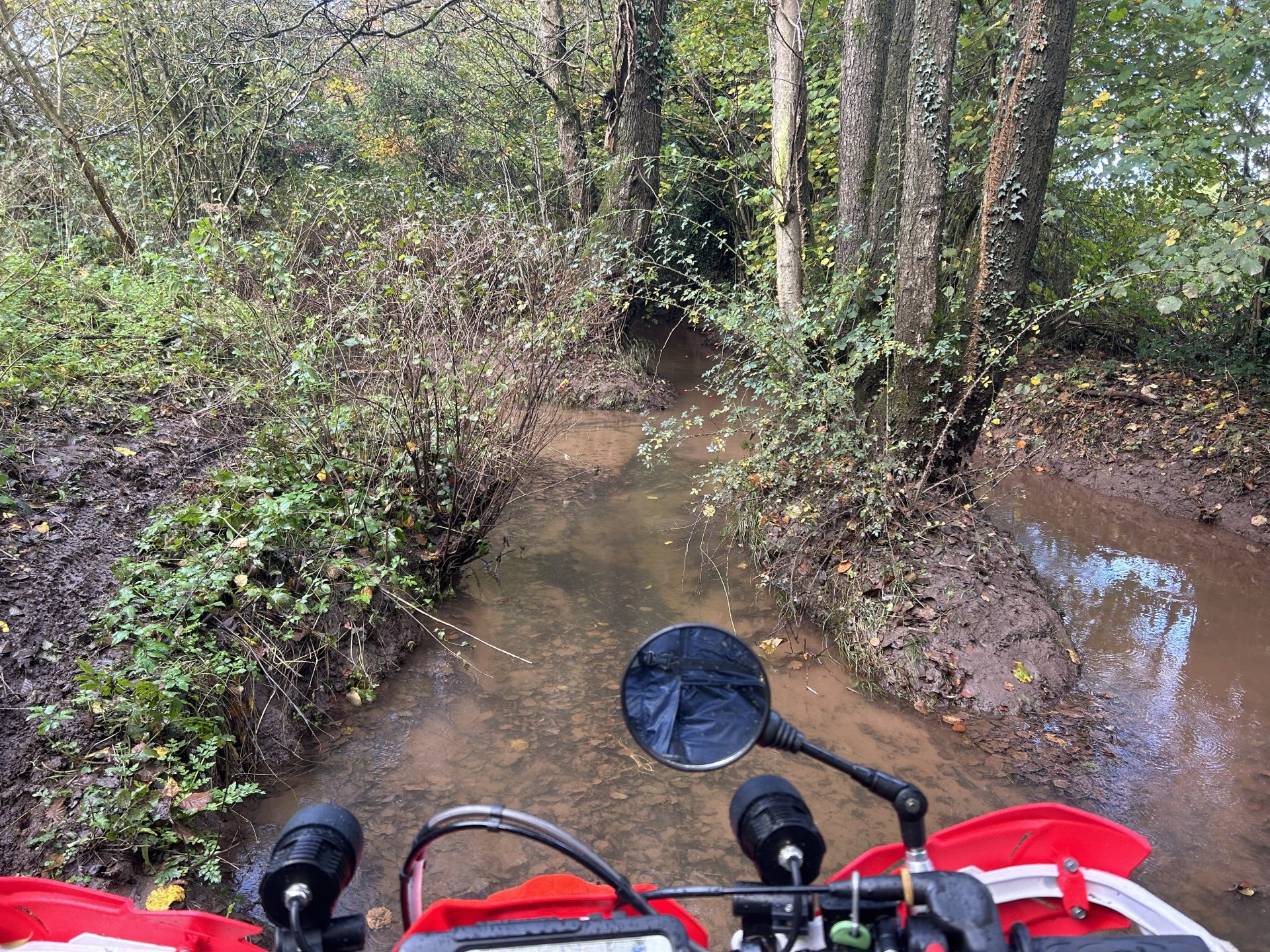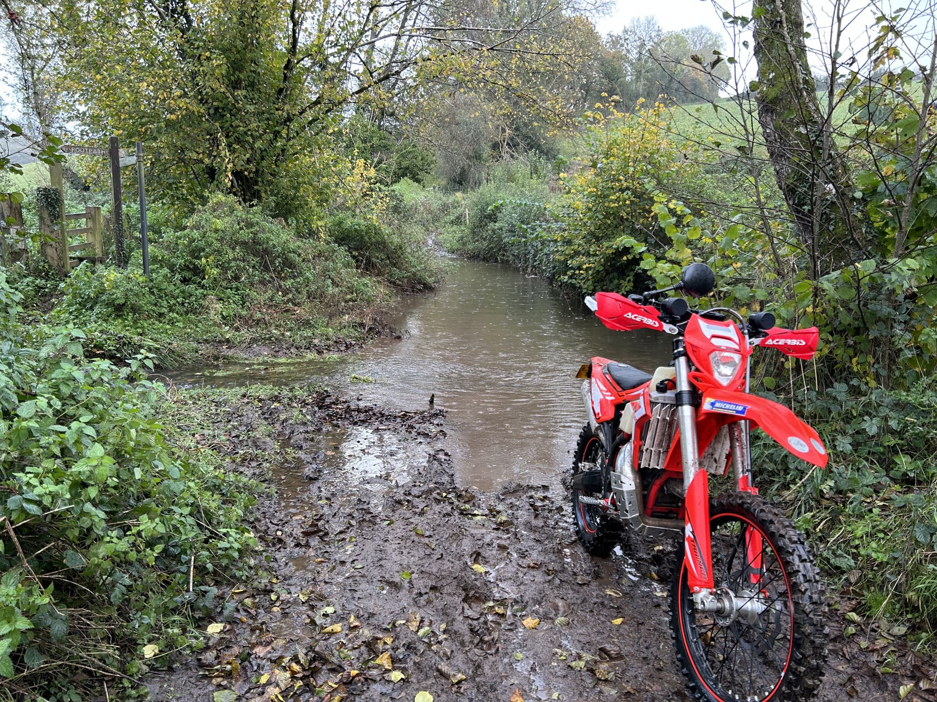 Got out today to try my new seat out ended up the same place as last weekend but with much more time to play with so rode most of the lanes in the area, spent over five hours riding and cannot believe how much difference there is between the stock seat and the seat concepts one, I got home with no monkey butt whatsoever, only regret is i should have gone for the standard height seat instead of the low one there's about 25mm difference between them, the low one is ultra comfy so the standard height one must be like an armchair. Almost every lane had water running along them took some photos of the best of them. The heavens opened in the afternoon but it didn't matter as i was on my way home and everything was soaking anyway. The low sun flickering through the trees and glaring off the water on the roads and trails made riding difficult in places as i couldn't see where i was going, Thoroughly enjoying the new bike even though its the same it rides different just seems easier to ride. Some wet photos of the day. looking down to where i am in the photo above And this is why i have such a heavy pipe guard gave it a hell of a donk on a rock, pipe would have needed blowing out it it wasn't fitted for sure This was last weekends outing but the same lane ridden today, made sure i missed the rock today