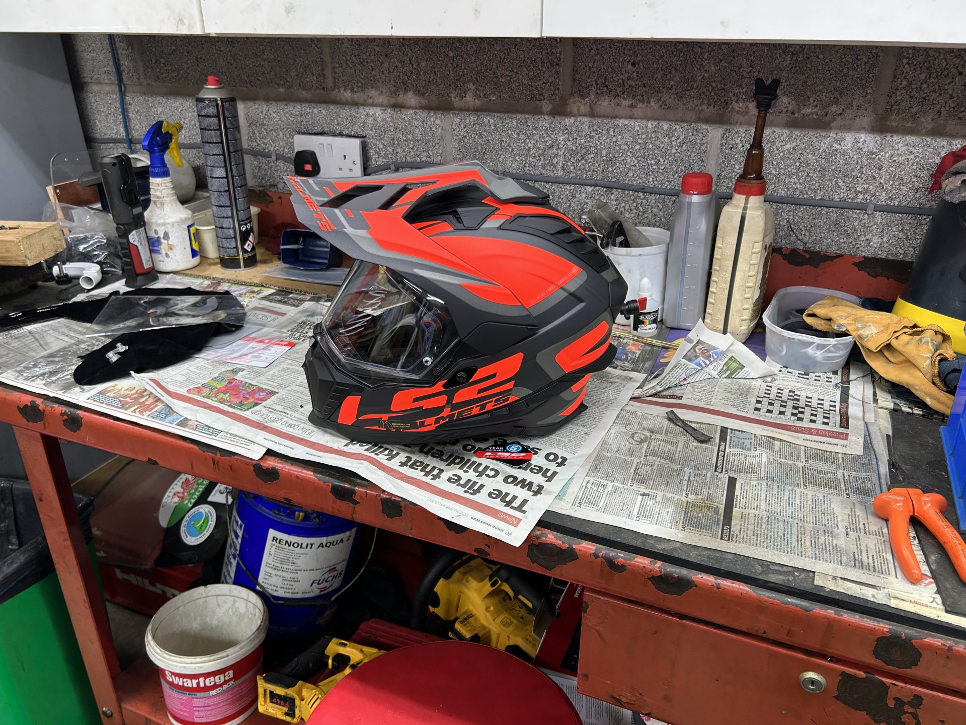 Managed to get to M&P today and picked up a new helmet in my defence it didn't look as loud in the shop lighting lol. Comes with a pin lock you have to fit yourself never understood that should come fitted also in the box was a bag that the helmet goes in and in that is another bag the the helmet goes in plus some blow up pillow thing haven't worked out what that is for yet. Feels light and really comfy will have to get out on the bike to see how it performs