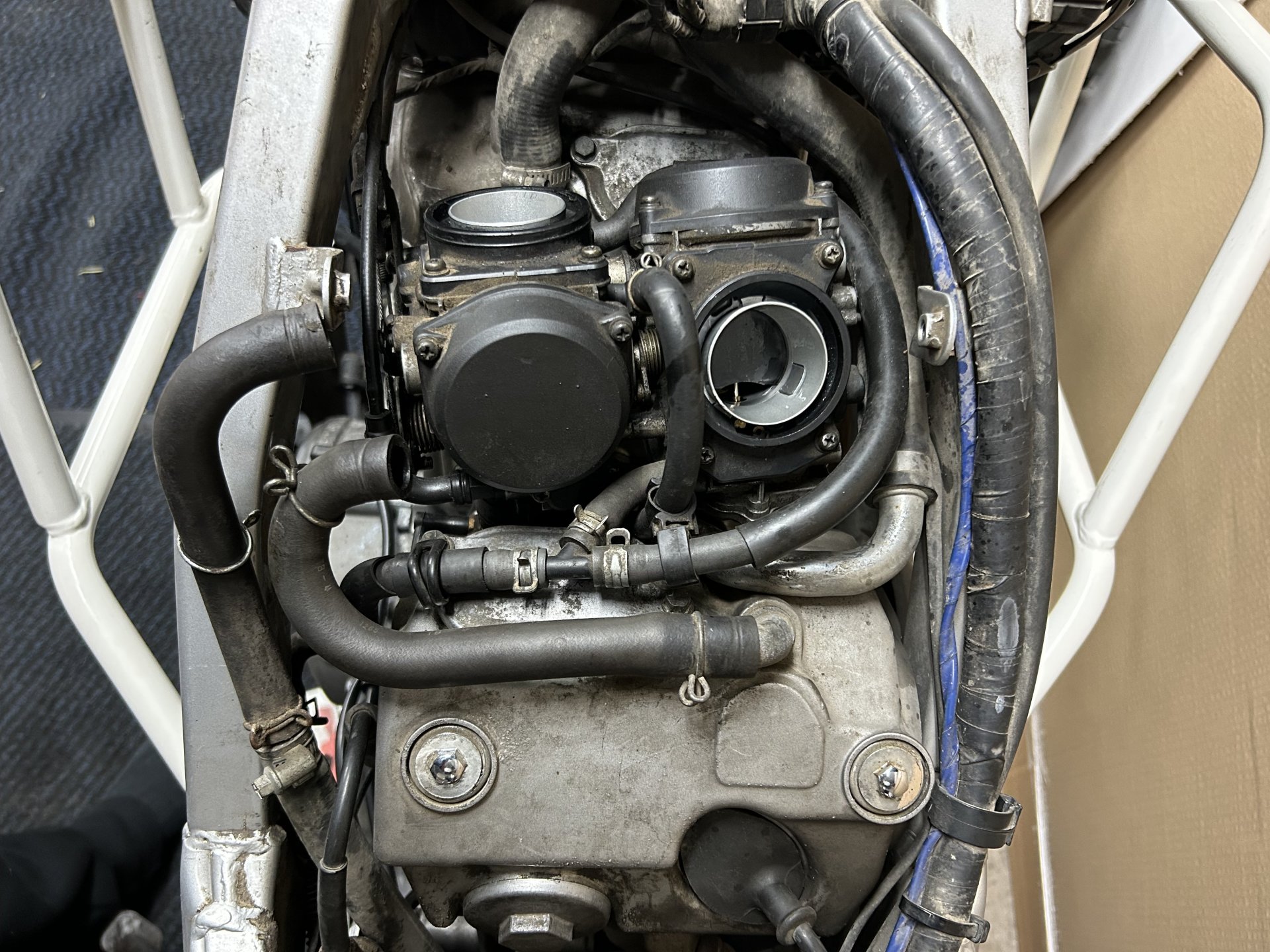Done that and its all clear, i cant remember the last time i started the bike, the MOT ran up in September last year so just been sat in the corner of the garage, going to pull the plugs on the front cylinder to check them first as that's the one that's not running, Tested with the very technical process of placing a wet finger on the header pipes to see which one doesn't hiss LOL