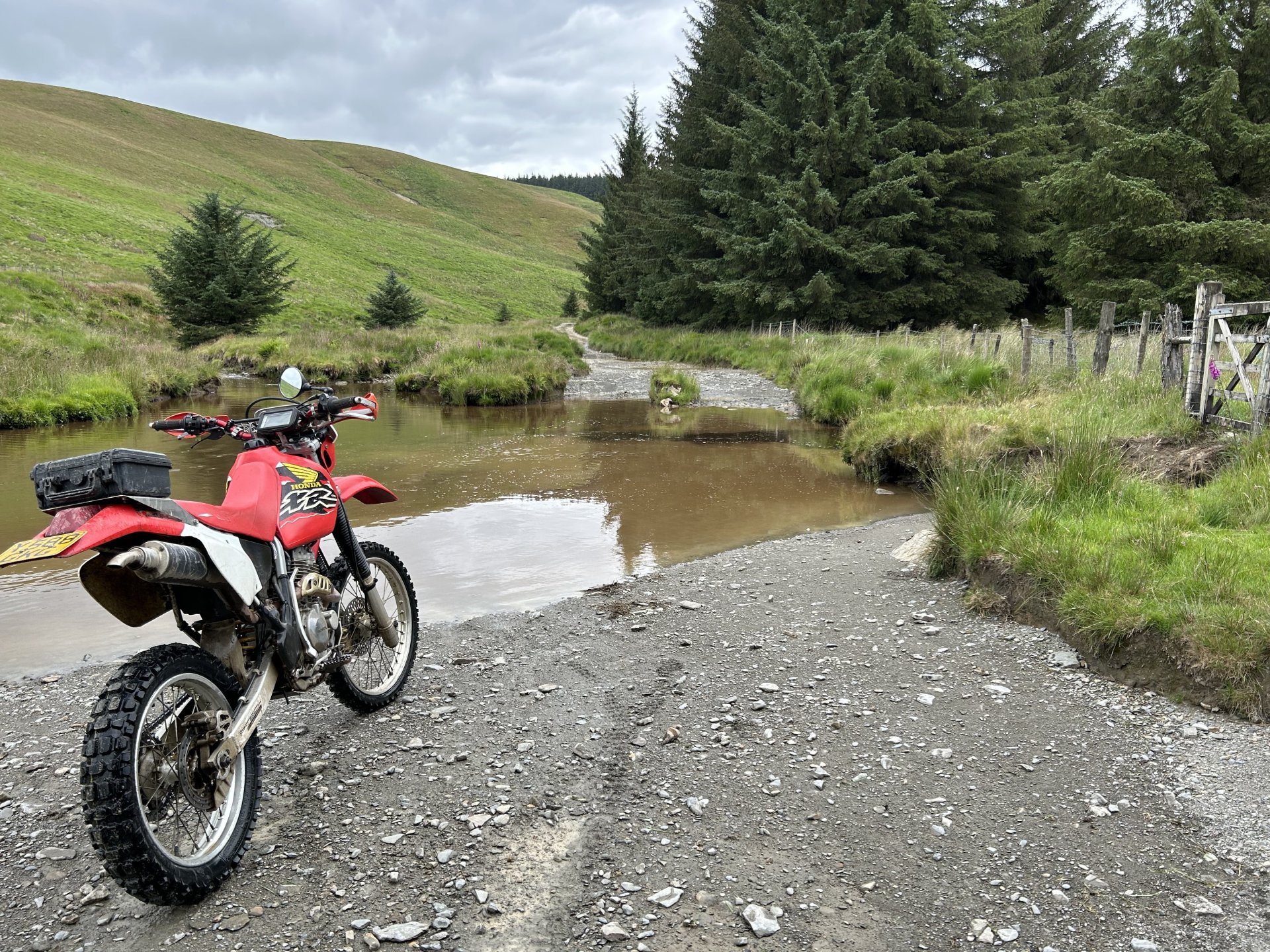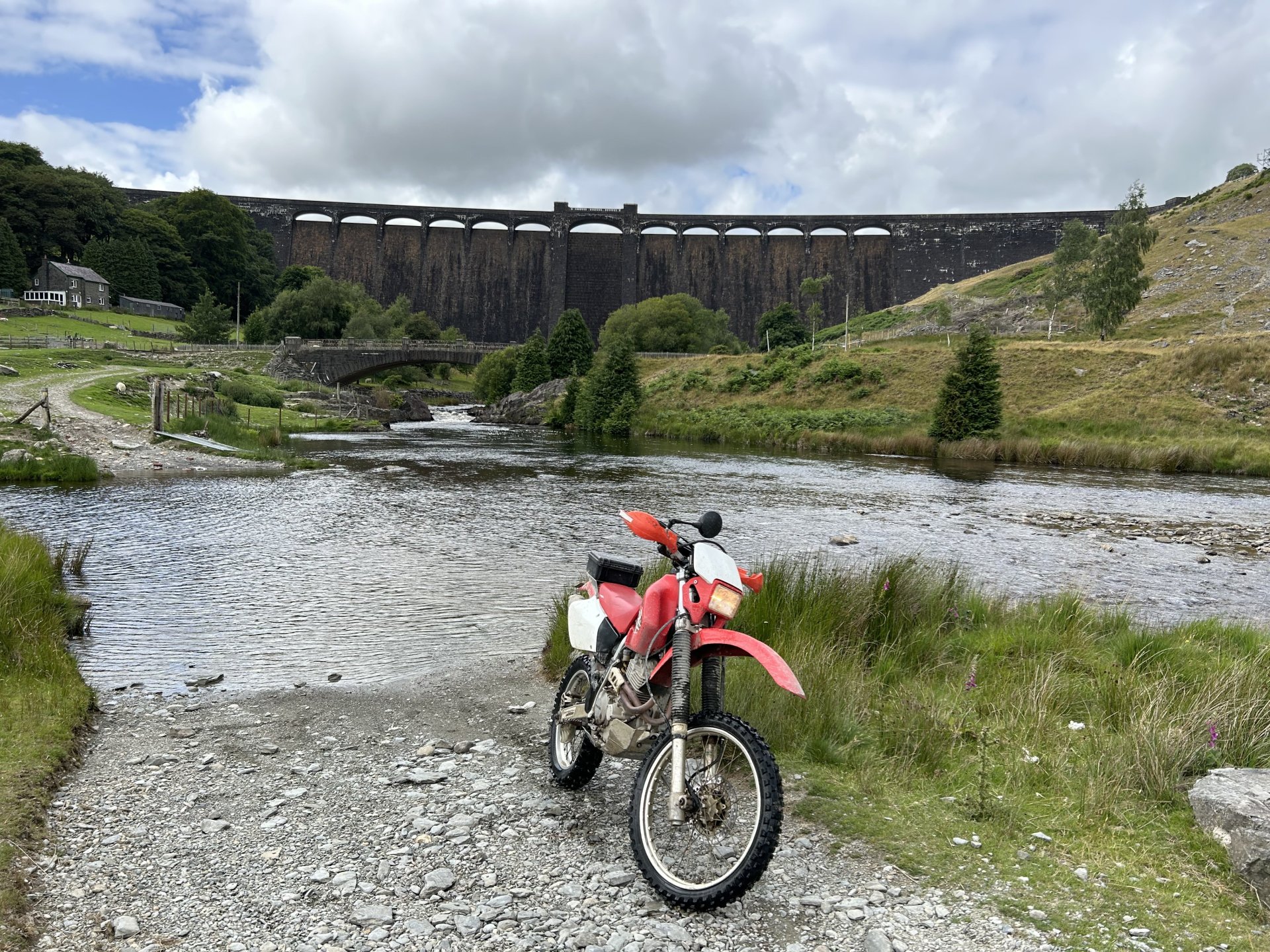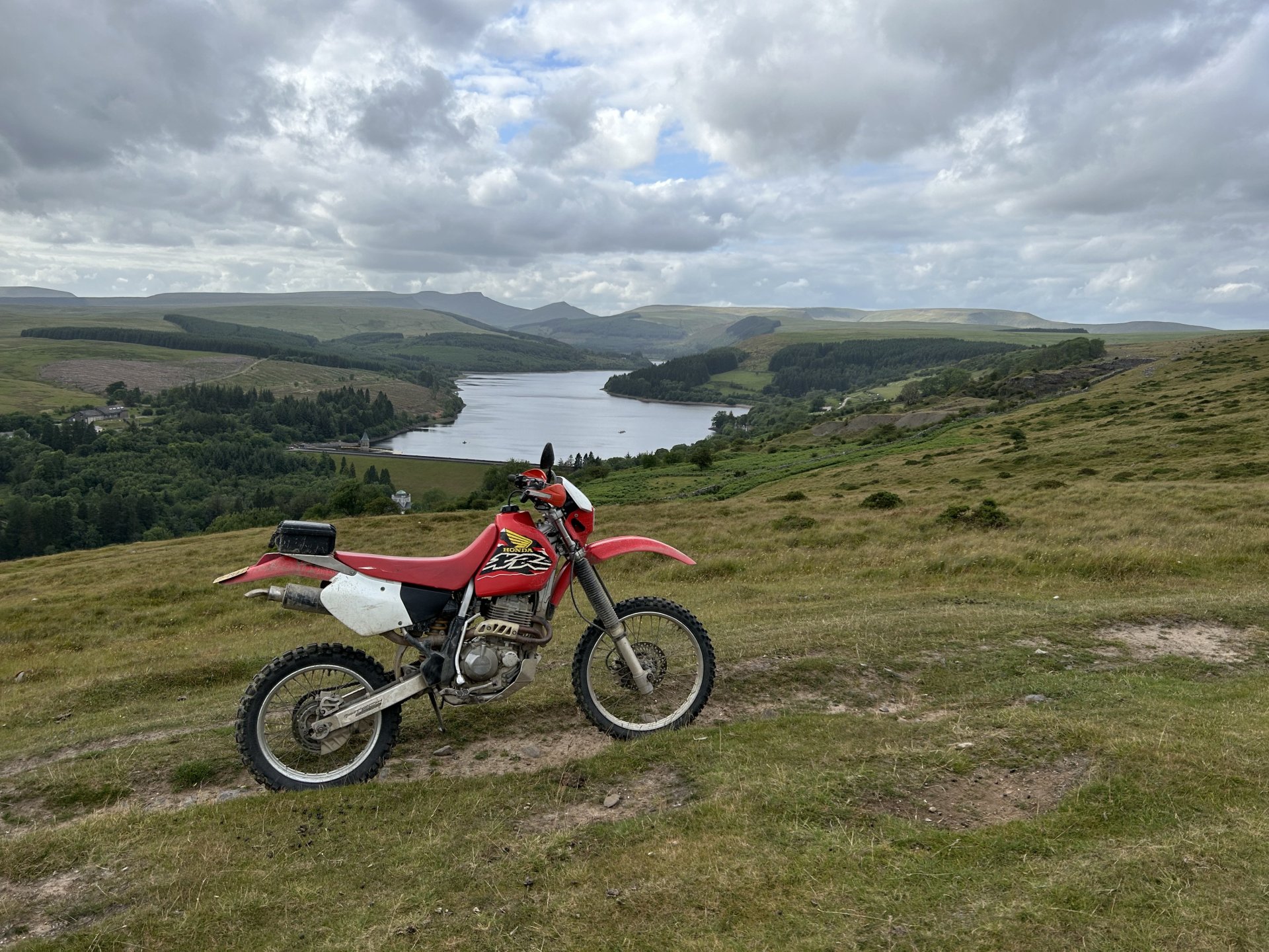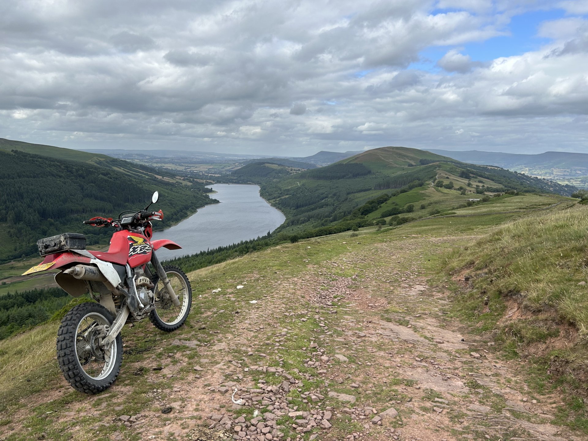 19. Decided to sod the front garden off for today and do my Annual Pilgrimage to Strata Florida Abbey instead. Most of you have seen these places before but if Pete can keep repeating himself them so can i LOL I set off a little late it was 10:30 by the time i was on my way the weather was overcast and cool, i had a nice slow road ride until i hit the road from Ystradfellte to Heol y Senny i always seem to get carried away on that road and it brought me to my first lane of the day where i ended up fixing the gate as it was off its hinges the dopey fucker who fitted it put the bottom hinge upside-down so all the weight is on the top hinge a rough fix it should go in the bodge section but it works fine don't know how long for though. While i was here i found one of those Geocache things it had a £1 coin in there a pack of fag papers and some weed so i nicked the quid and threw the weed i didn't have a pen to sign the register LOL I stopped to open a gate further on and when i turned around the bike was on the floor it had rolled off the stand and ended up breaking the rivet pin on the gear lever so this is what i had been riding with all day it was ok and it didn't make any difference to shifting and i saved the bits before they got lost there's been some tree maintenance on the next lane this was all enclosed, certainly was easier to ride not ducking under low branches Further up it's still overgrown The track goes down to the right in this photo and the easiest way to ride it is straight out into that fecking gate almost pushed my spine out my arsehole when i hit my head on it From here i headed over the firing ranges to Tirabad and through the Crychan Forest onto Cynghordy and this lane which is very wet and mucky though the winter months a lot easier to ride in the dry From here i was onto the Llyn Brianne road another one i seem to speed up on, no photos as the riding was fast and flowing and i didn't want to stop, the top end of Llyn Brianne brings you to the start of Strata Florida in the background is the road to Tregaron another great road When i got back to the bike i spotted a flat fox poor fecker Onto the baptism and there's plenty of water for it the river crossings were straight forward enough it was the puddles that would catch you out when i rode through two of them i knew they were deep because the bike went quiet as i rode though At the furthest point from home here just past Llyn Teifi and onto Claerwen Res Top end of Claerwen Res this kind of track is where the XR excels it is so nice riding it along here. Looking over the dam wall i'm heading for the track on the right of the river But there's another river to cross first i played it safe and swept around to the right straight through almost had me in last time A bit further along after Bobs step A long road ride from here to Talybont on Usk where i headed home over to Trefil and across to Merthyr Talybont Res i'm riding the other way just turned the bike around to take the photo same on the Pontsticill res photo Pontsticill res From here it was over my mountain and home, it was a ride I've needed for a while spent most of it on the pegs because my arse was sore. It was a 172 mile loop. I'm in the middle of changing the oil and filter now ready for the next ride.