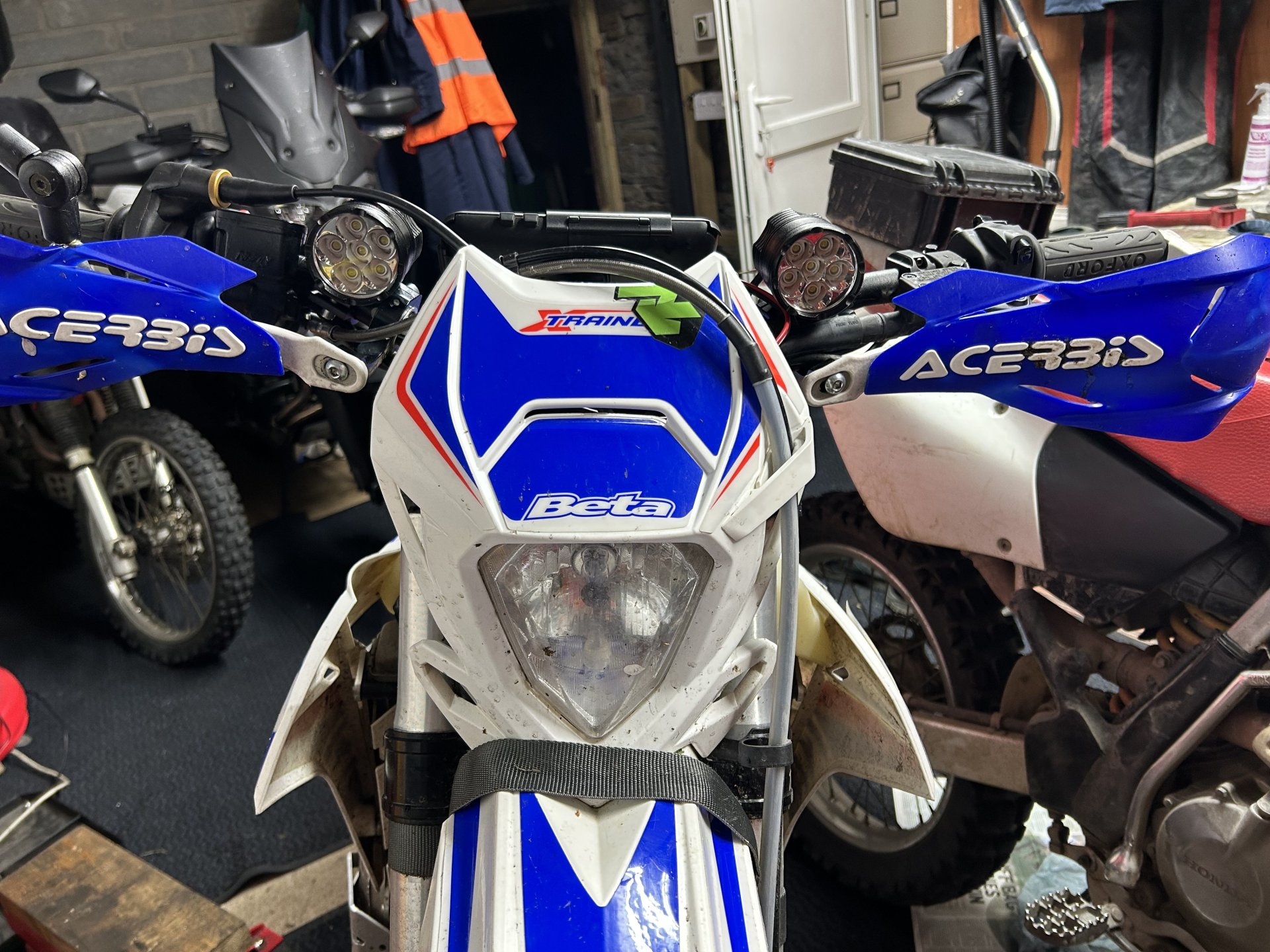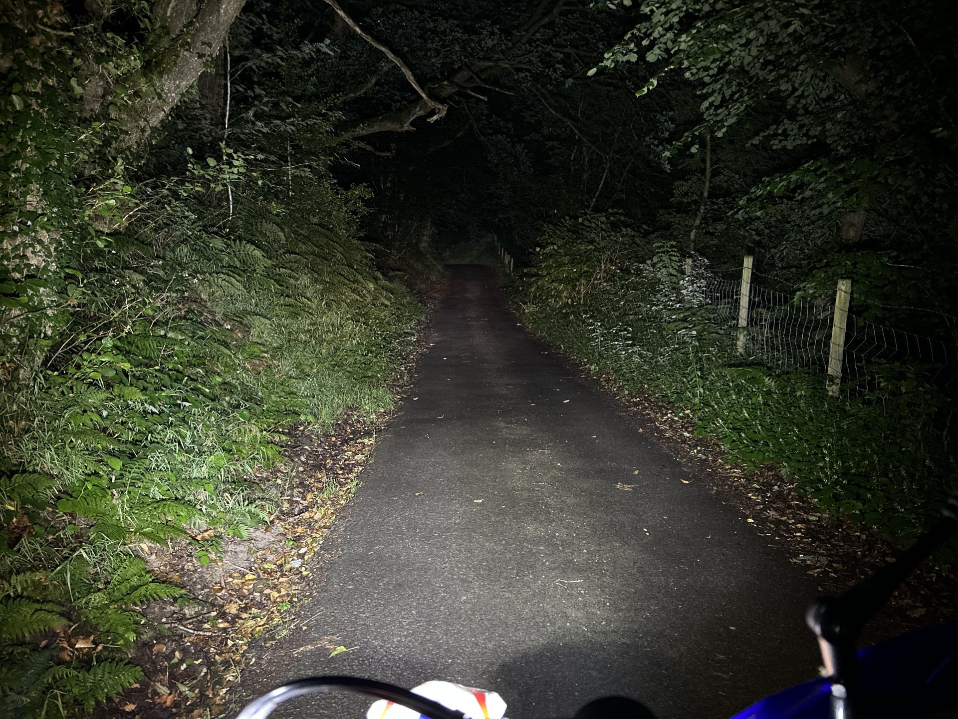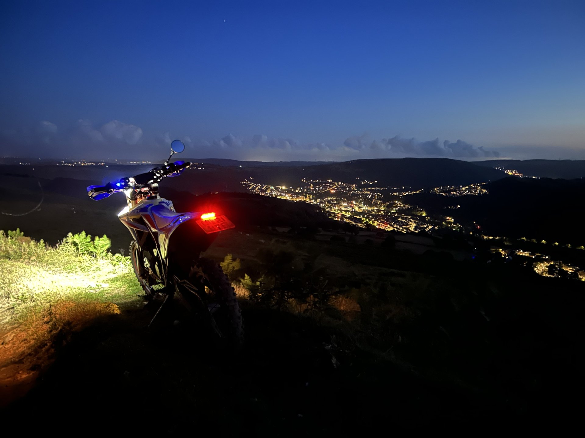 1. Been fiddling with the Beta tonight, after my tunnel outing i thought i'd have a go at fitting some additional lights to improve the candle fitted as standard, picked these up from eBay for 27 quid wanted something small as the bikes output is low Nipped out for a spin and have to say i'm impressed This is the stock light the camera makes everything look better than it is in real life this is a warm yellowish light not white as it looks here This is with the LED's on with the standard light as well I had a rip over the mountain and i could see perfectly and the voltage stayed above 14 volts so looks like they will be ok for longer rides in the dark And this is probably why the cars were flashing me LOL Got to wire them in properly now as i only lashed them in to test them out, the dash is a bit crowded so might have to move things about to fit the switch or might have them come on with the main beam via a relay haven't decided yet. They are good for the speeds that i do on the beta but on a road bike you would outride them as they don't project very far but very happy with them roll on the winter LOL
