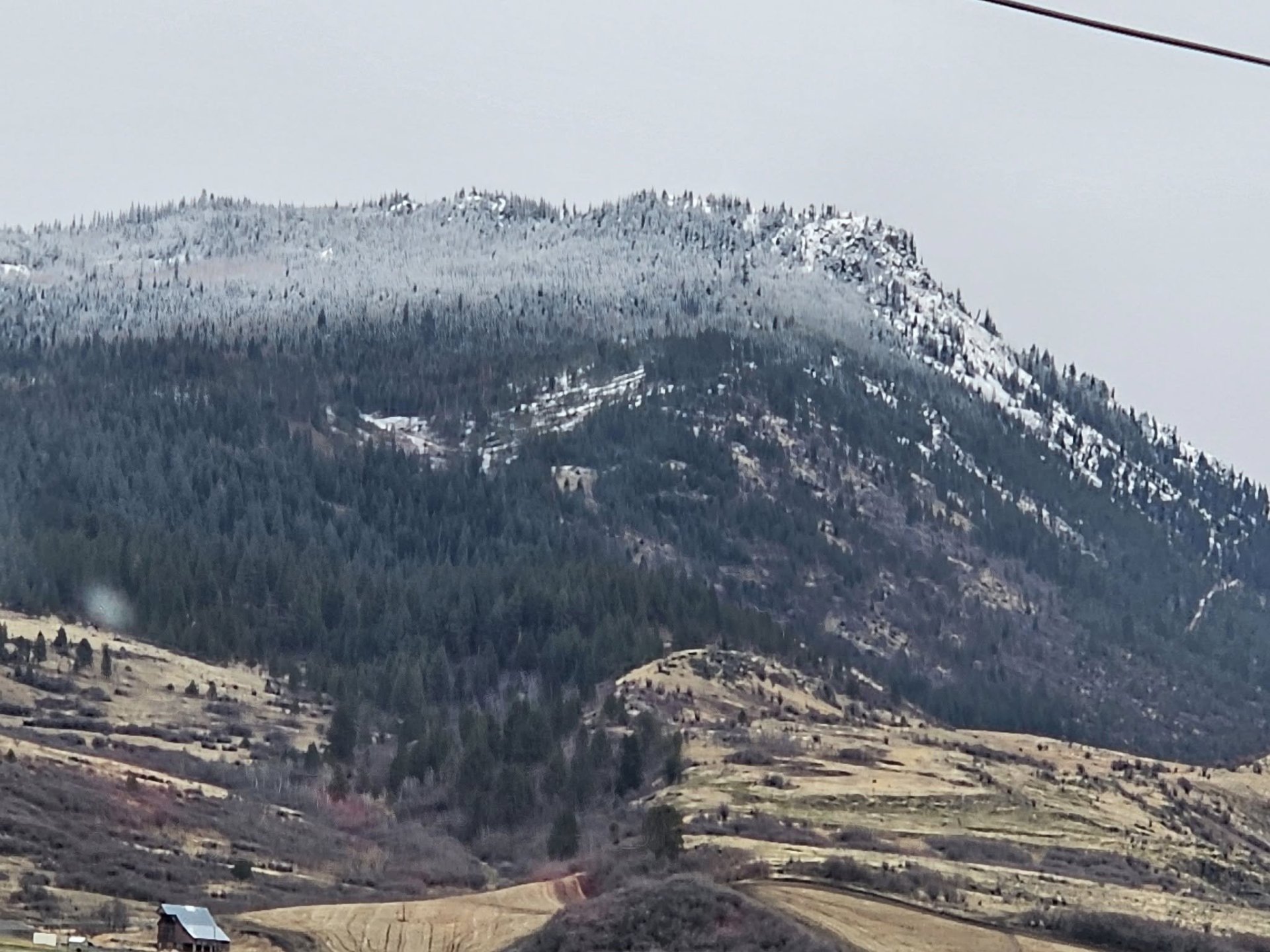 Rainy today, but mostly just drizzly off/on.... taken from my driveway, looks like Mt Harris got a little bit of frosting near the top.... Still continuing my quest of riding EVERYday though....5 in a row so far...