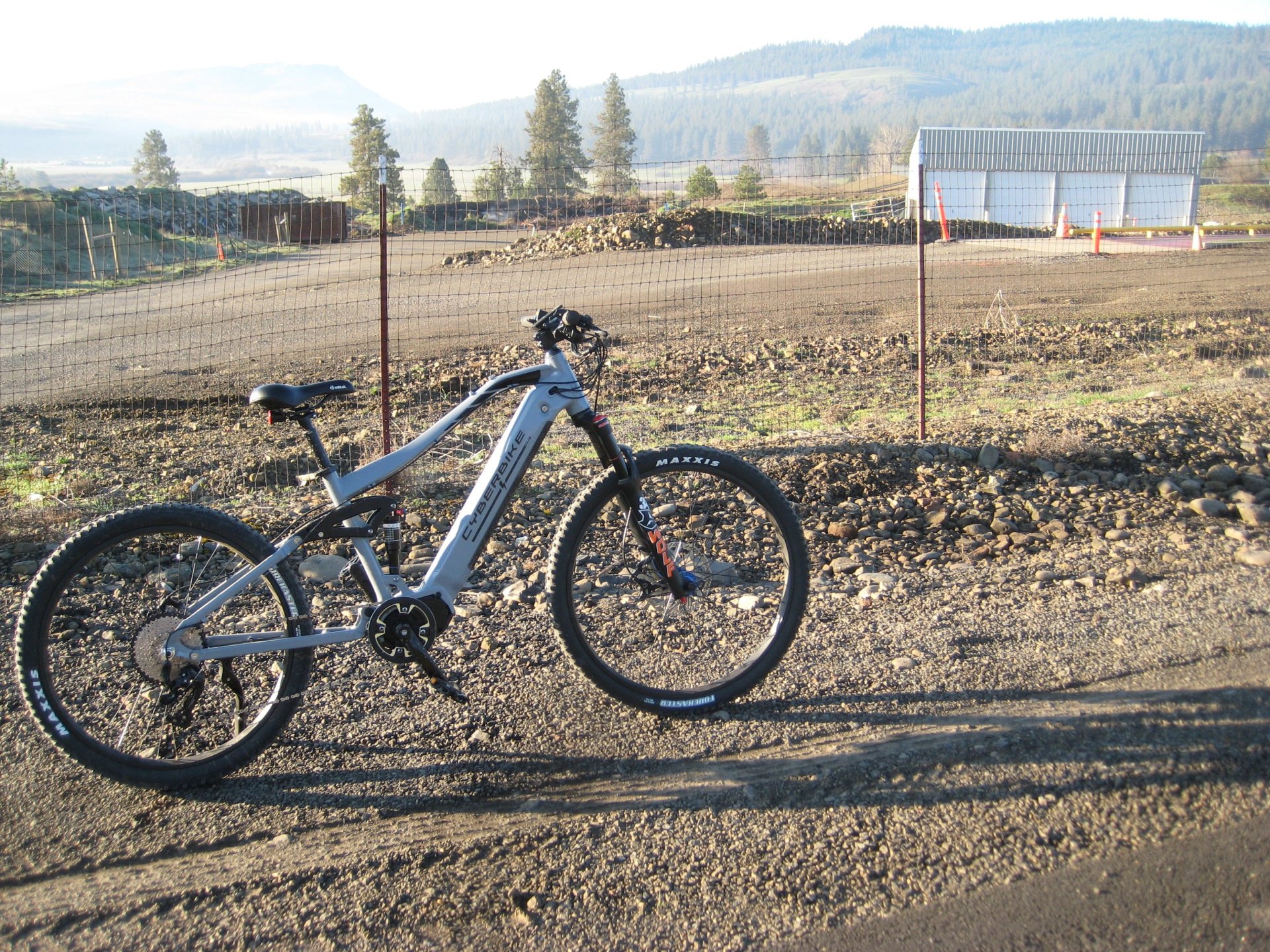 The crest of the road behind the bike is a pretty steep gravel hill.....coasted down it in PA level 0.....33 mph...enough to make the eyes water...lol