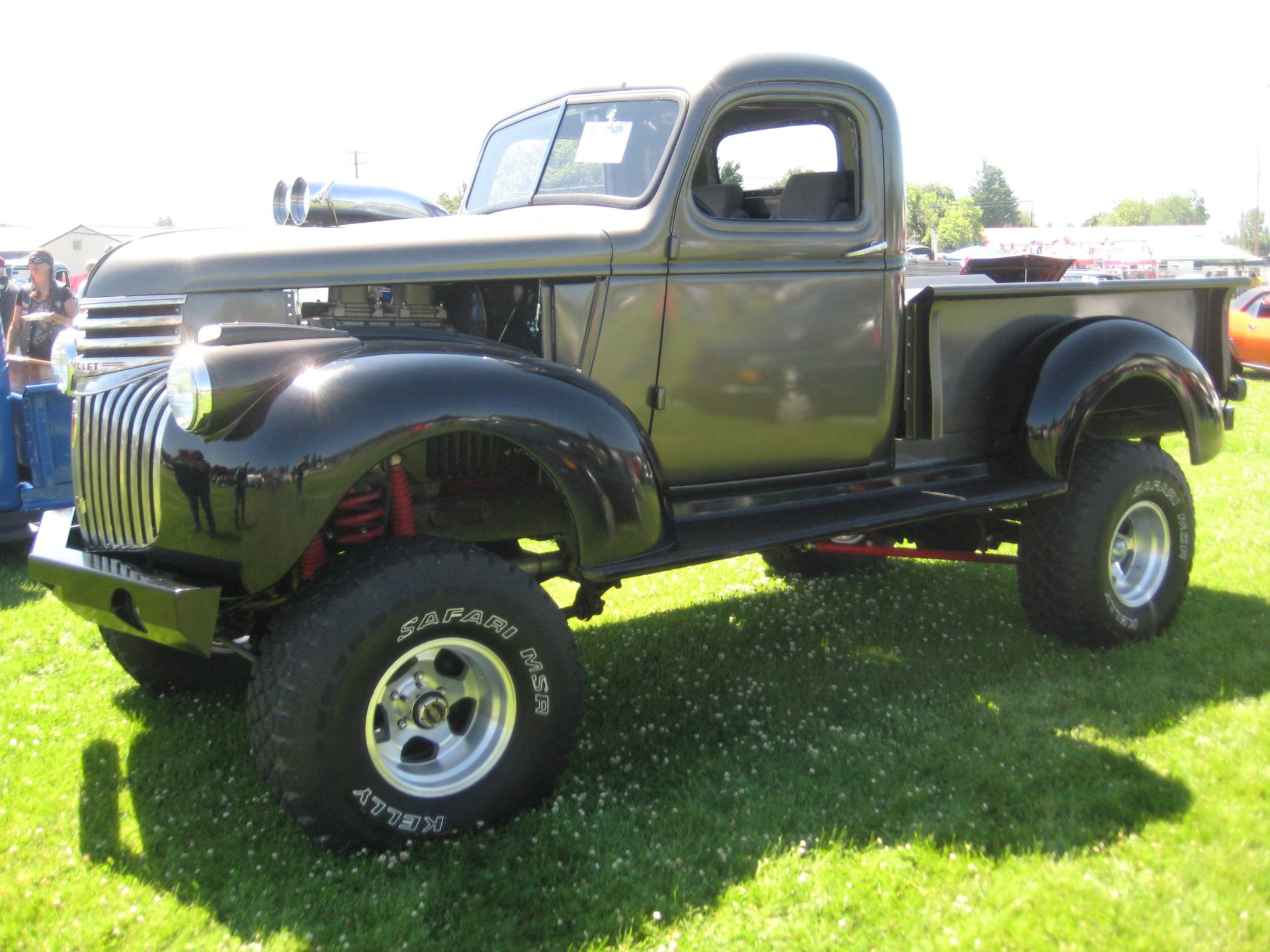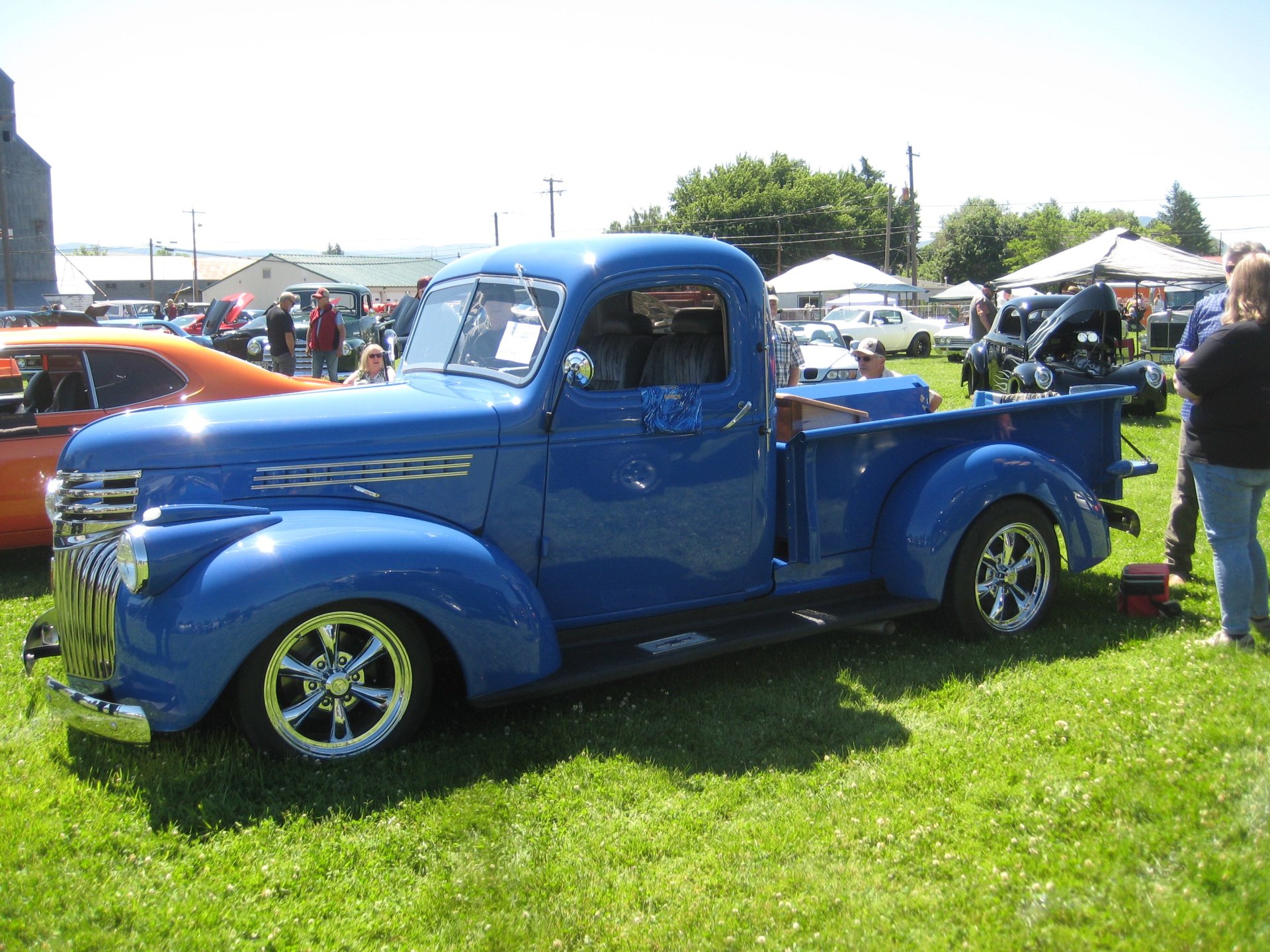 This year's RiverFest didn't disappoint.... plenty of cool 4-wheel entry's. Most of the bikes were of the HD variety (nothin' new)....& a handful of tractors. A REAL van.... & my 2 favorites from today's show.... Love this '46 Chev w/ a blown small-block.... BadAss truck!