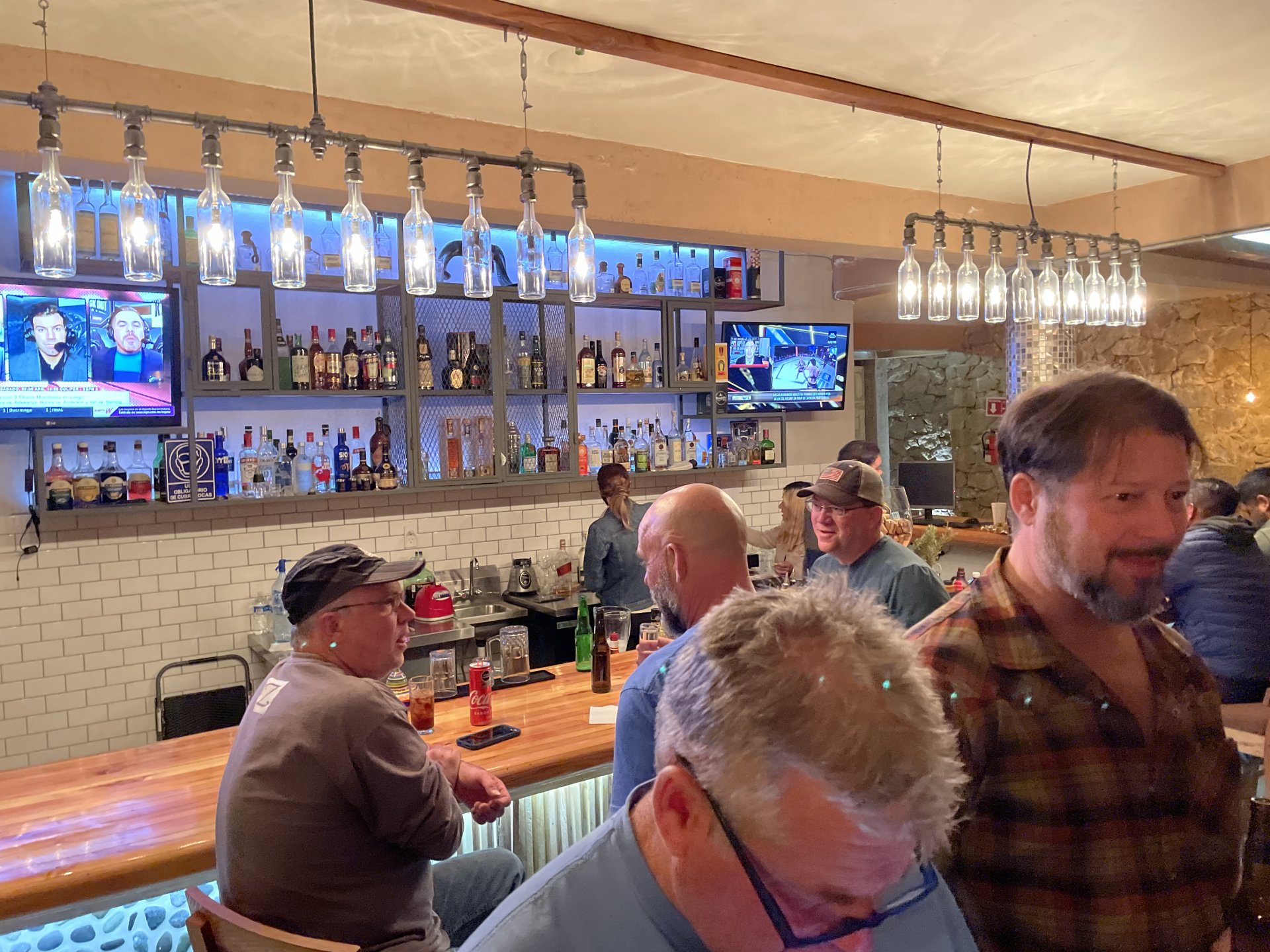 So, we crossed the border with no incidents, in spite of CNN. First stop? Tacos!!! We commandeered the sidewalk and parking spaces in front of our favorite street taco vendor, then started ordering gross tacos! let's see - 14 riders x 4 tacos each, plus un coca each (or two). Grand total - $30 US. Gotta love mehico! We then headed up to Hacienda Santana, a hotel we discovered two years ago after being rescued by another dangerous Mexican when one of our peeps blew out every spoke in his rear wheel, 20 miles from Tecate. (save that story for when this is done. suffice it to say that people living in Baja really look after each other). Speaking of street food, you can always venture out in the a.m. and find a vendor on a nearby street selling breakfast burritos. Not sure our budget could handle the cost of 30 pesos, but we managed. This place is a little pricey for Baja, but well worth it. Modern, amurican-quality, and one great underground bar. It was there that we started "prepping" for the trip by trying to wipe out their Tequila supply.