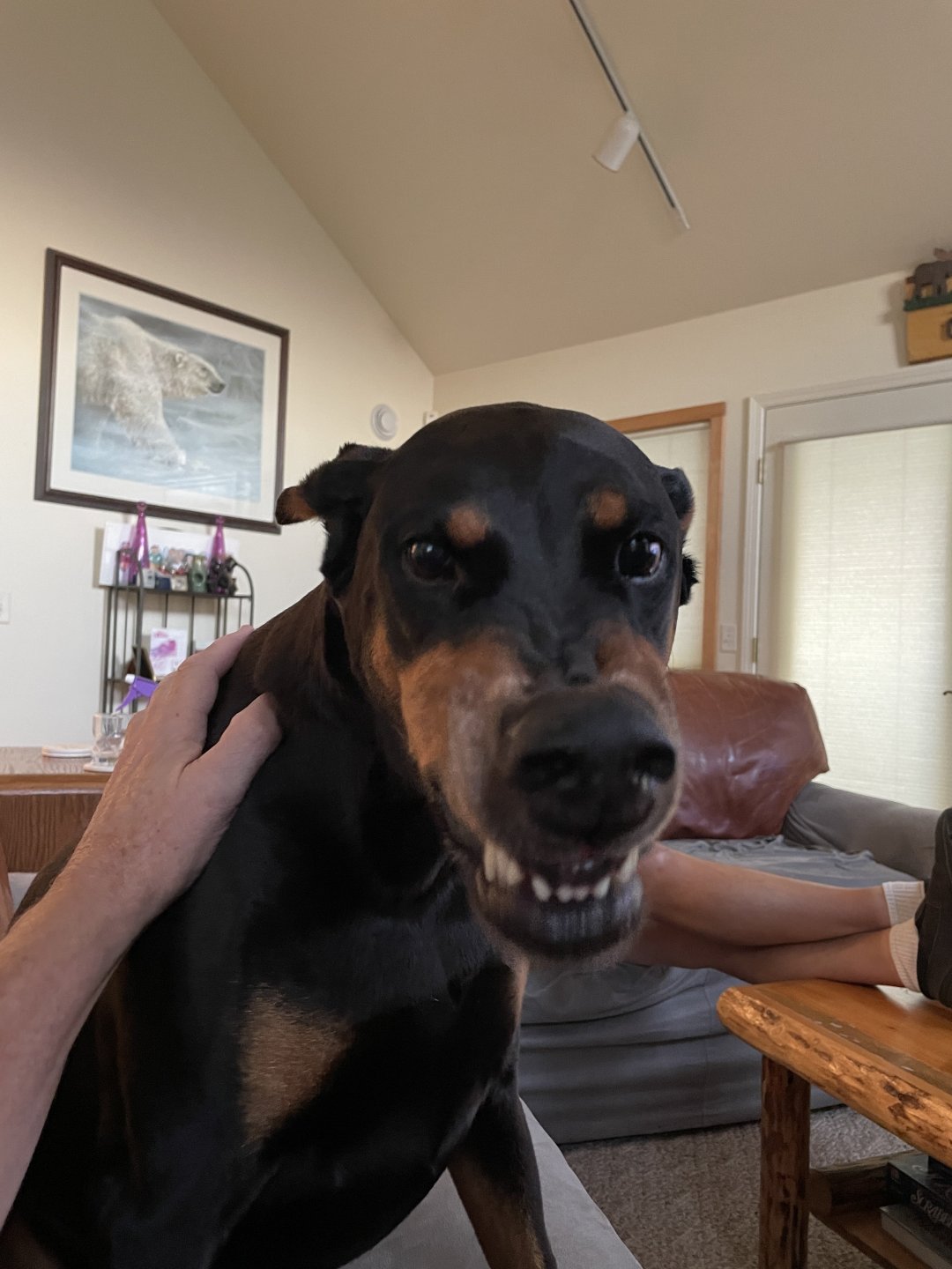 My first reaction, too. But, absent a loud growl or bark, i quickly learned she was just saying "HI"