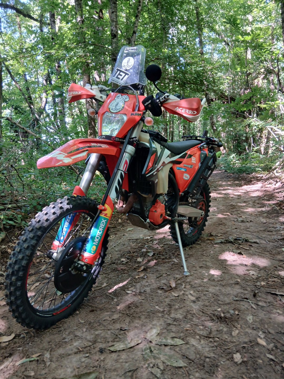 Gotta admit at a combined weight of over 300kg I was a tad apprehensive but I'm a tad nuts so went in full guns and the great white lump just gobbled up mud , rocks , logs , massive ruts and long gravel climbs. Before this little bimble I was seriously thinking of chopping it in for a CF450MT, but not now , just need to fettle a few thing like the suspension and the gear shifter, needs a flexible tip. Before and after