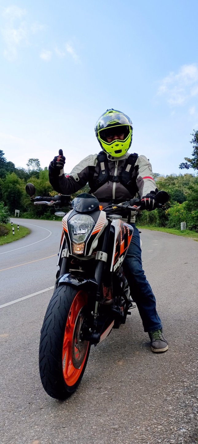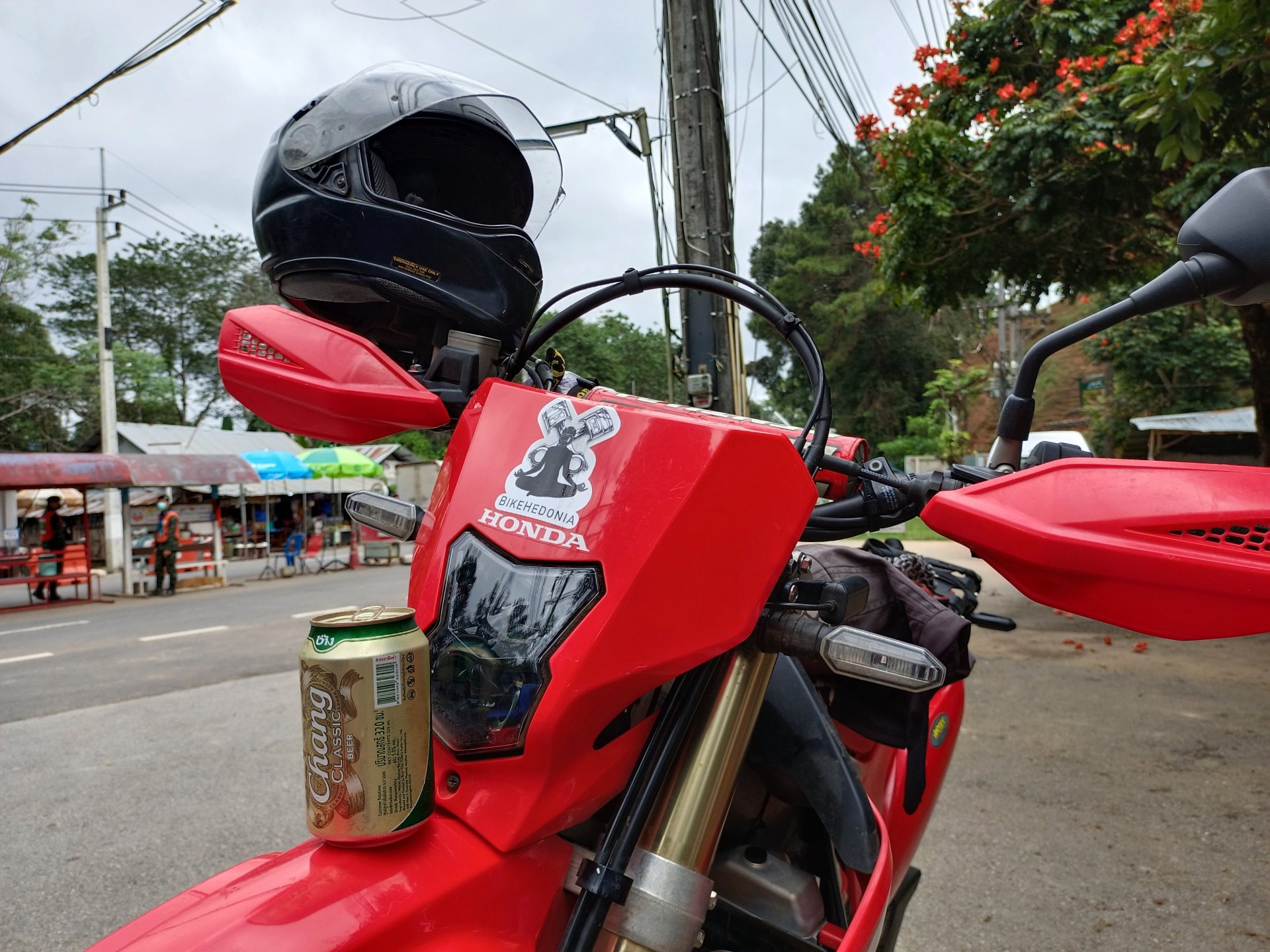 Still knee deep in covid so still hanging out on my mountain in Thailand. Did 250km of the Mae Hong Son Loop yesterday on the CRF450RL. Still running the crappy factory IRC tyres but the roads were clean (for once) so I've got no chicken strips left on my knobbies. Love throwing it through those curves motard style, reliving bad habits learnt on the 690. Gets a little twitchy in the front end if you have to brake suddenly over 90kph though. Stopped at the army checkpoint between Chiang Mai and Mae Hong Son provinces and had a beer with the soldier boys and slapped a sticker on the bike (with owner's permission of course), brand of the devil! Well, a better way to leave my mark on a motorcycle than by sliding it down the road. I have dropped this one off road before (once) but otherwise we have remained resolutely upright. Out with my mate who I talked into buying this farkled 390 duke. Upgraded ecu and full exhaust, first gen, that little bike goes like the clappers. It's a demon. She's running Rosso IIs and is well on her way to the dark side.