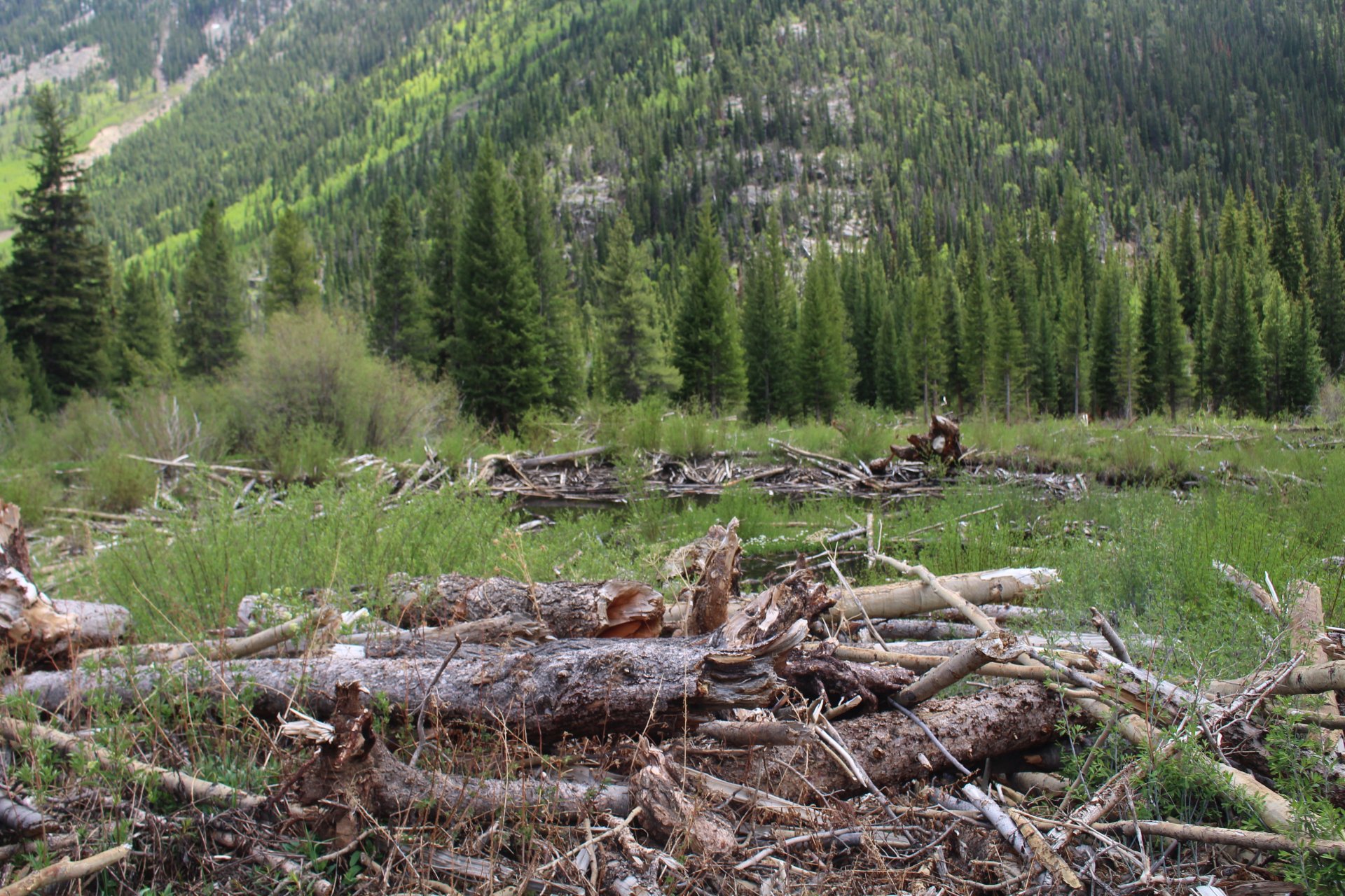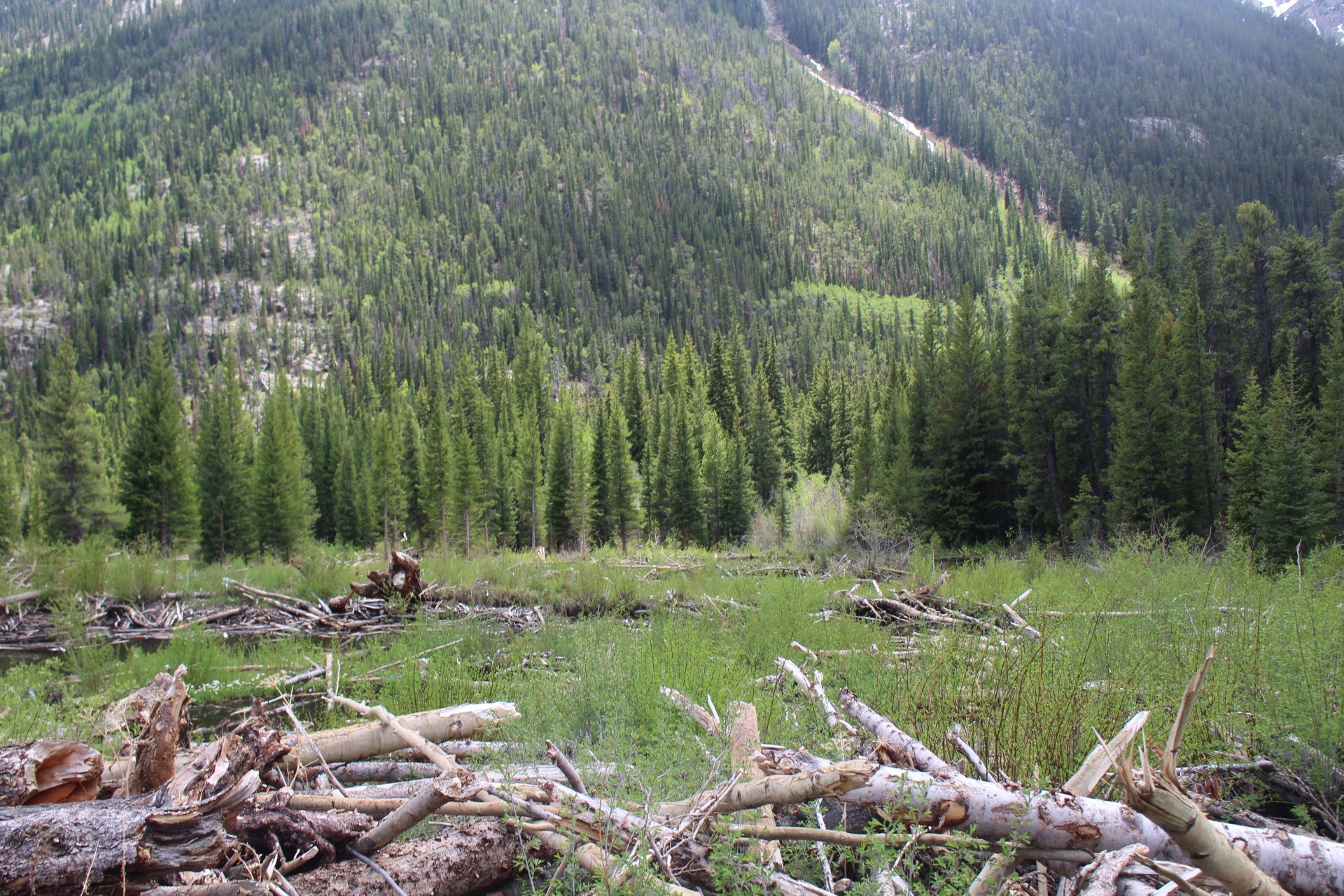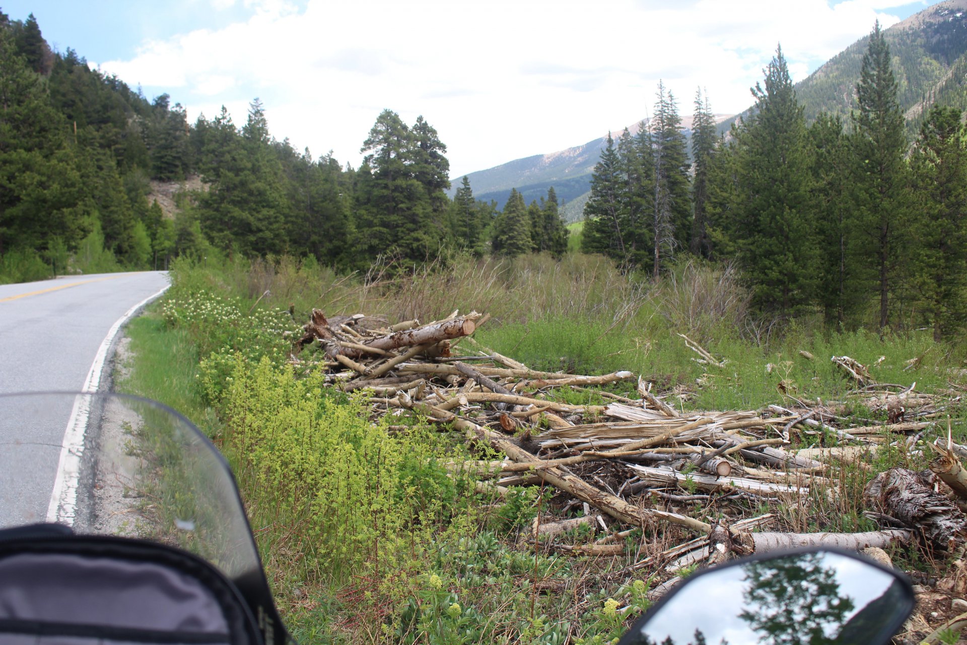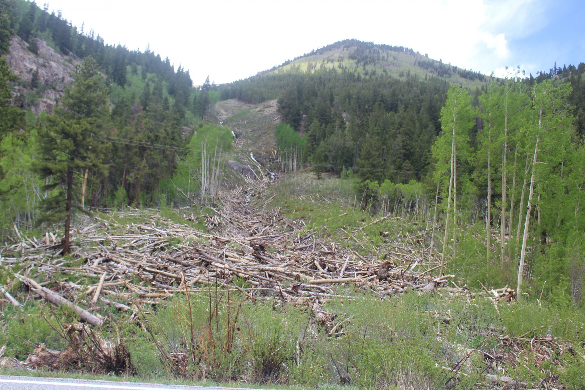 Continuing up the hill, passed the remnants of an avalanche. The snow is all gone but the trees and mess remain. Can you imagine being caught up in the mess as it flies down the mountain? Trees would beat the shit out of you...