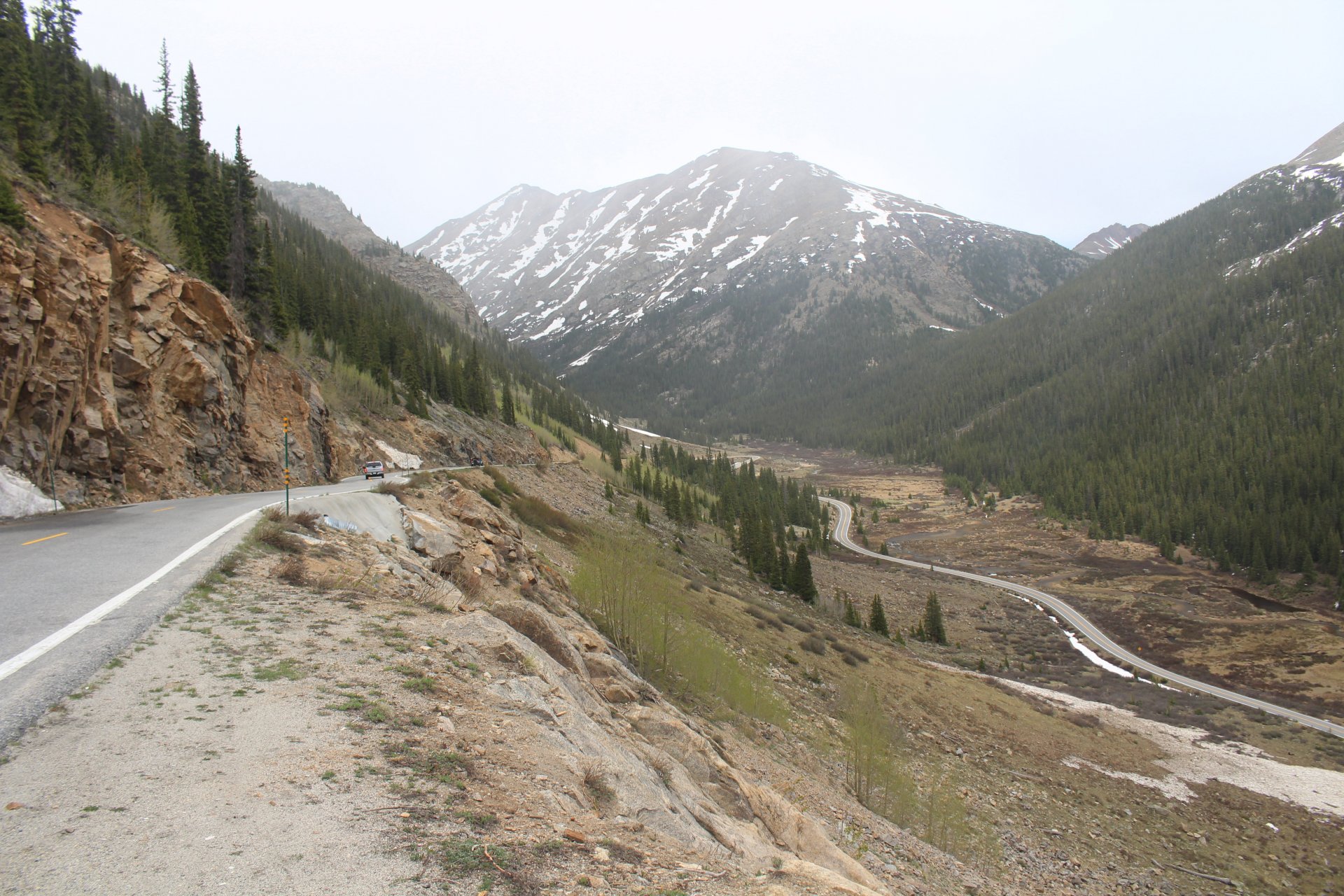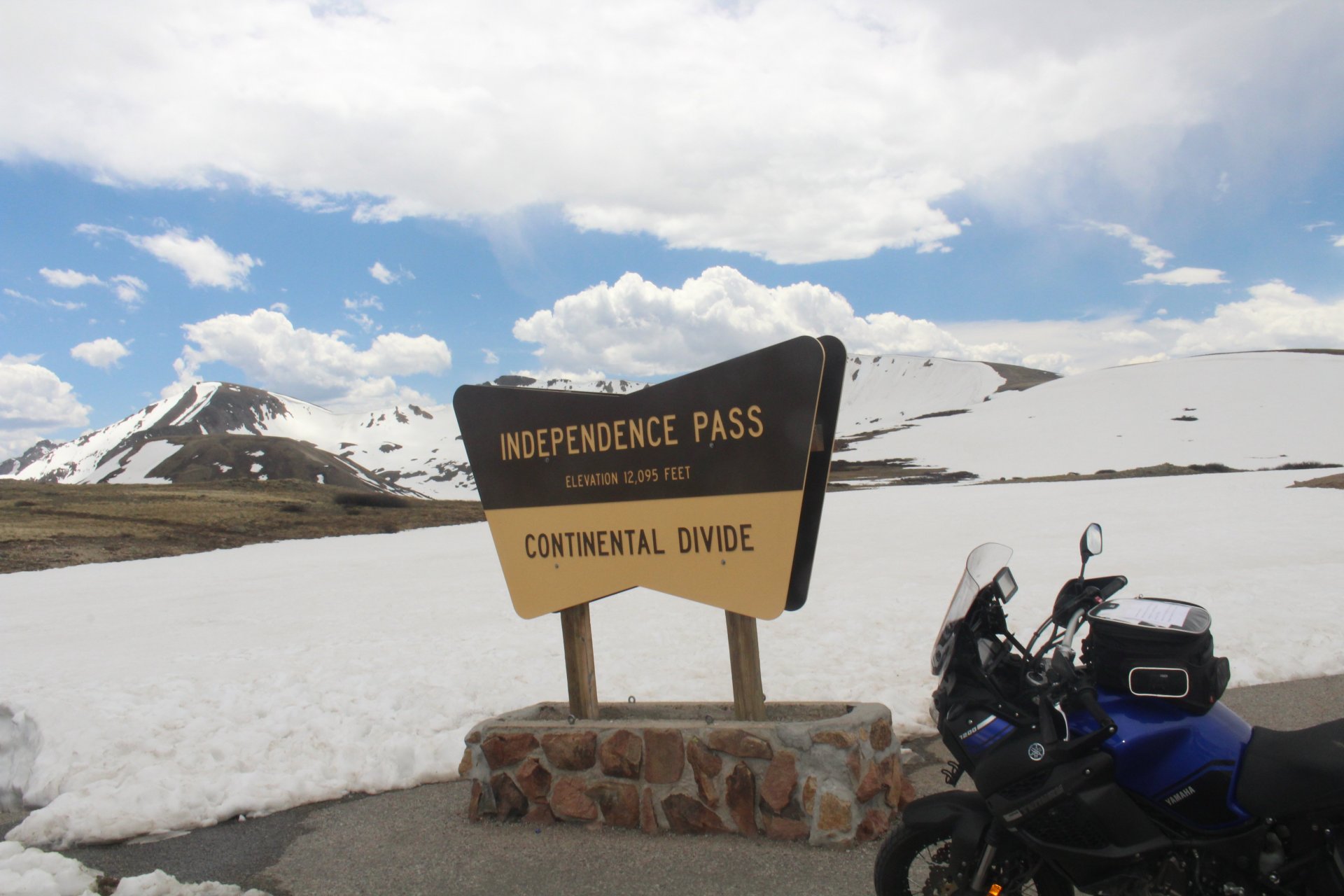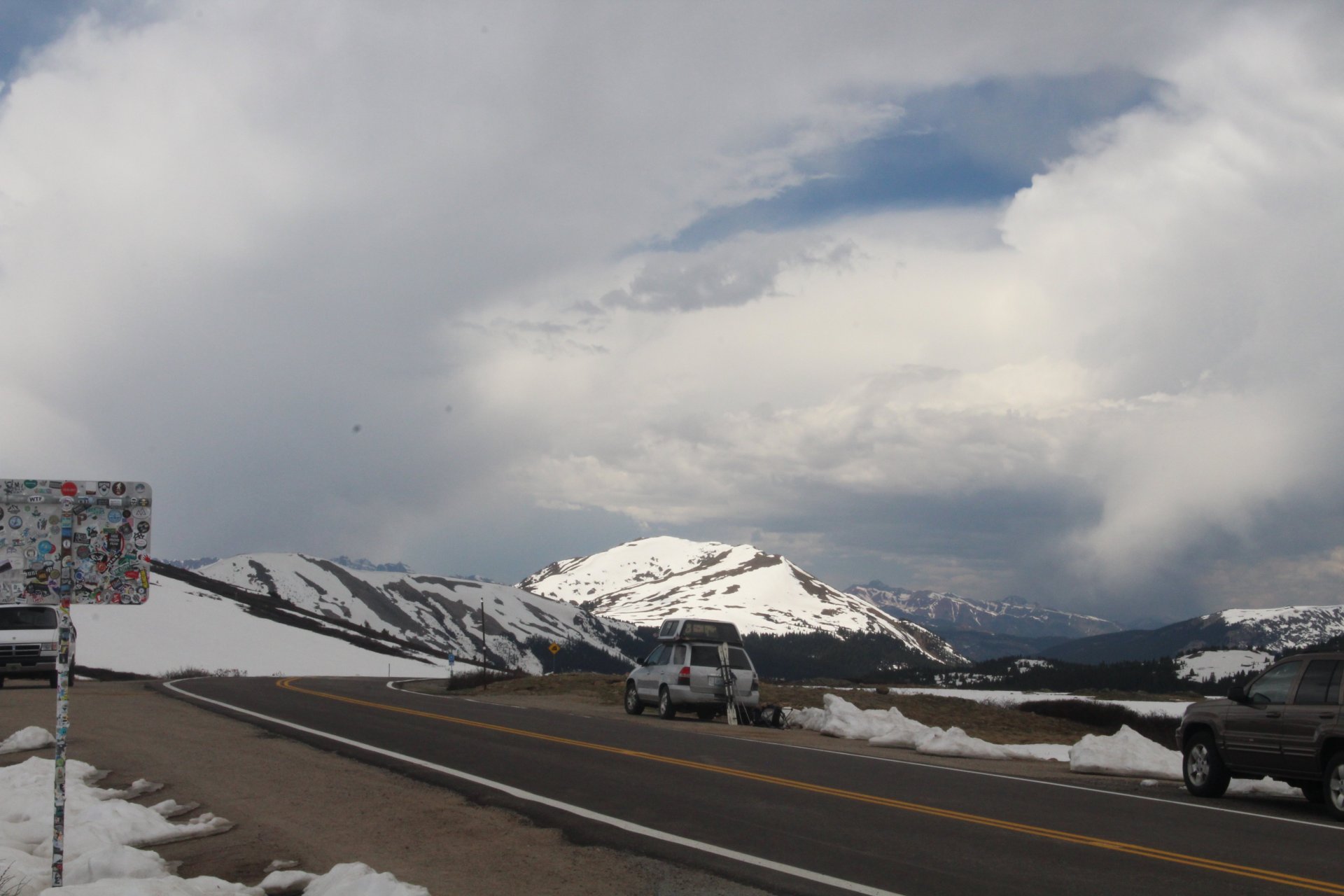 Made it to the Pass / Continental Divide. Wind was whipping at about 45 mph at this point. Thought my bike was going to blow over...