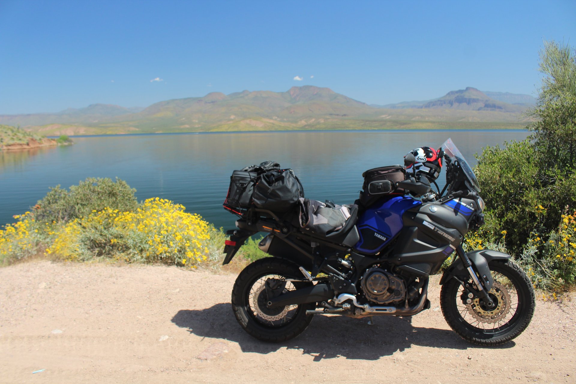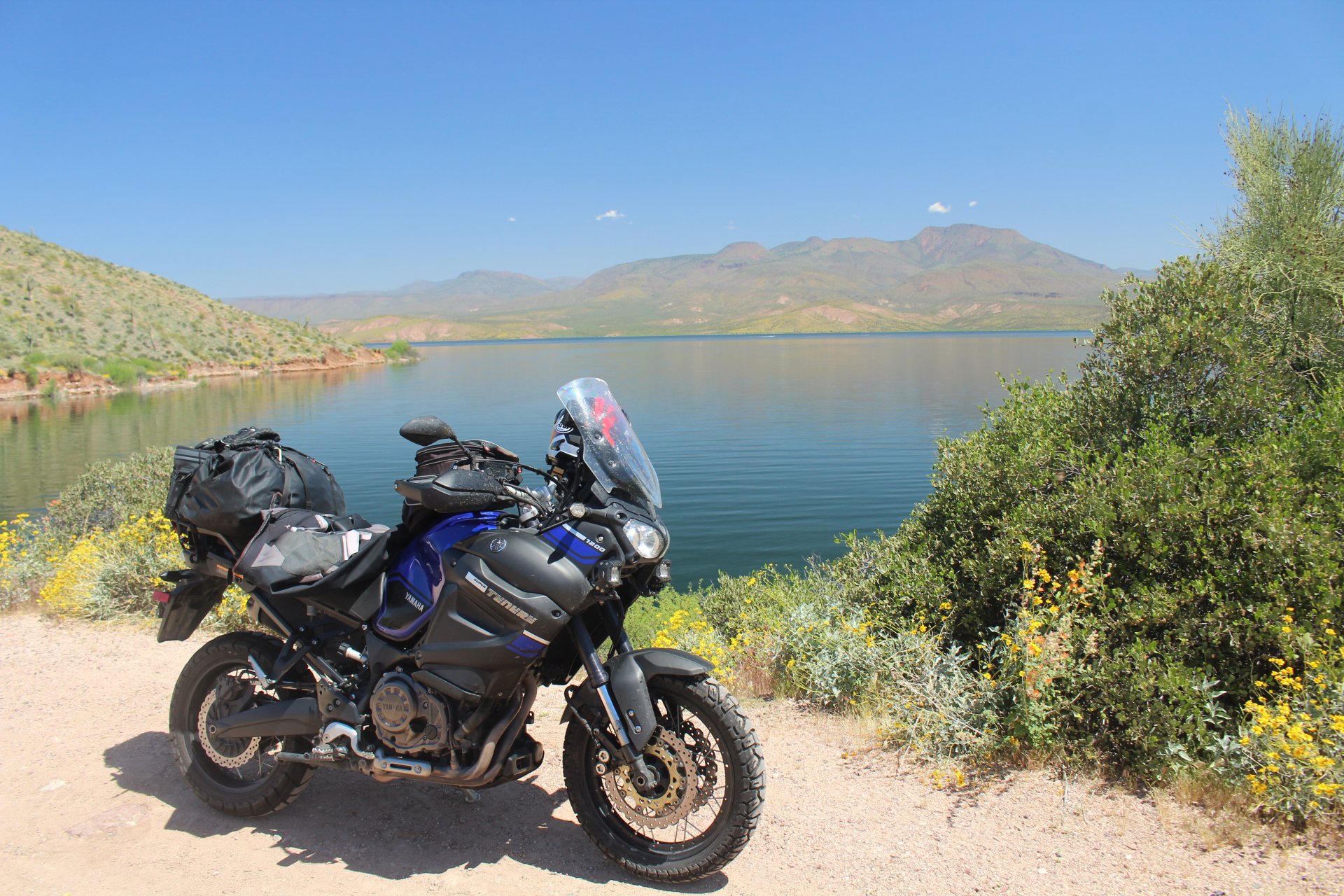 Stopped by a reservoir for break and it was officially hot as fuck out -105F / 42C. Had us rethinking our decision to ride Arizona. Heat was hitting hard as I was still used to below freezing temperatures of home ...