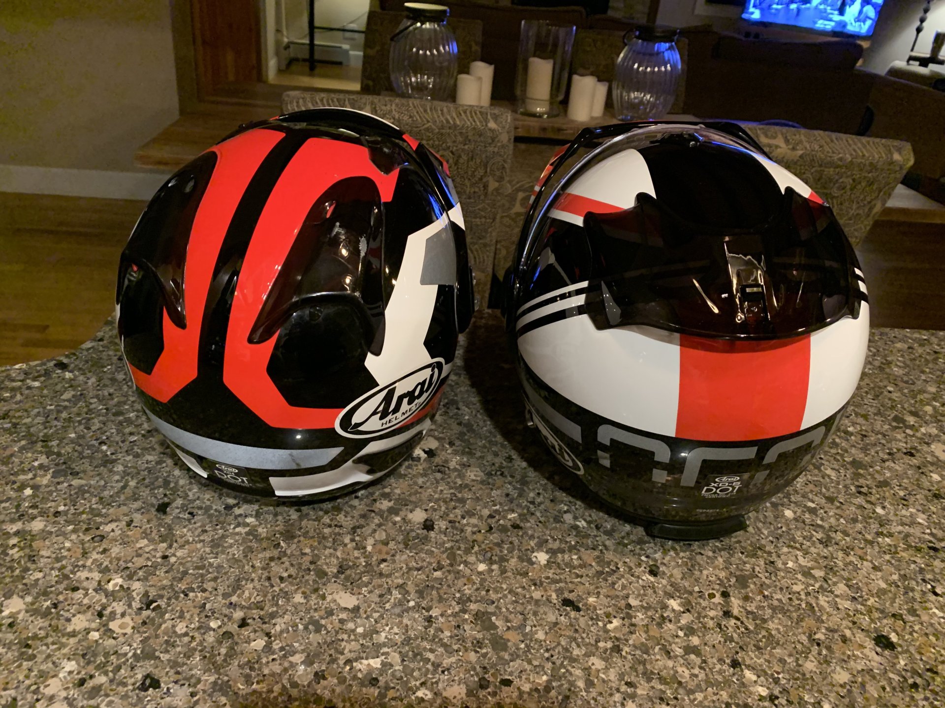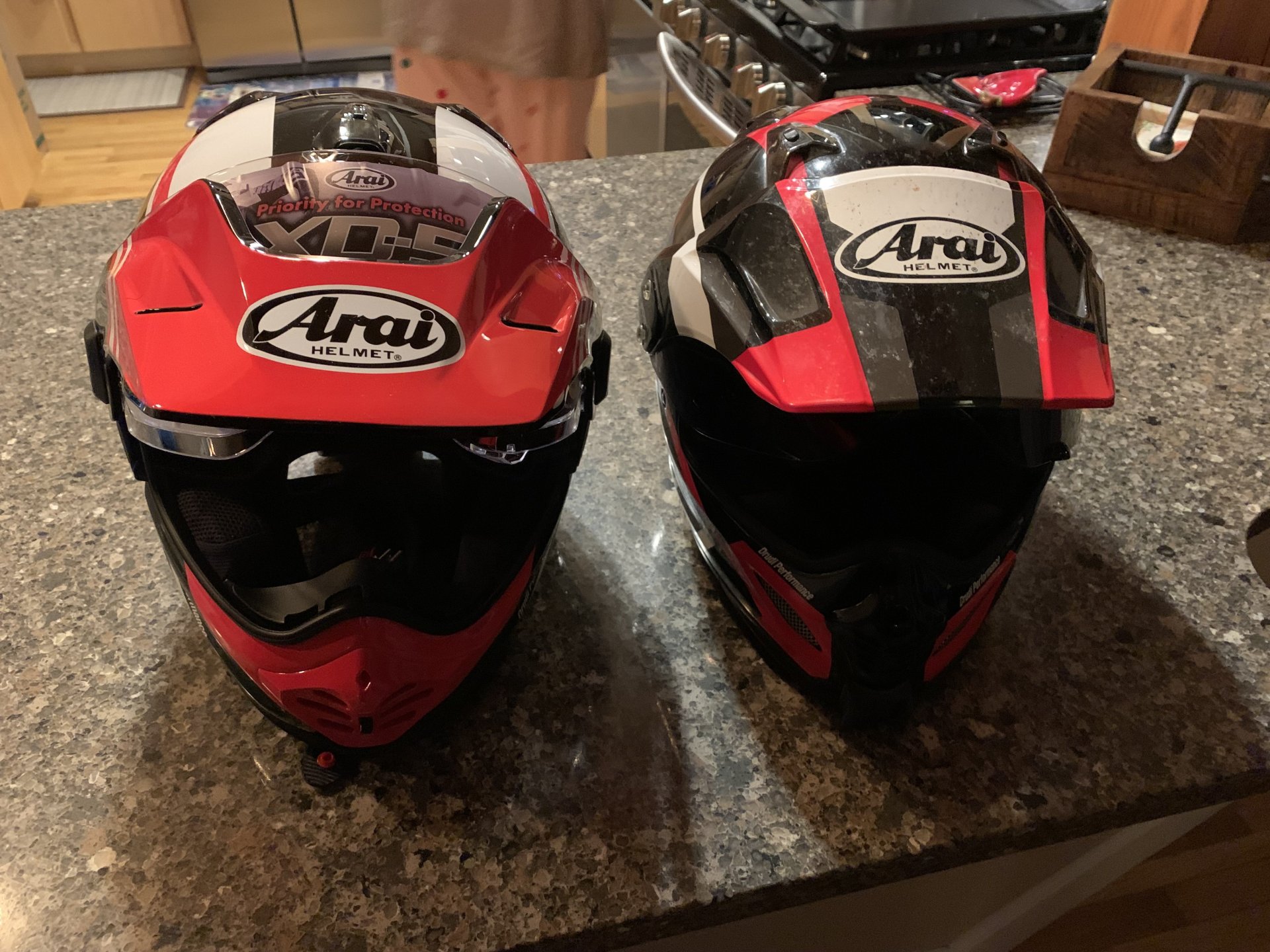 The Arai XD-5 I bought last month finally showed up today at the shop. This thing is freakin' huge! Much more rounded looking than the previous XD-4. Guess we'll see if it's any better once riding season rolls around.....
