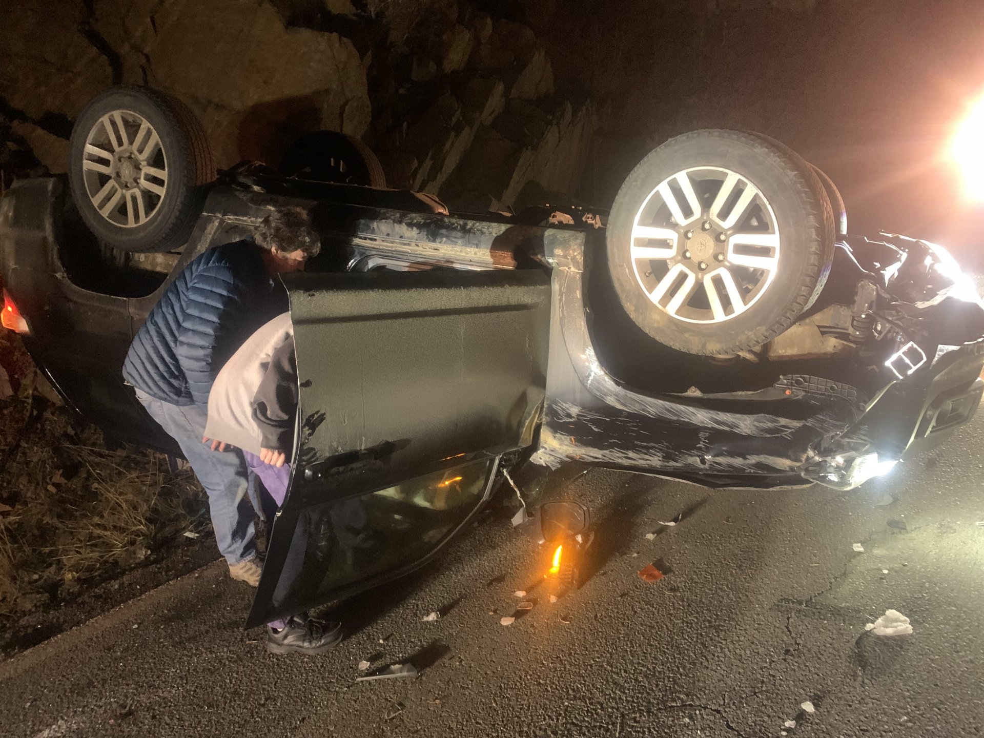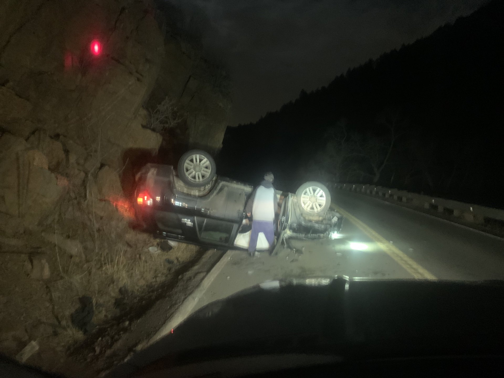 Wife's outta town and no food in the house, so I take off on a 75 mile round trip to the grocery store. Got my stuff and headed home. Half way up the canyon the twat goes off to the road to the right, over corrects and shoots across my lane and then climbs a canyon wall. Gets about 15 feet up the wall, turns over and comes crashing down in front of me. Like 4 feet from me. Showered my truck with glass, broken bumper parts and pastic shards. Cor blimey mate, I nearly shat meself! He was okay but his wife lost a bunch of teeth and was trapped under the dash - which had collapsed on her, pinning her to the ceiling inside the car. Passerby went 15 miles down the road to find some cell service to call ambulance and cops while I waited roadside listening to her wail. Driver was kinda out of it and just walking around. Fucked up.