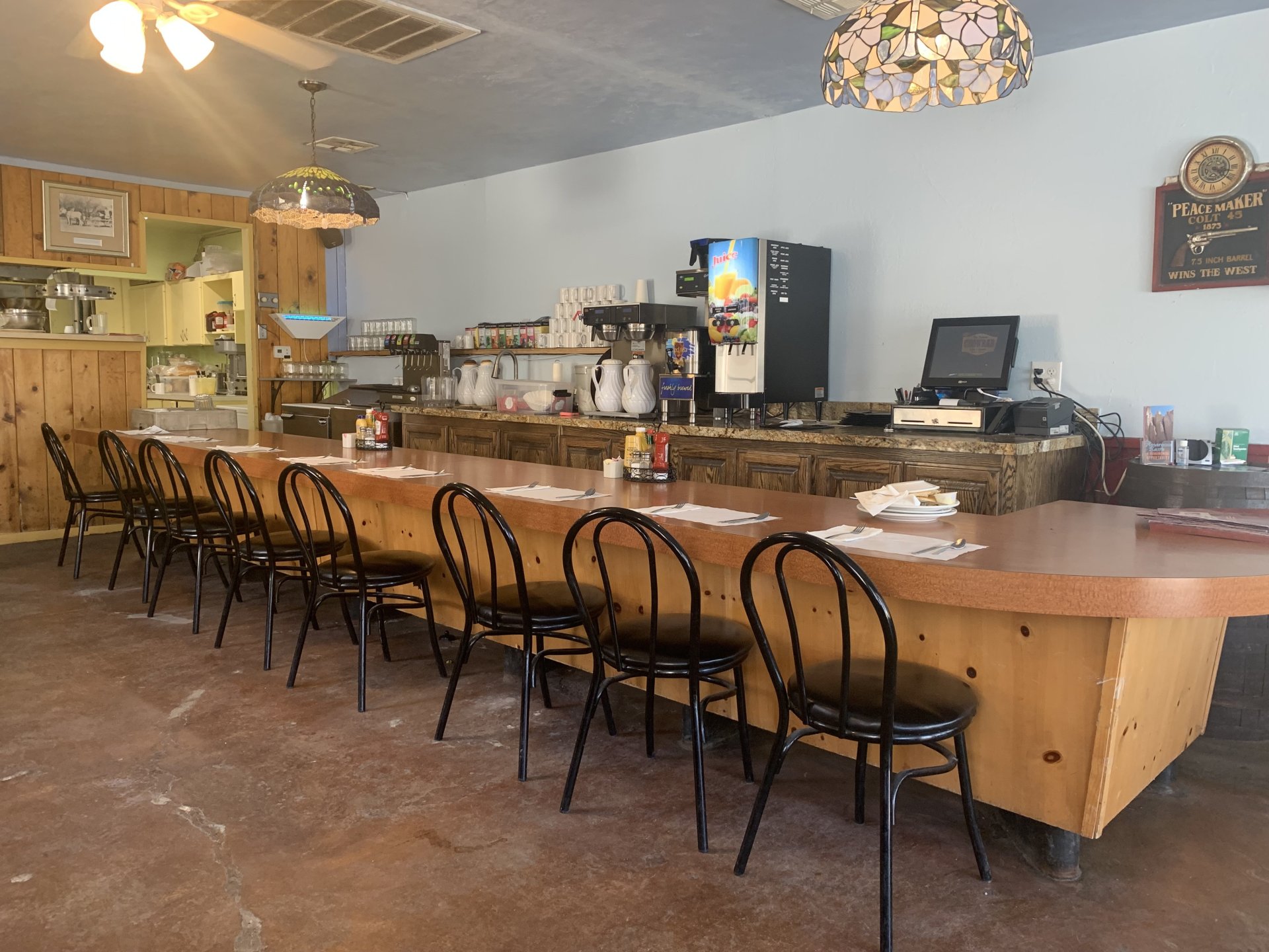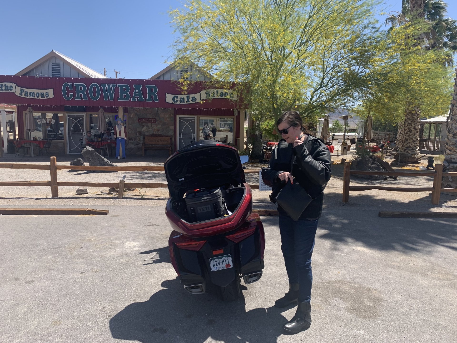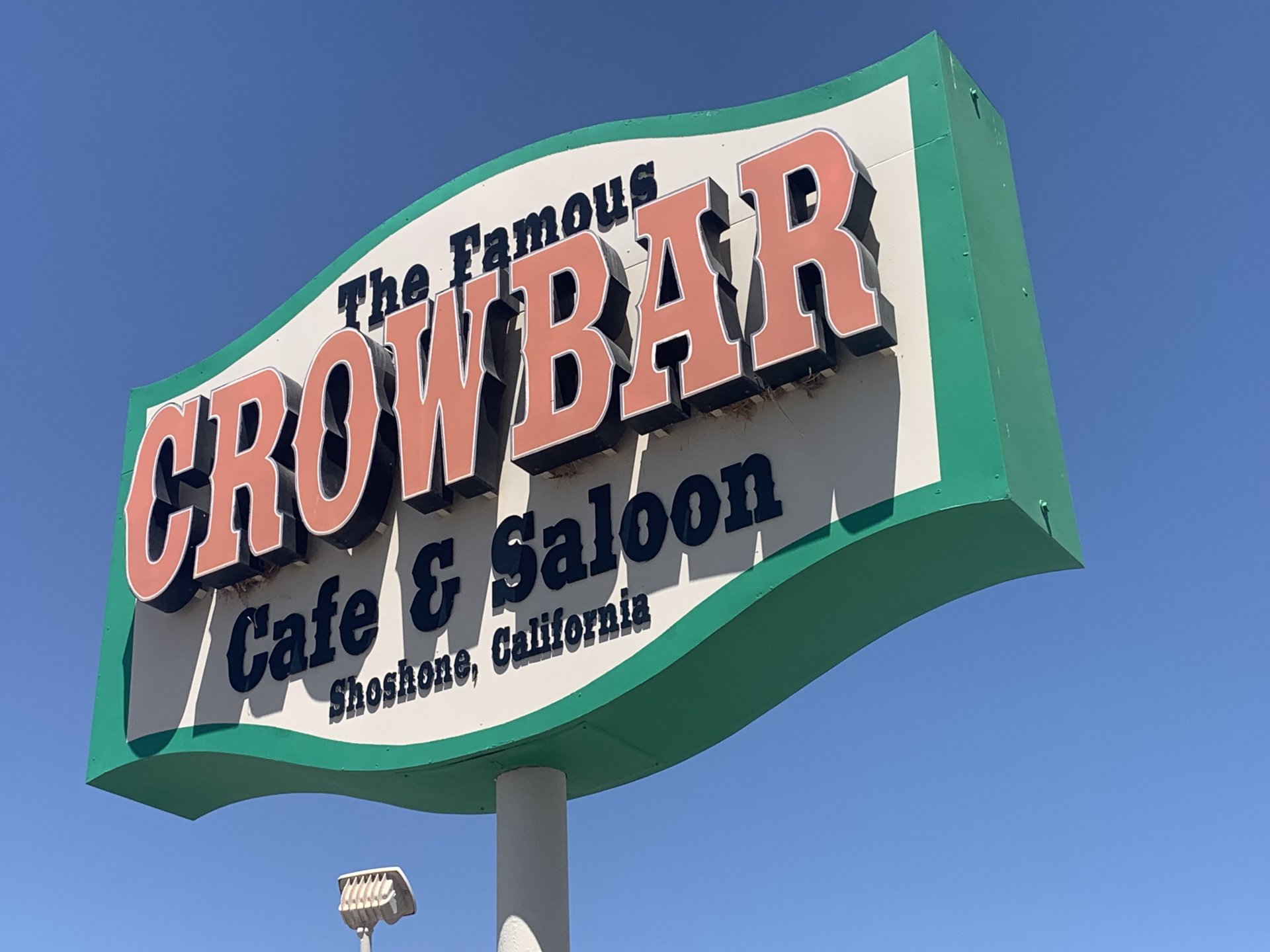 18. Stopped off at the Crow Bar on Shoshone, California for lunch. Old style diner that hasn't been updated in years. Had a couple of burgers that were good and the wofe had some homemade blueberry pie that she said was excellent........
