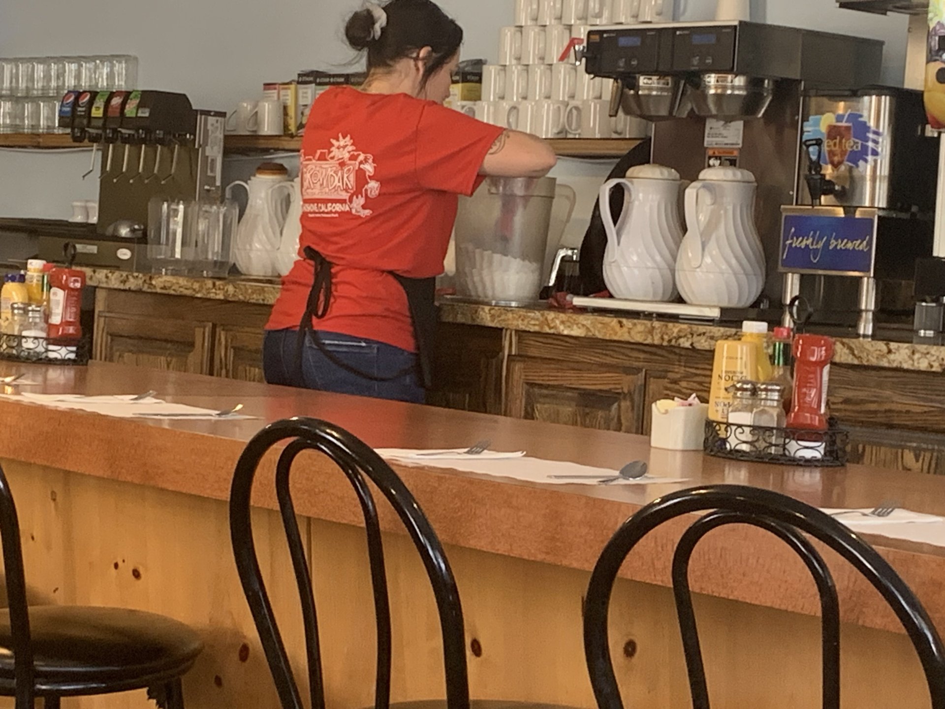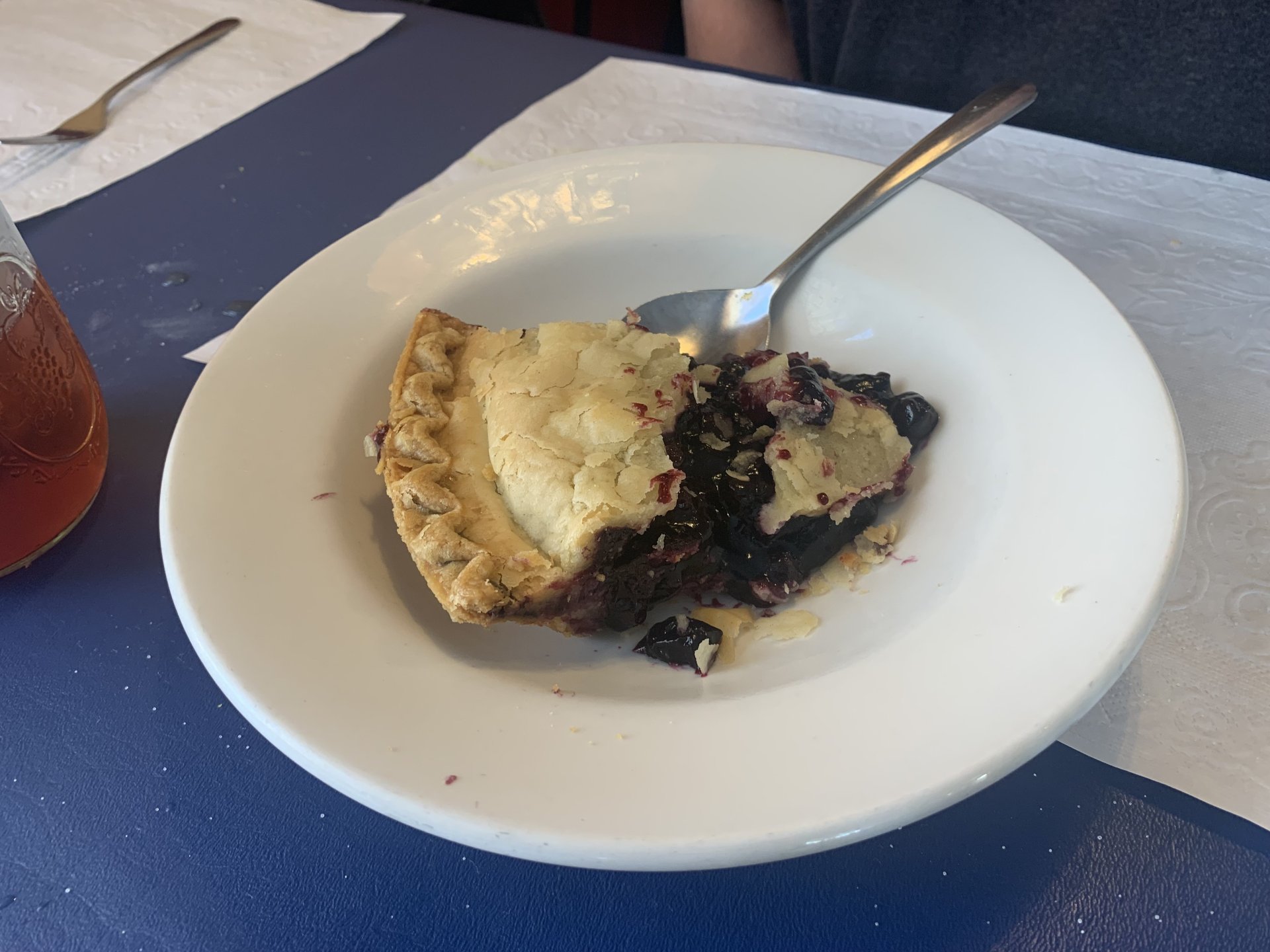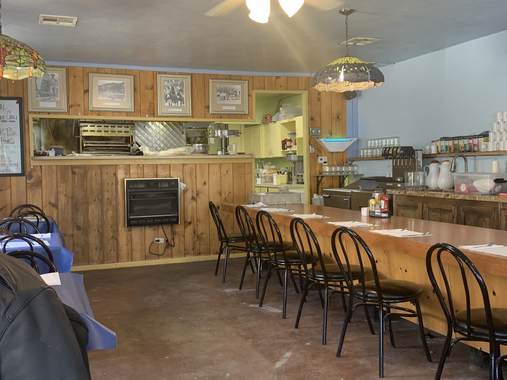 18. Stopped off at the Crow Bar on Shoshone, California for lunch. Old style diner that hasn't been updated in years. Had a couple of burgers that were good and the wofe had some homemade blueberry pie that she said was excellent........