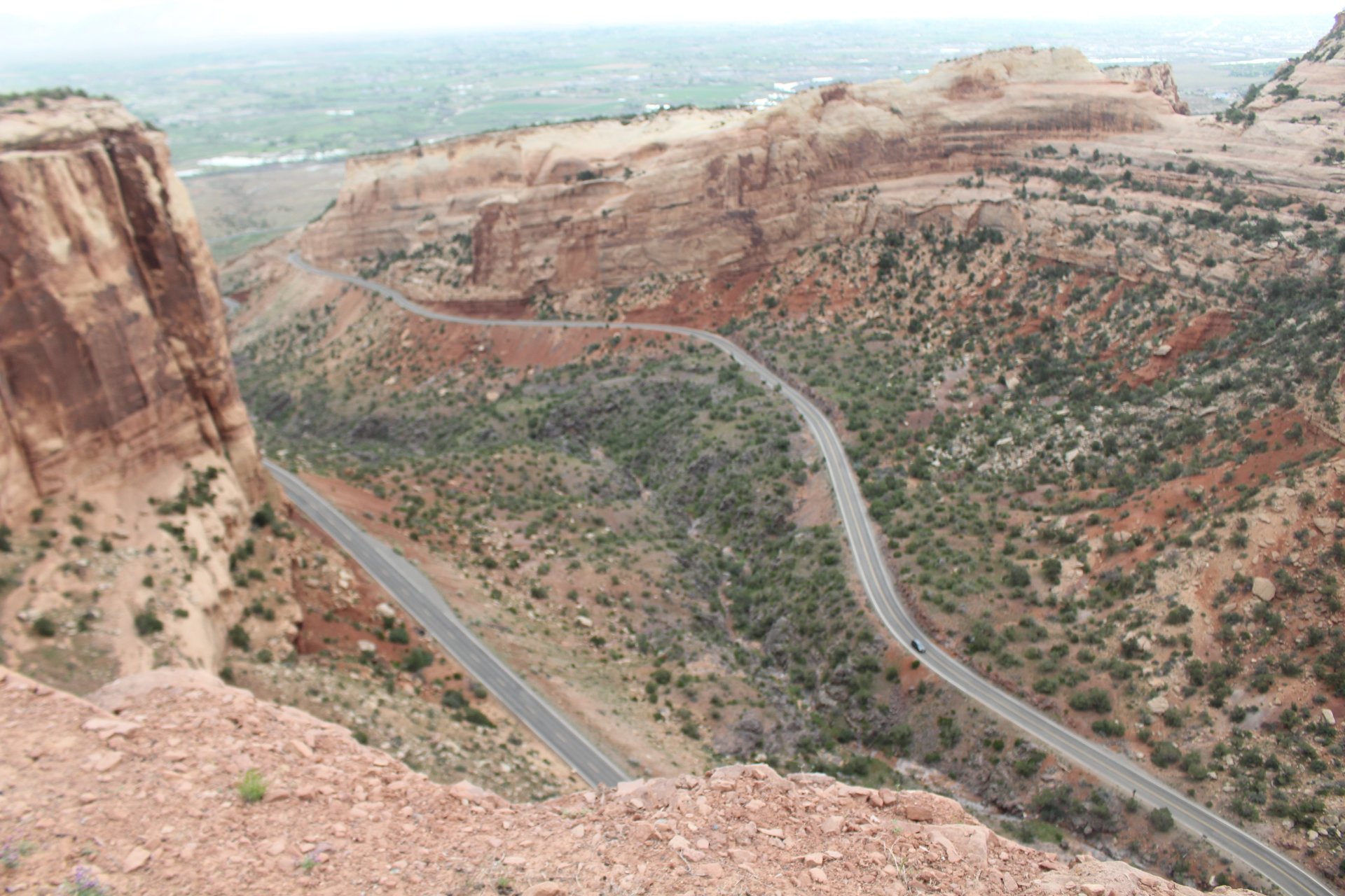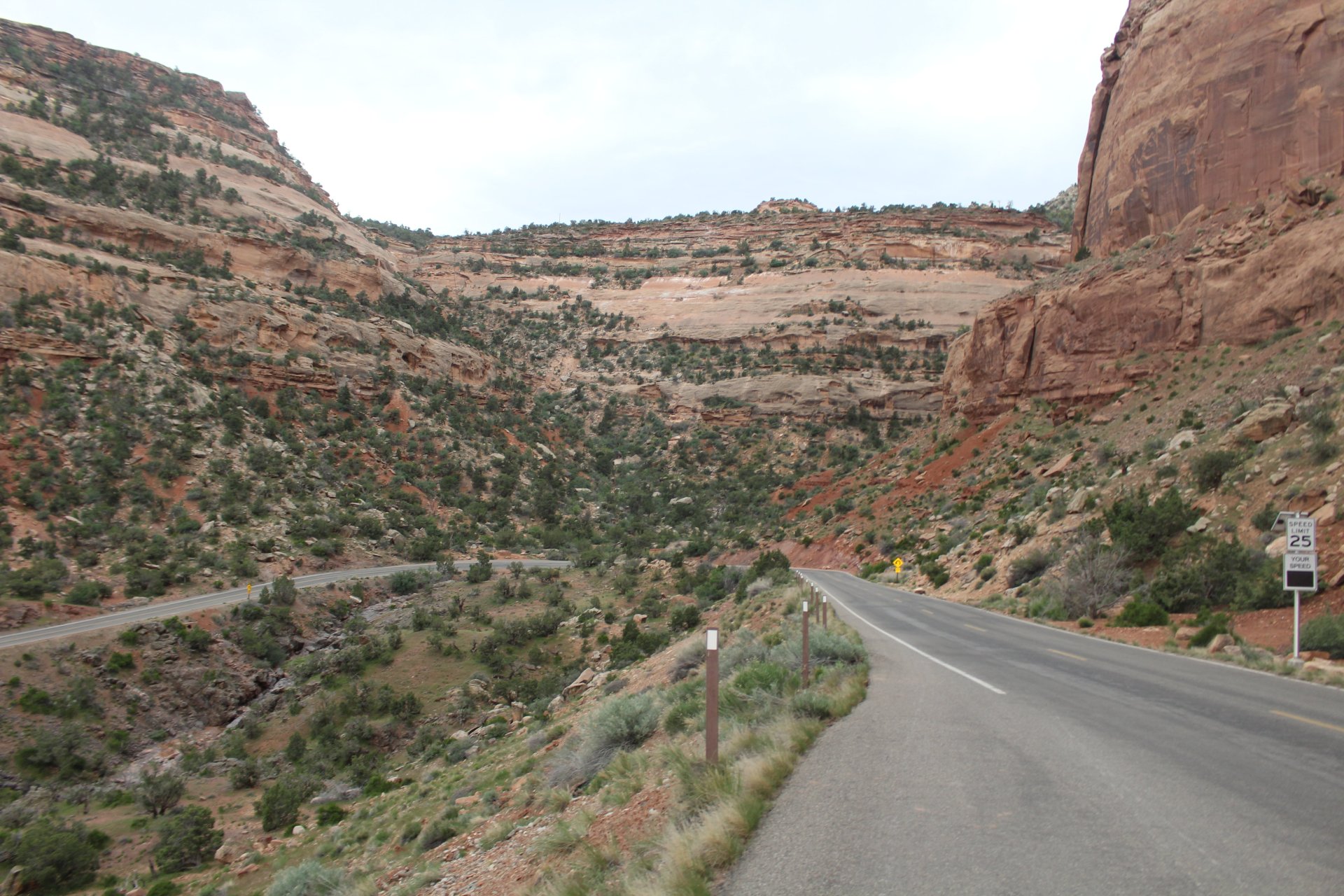 Not a lot happened as I dropped out of the mountains and into the flats of the Western Slope. Temps steadily increased and topped out at about 76F / 25C near Grand Junction. It felt like heaven to me as I finally escaped cold weather on a bike for the first time in a long time. Got to GJ too early to check in to my hotel so I cruised around a bit. Cool to see the ground change to sandstone from the granite and schists like we have at home...