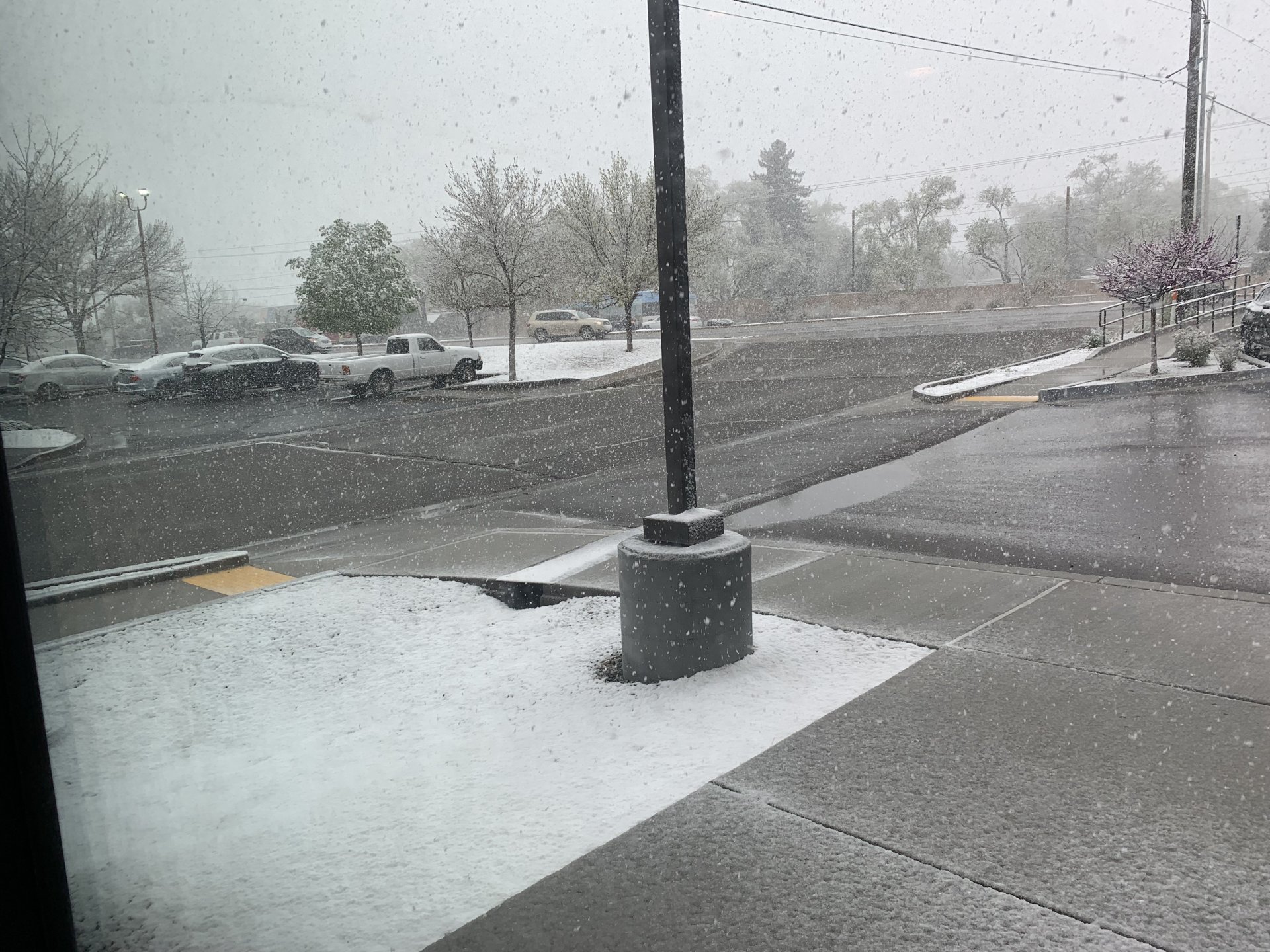 Kinda weird. But here in Santa Fe the elevation is 6,700'feet. It's a lot colder when you're over a mile high. That's the difference. It got sunny and about 45F in the mid afternoon today. rather pleasant. But still had 35 mph winds so riding would be no fun. Tomorrow should be sunny all day and allow us to get back to Colorado with no issues.