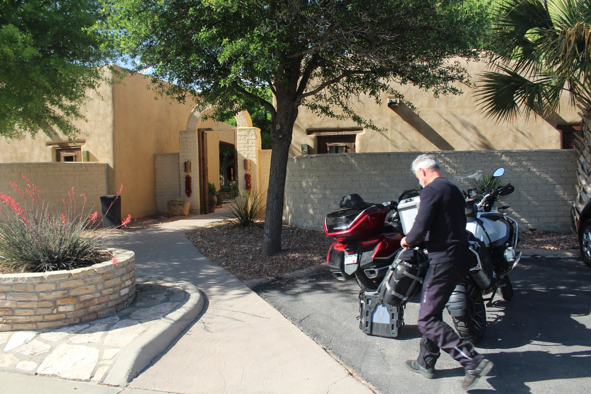 450 miles later and we're in Marathon. More importantly, we're in the heat! 75F / 24C and sunny. Landed at out hotel - a 100 year old building that a rancher built as a place to have meetings. We are staying outside of the main building in a place with a nice courtyard