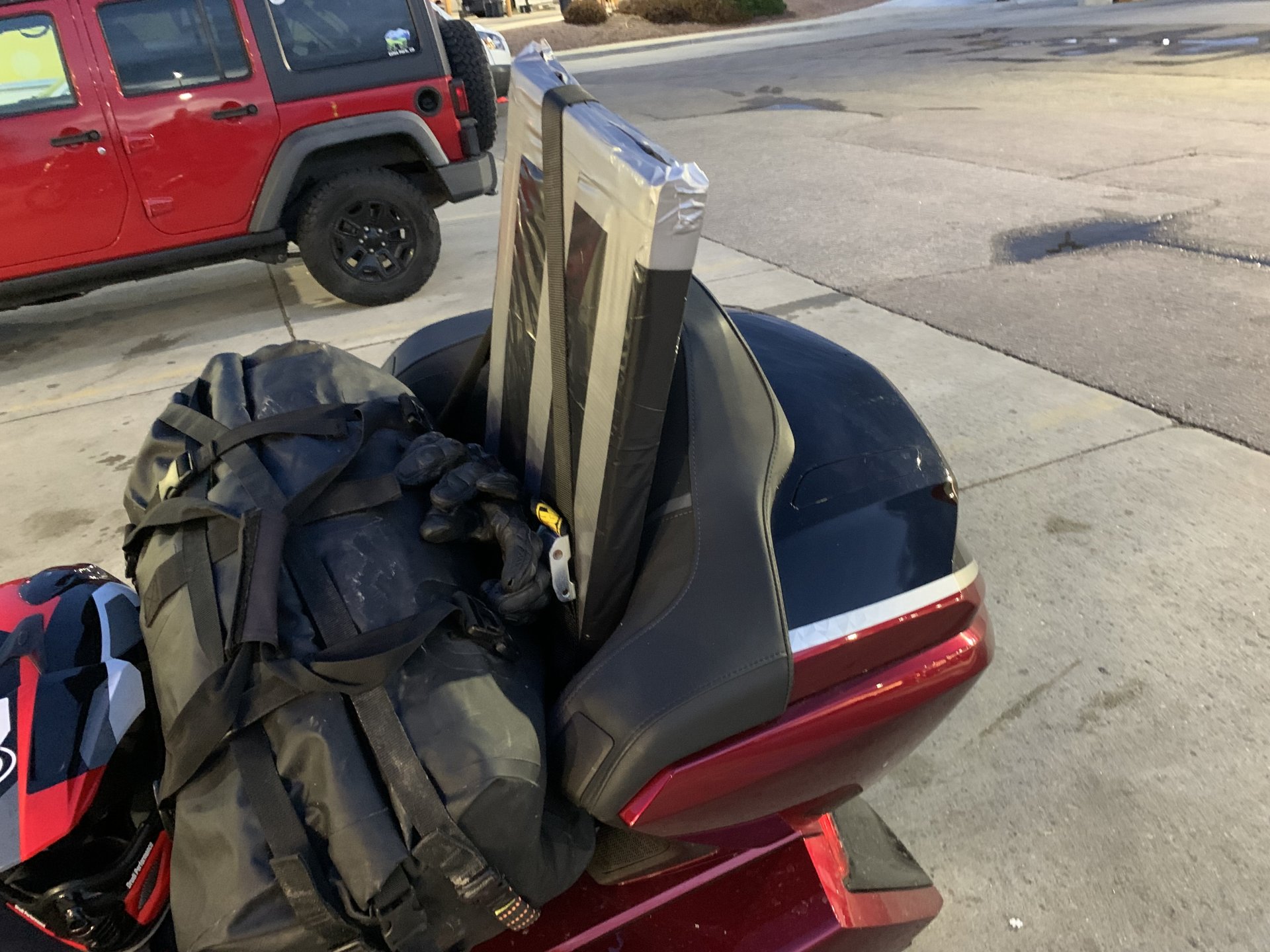 Had a gift for my bud in Missouri - a charcuterie board that I made for him, It was a big bastard and difficult to carry on a bike.