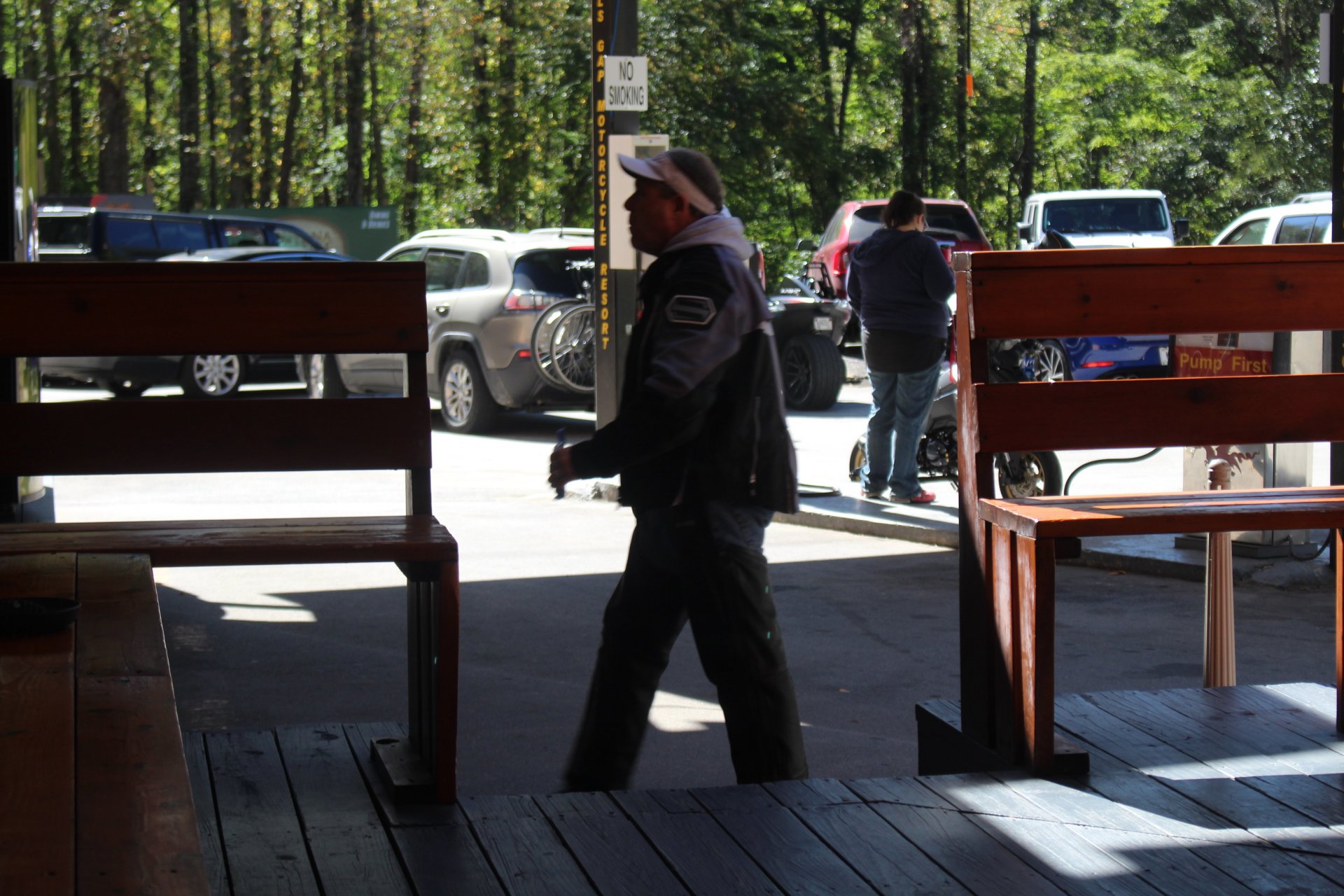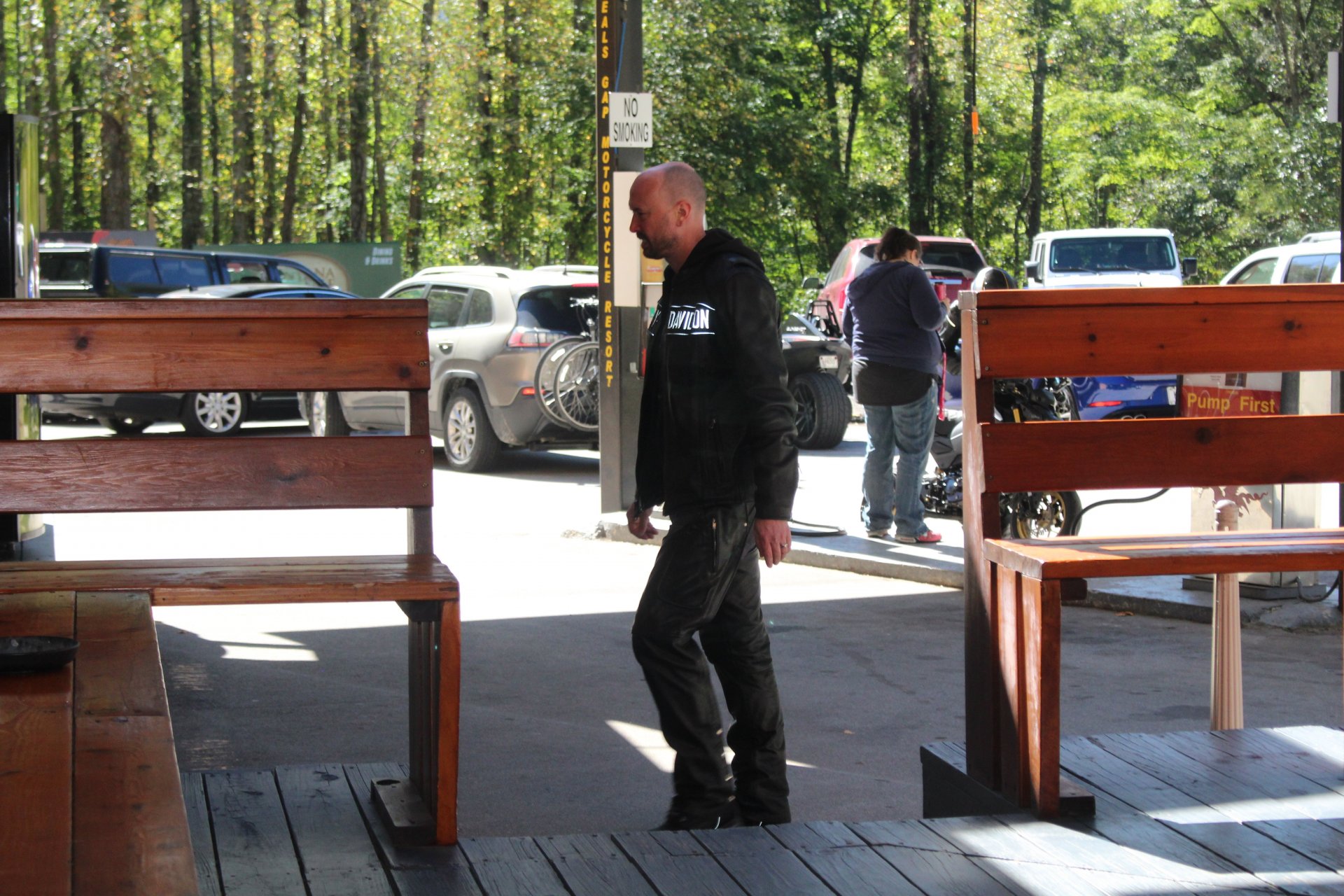 Stopped at the Deal's Gap Motorcycle Resort for a drink, to sit in the warm Sun and to watch the bikes come and go....