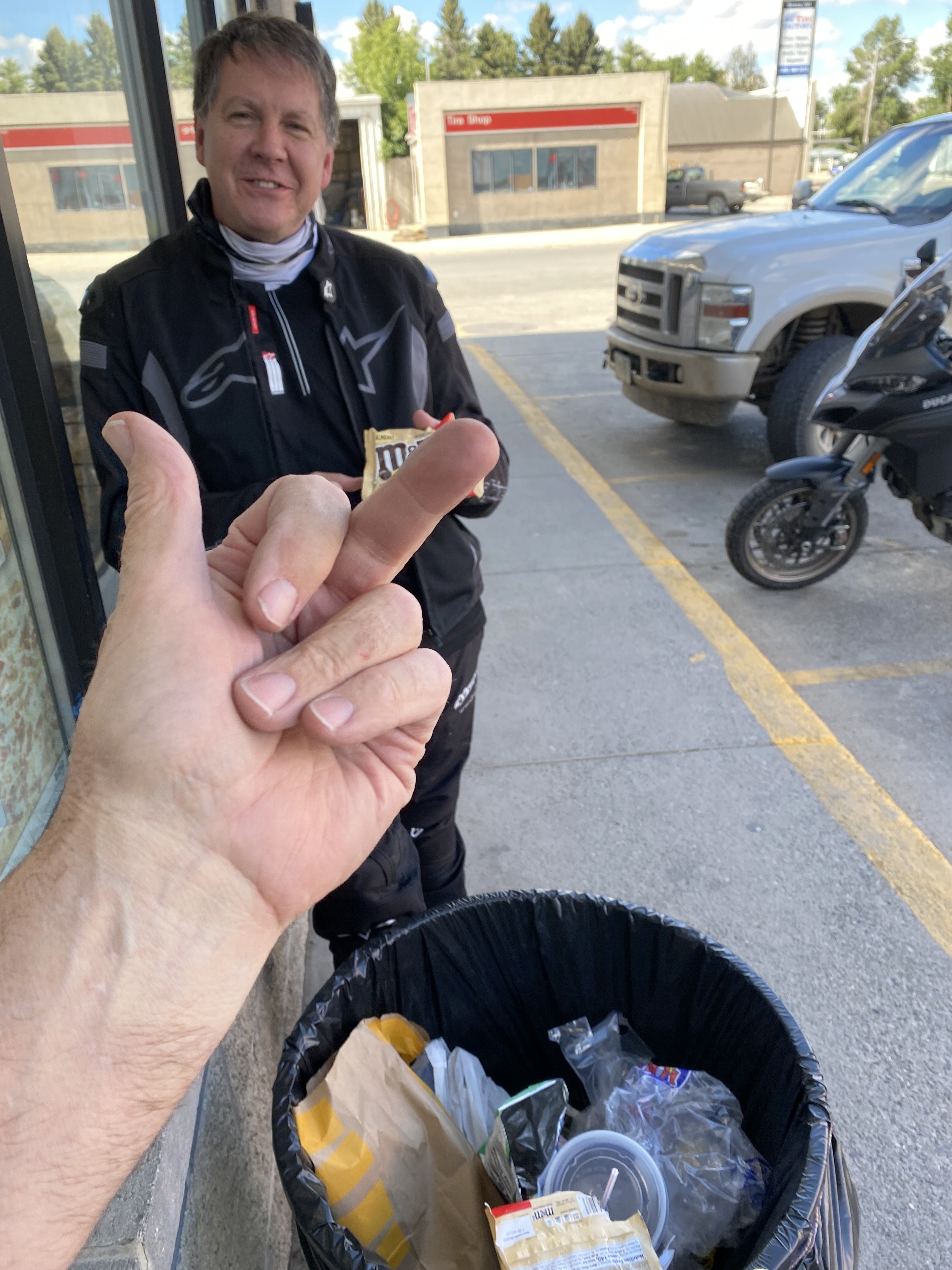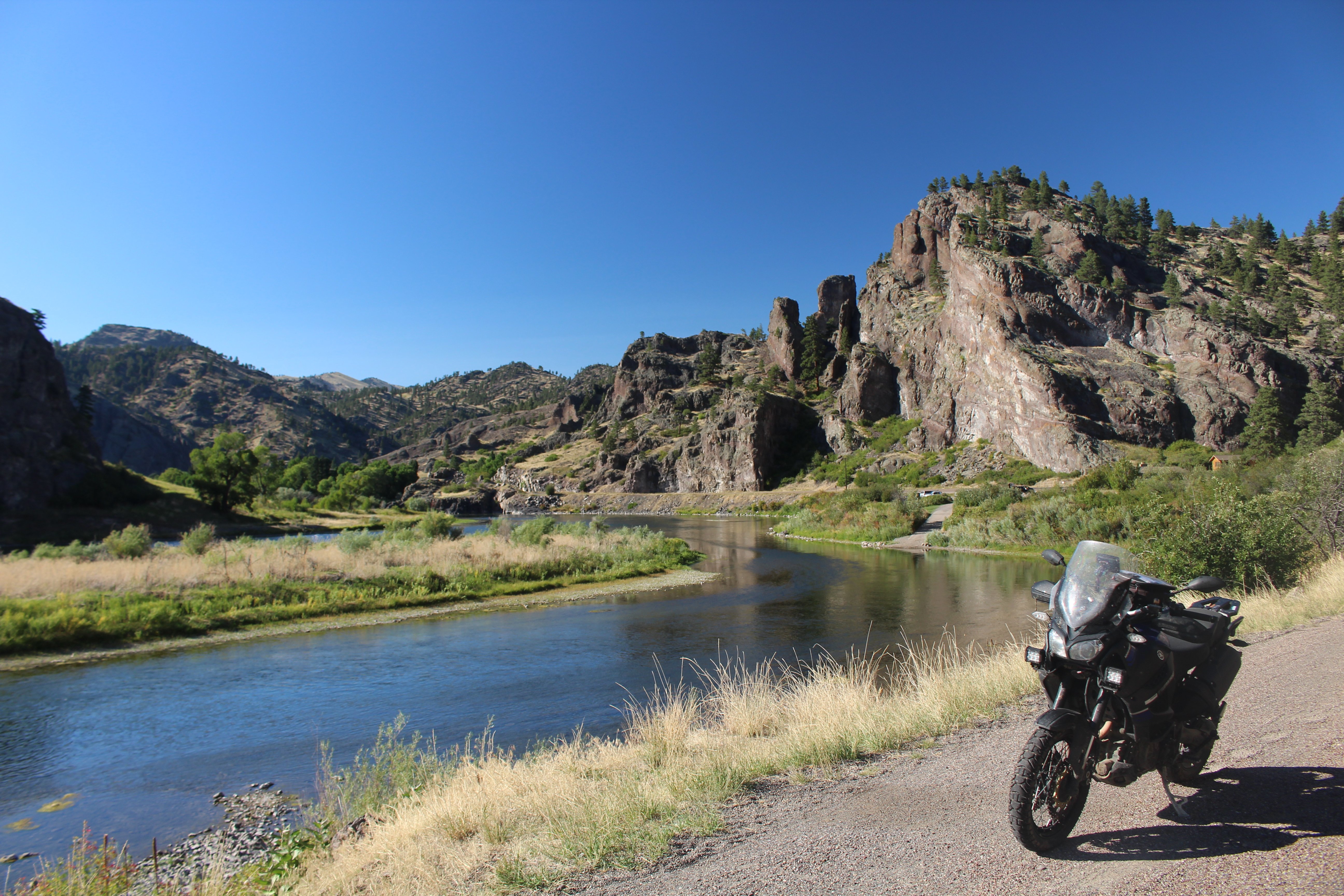 10. The good news is that the adventure isn't over. Due to the narrow trail, Desmo gets to back down the hill in reverse. Good times.