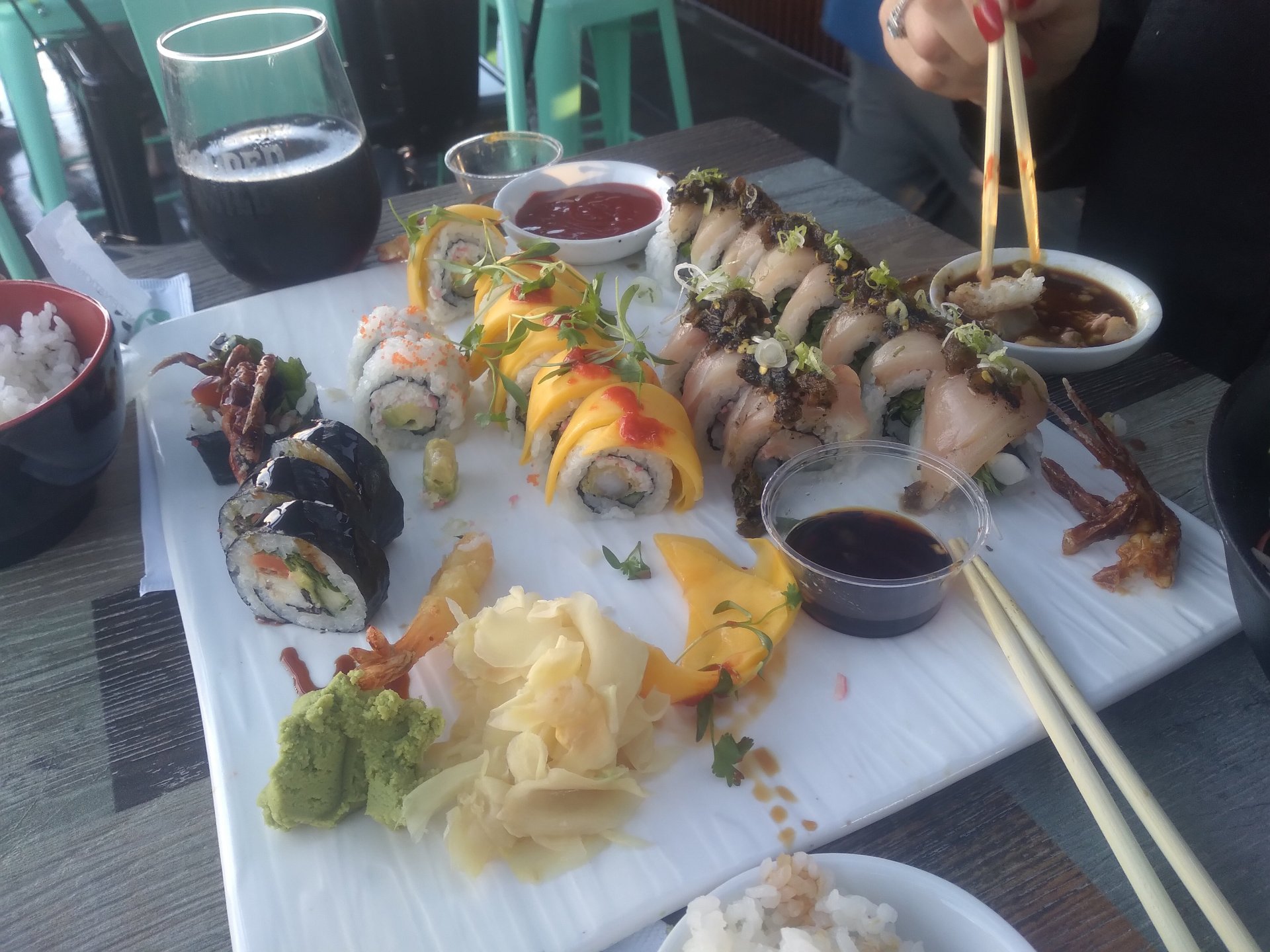 They several different types of food available at walk up windows. My wife was there so ended up getting a platter of sushi. Not a huge fan, but I'll eat it...