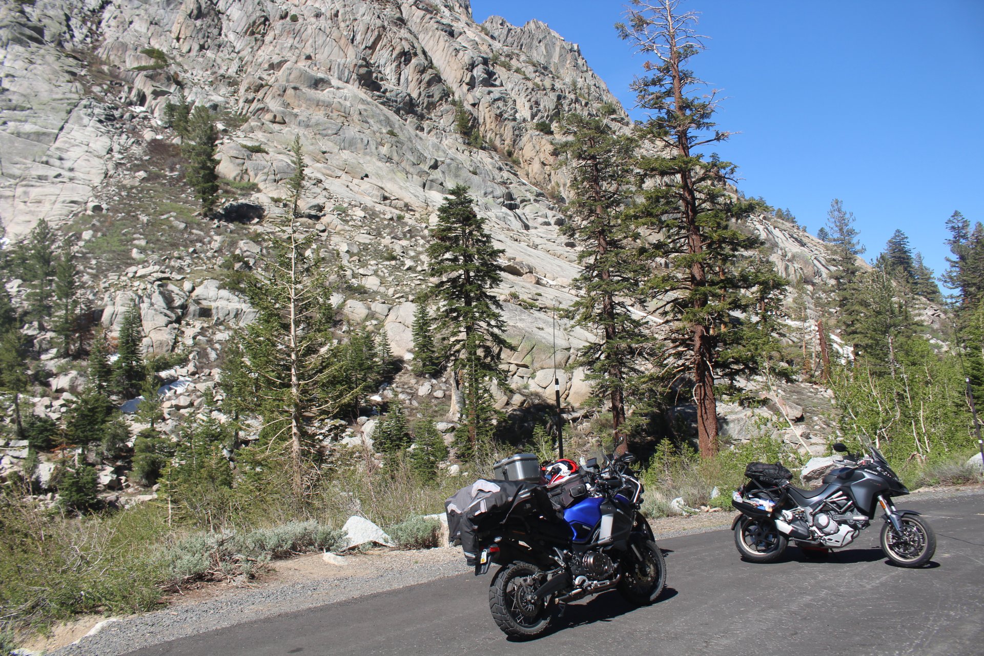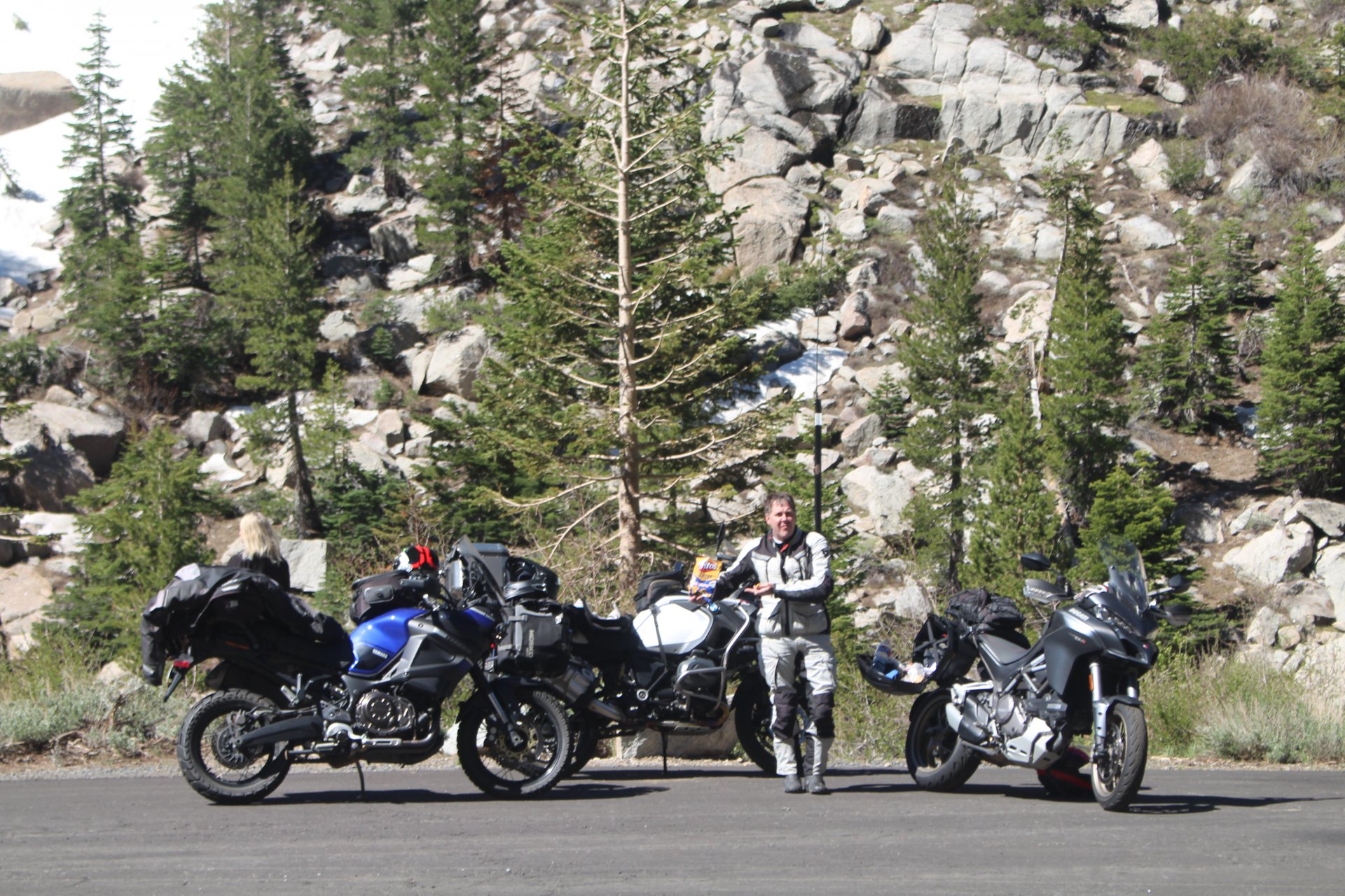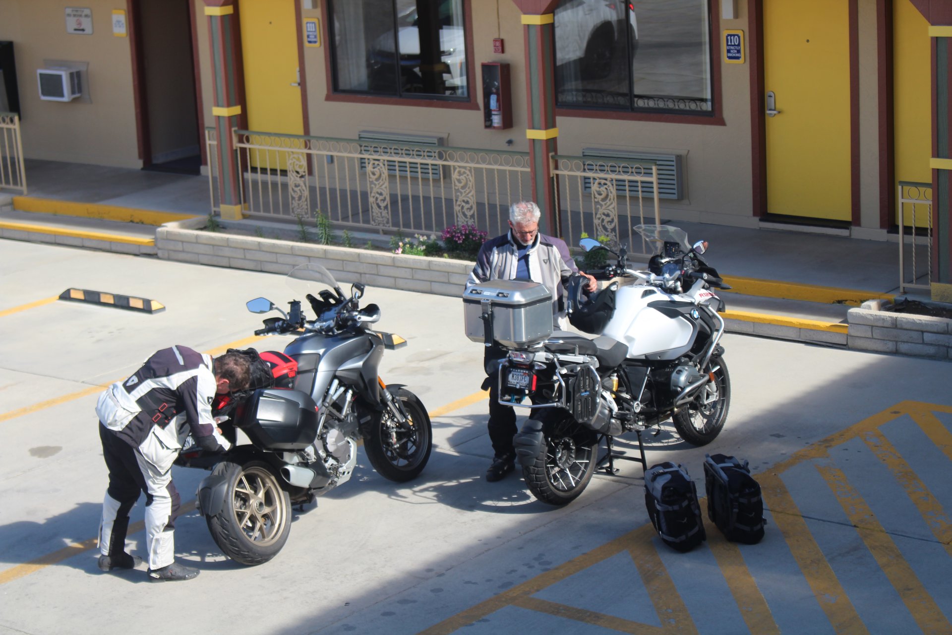 That's Dave's bike - have ridden with Dave for 35 years and have been many places with him. He's riding this trip with his wife Debbie as pillion. No issues with either bike other than Dave's is kinda lardy with panniers, top b ox and tons of shit on it. Hard to travel light when you have a passenger.