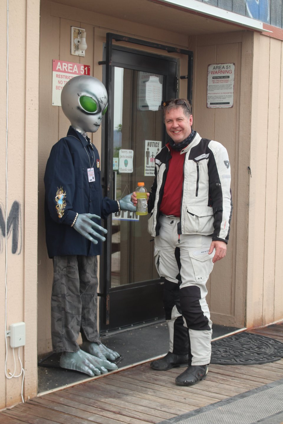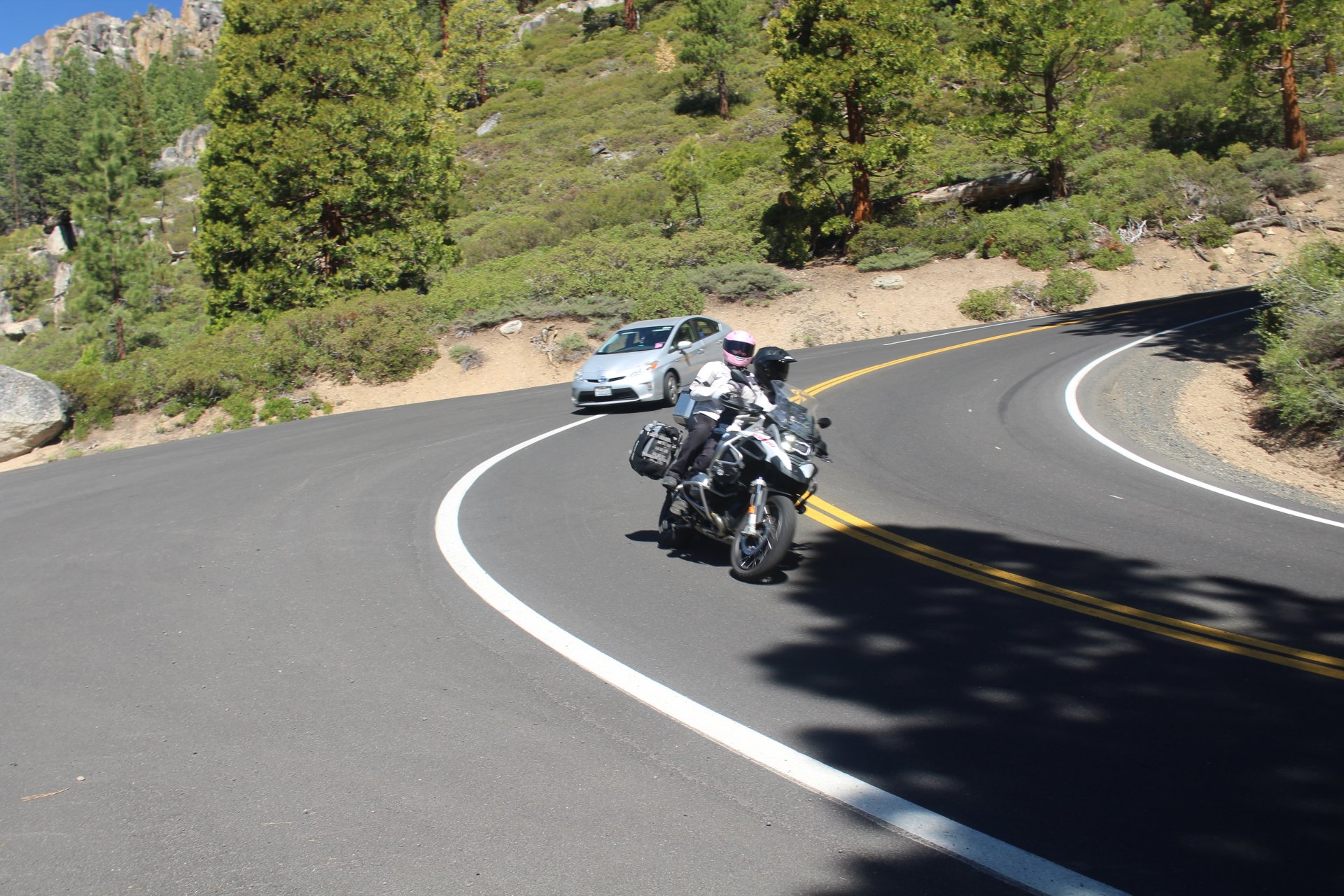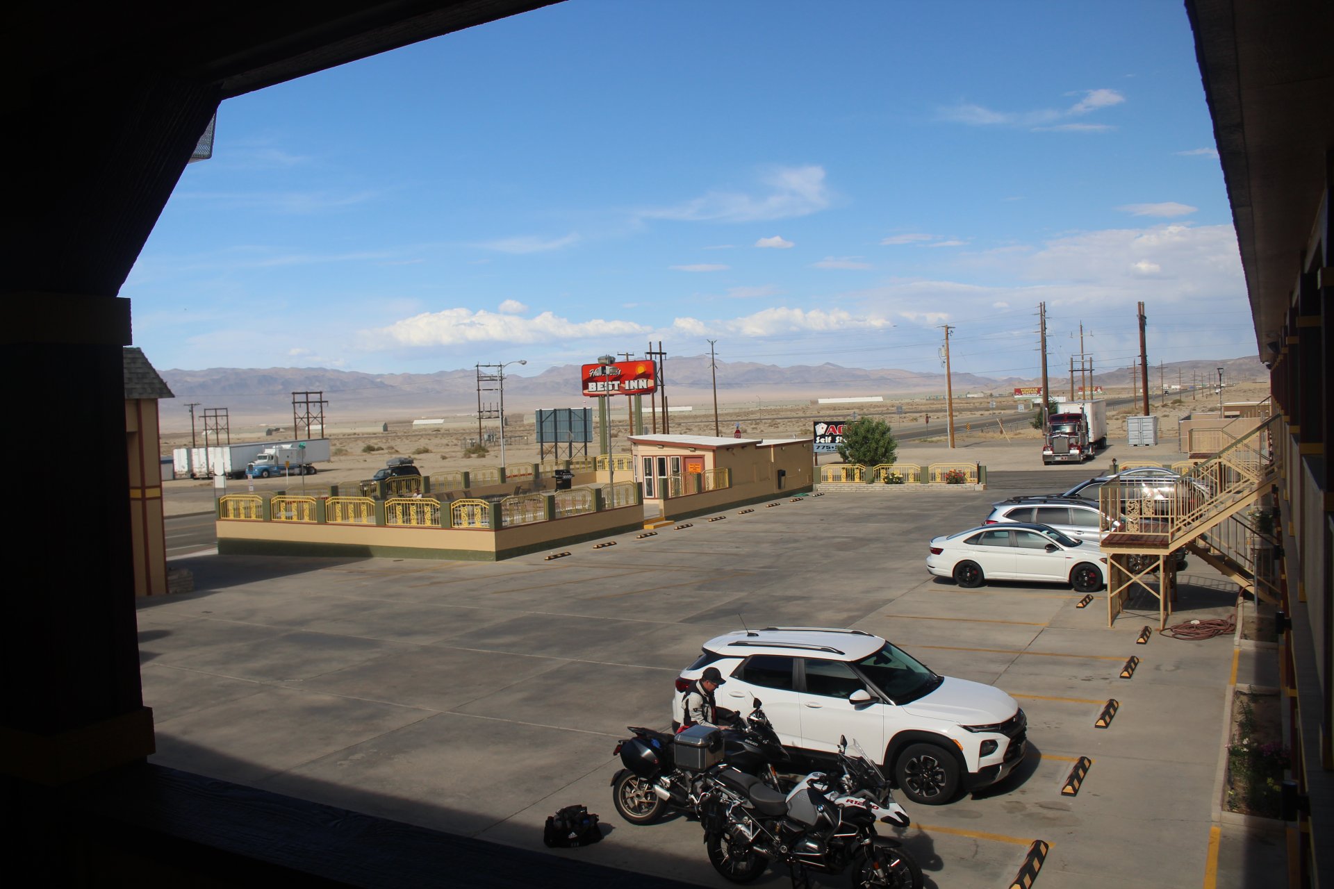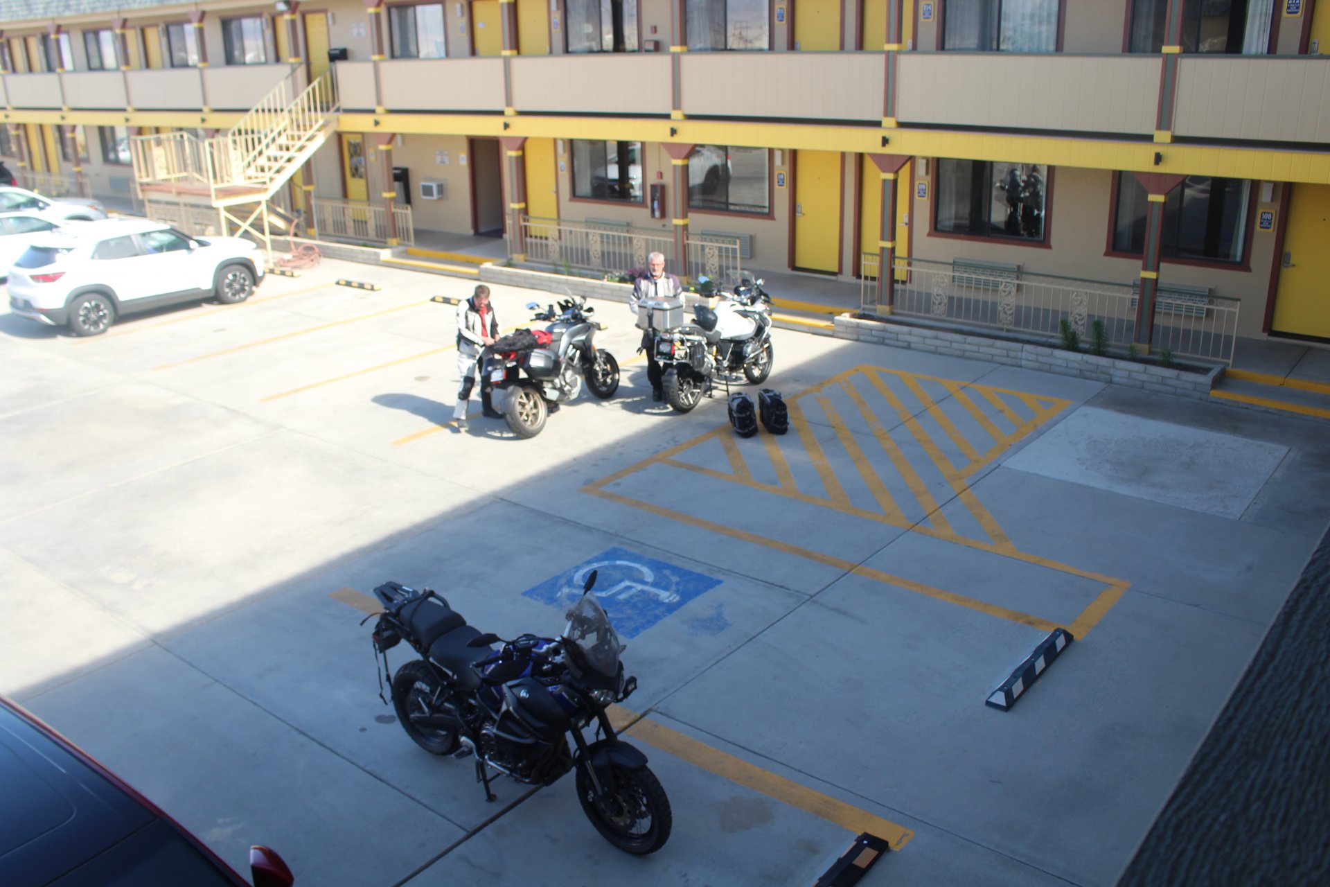 That's Dave's bike - have ridden with Dave for 35 years and have been many places with him. He's riding this trip with his wife Debbie as pillion. No issues with either bike other than Dave's is kinda lardy with panniers, top b ox and tons of shit on it. Hard to travel light when you have a passenger.