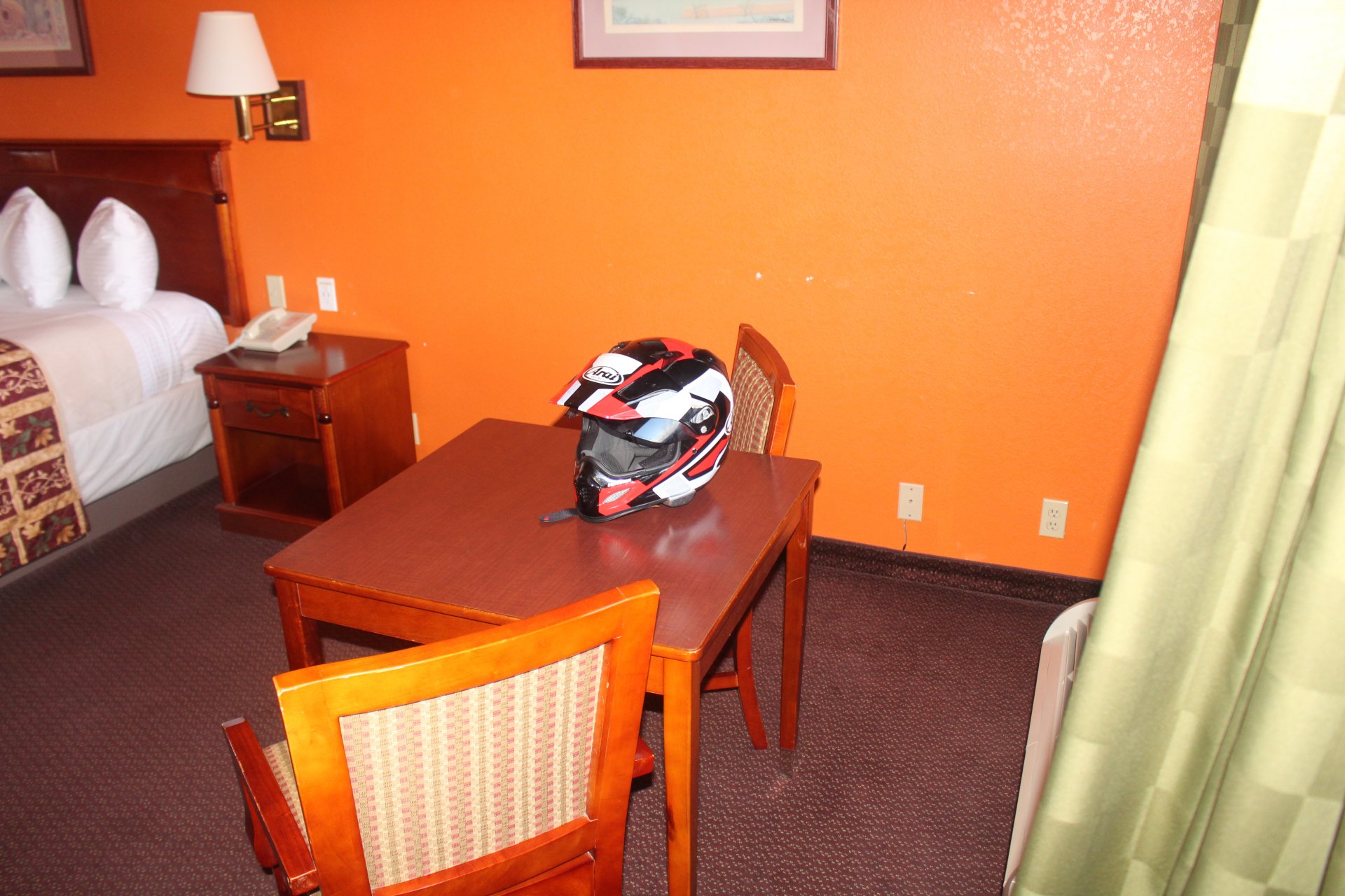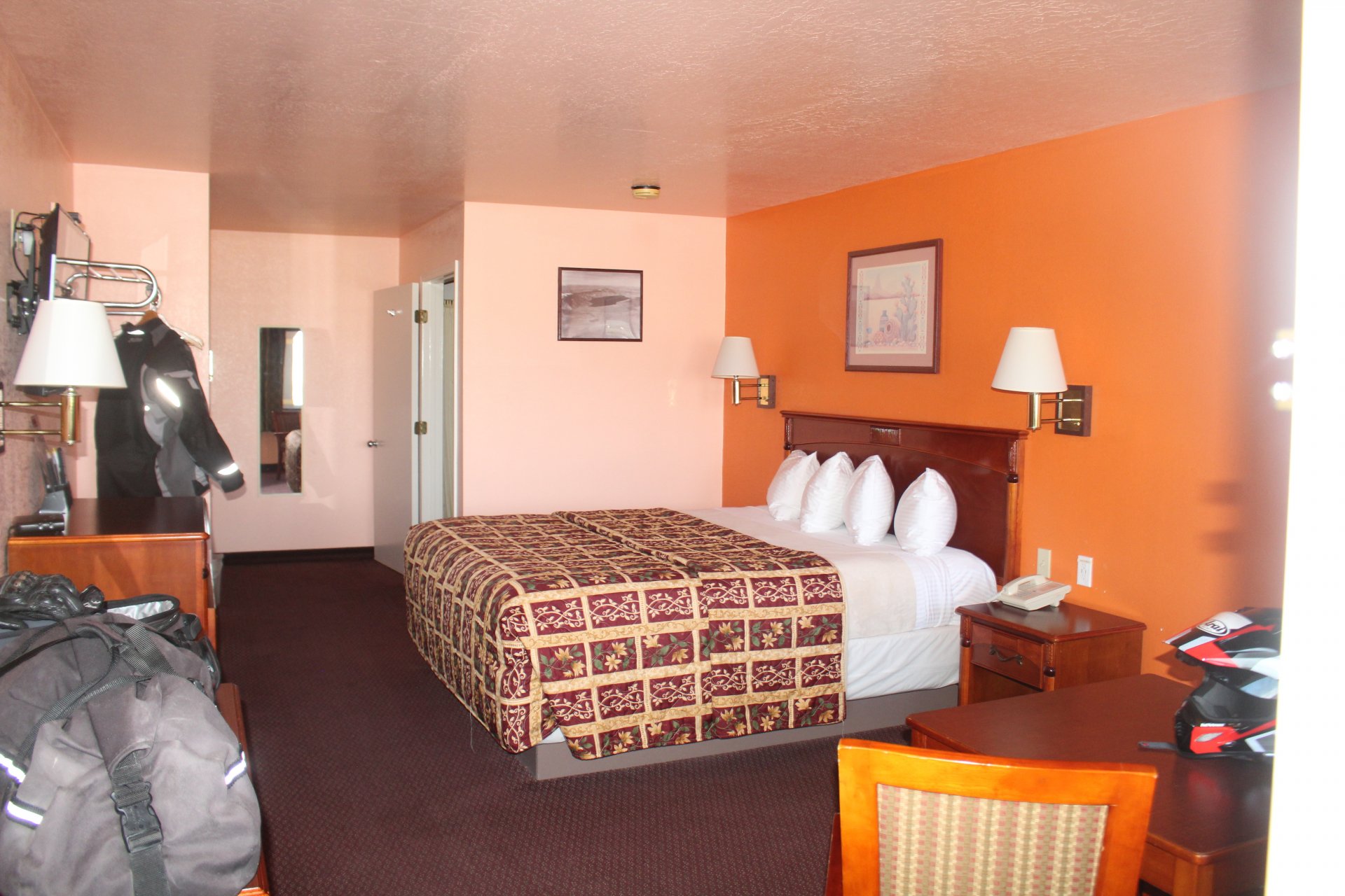 545 miles later and we're in the oh so swanky Hawthorne Inn. Looks like 1970 in here with the orange walls and old furniture, but we were lucky to get a room. Place is sold out as there's not a lot else within 100 miles....